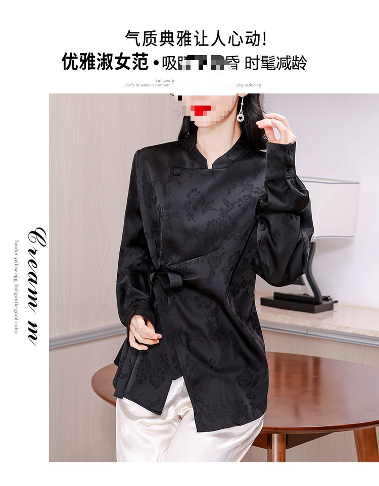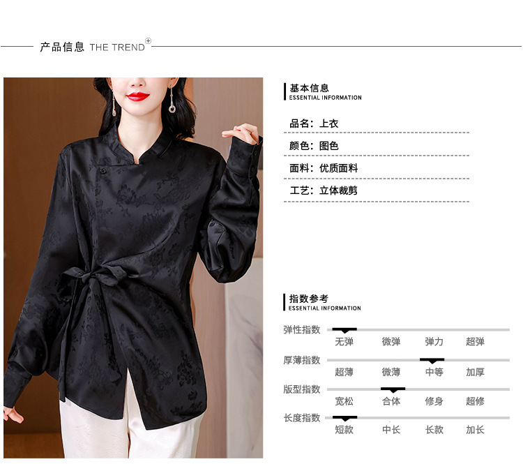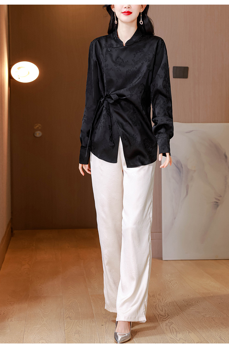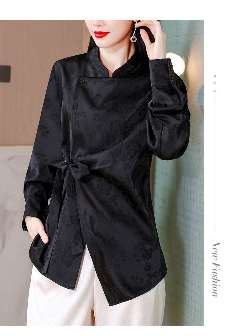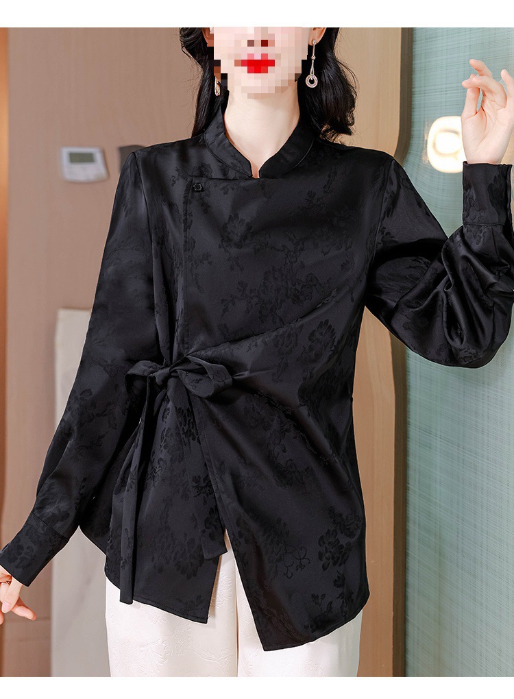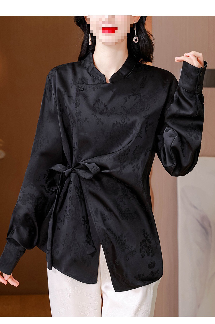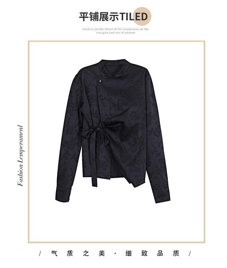 KQL A83N3301新中式立领提花衬衫别致气质衬衣系带收腰上衣