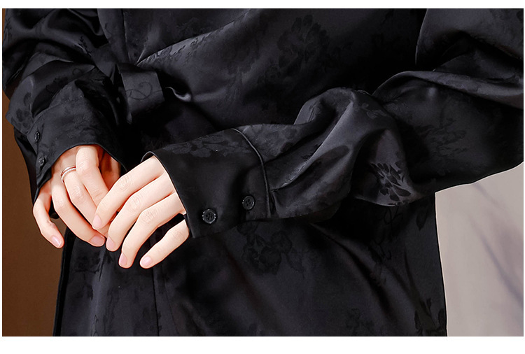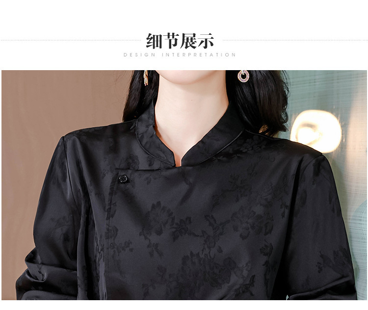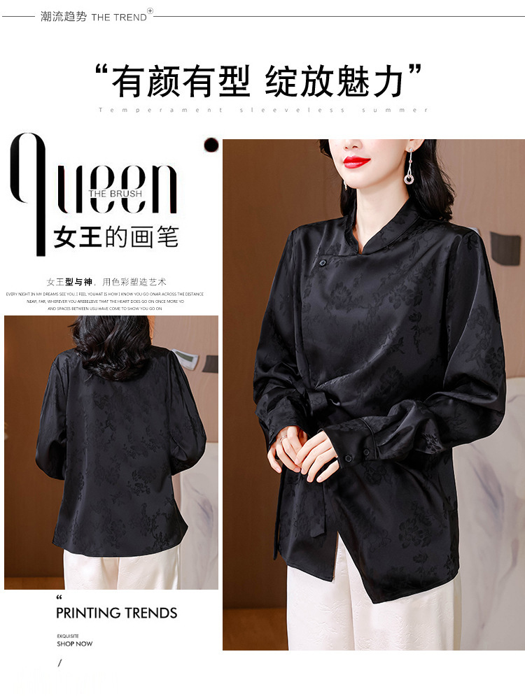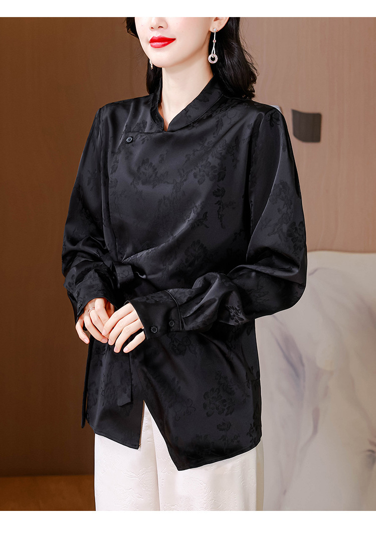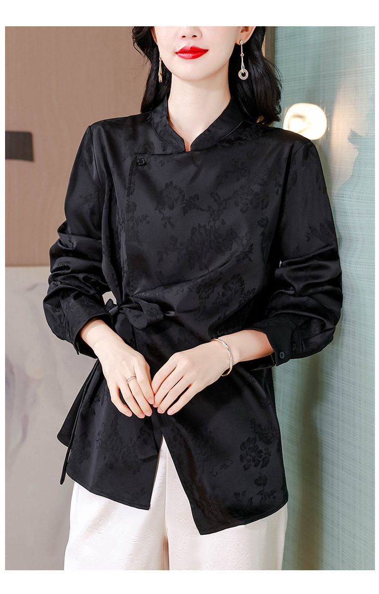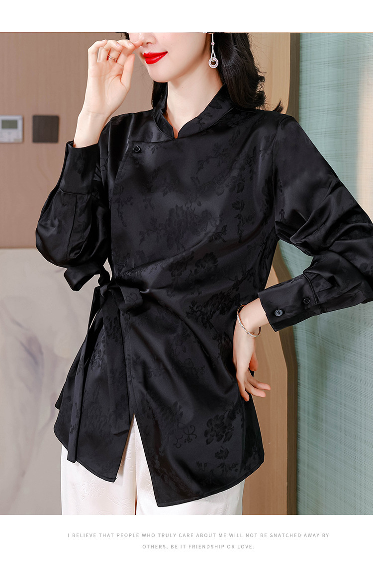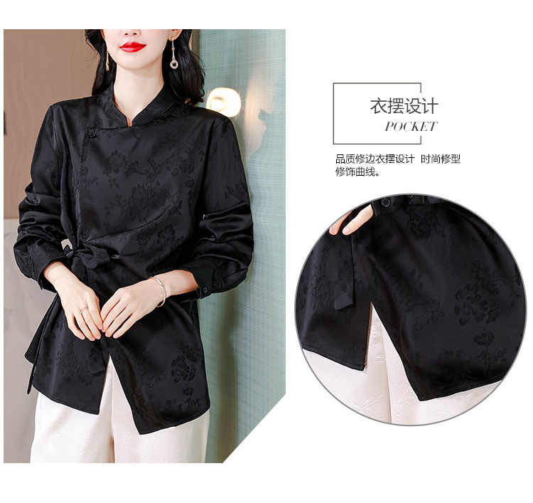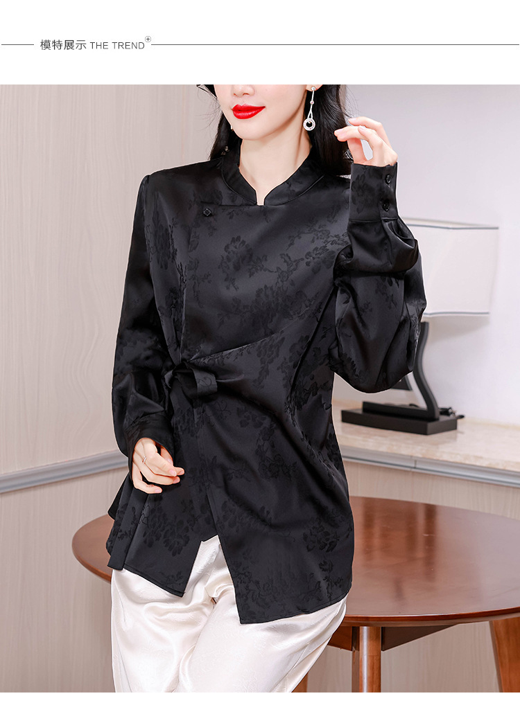 KQL A83N3301新中式立领提花衬衫别致气质衬衣系带收腰上衣