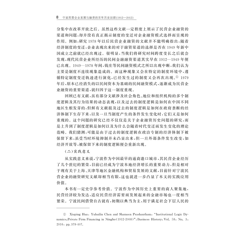 本书从制度的视角揭示宁波民营企业融资渠道的发展和演变,探索民营企业的融资渠道是如何演变的以及它们呈现怎样的制度逻辑,尤其是那些过去存在过的制度逻辑在经历了30年的镇压后是如何复活的。同时探讨制度逻辑及制度演变是如何影响民营企业的融资模式选择。