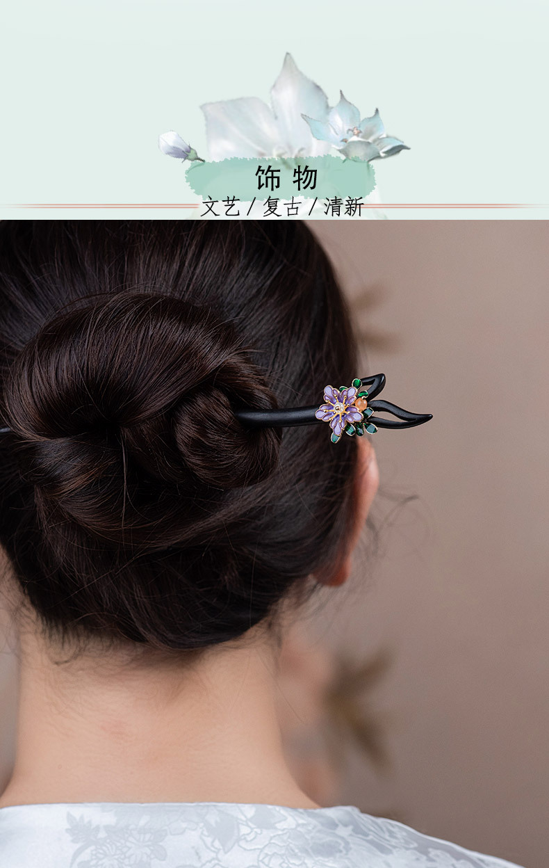 JGL真檀木发簪子紫色花朵挽发配饰发钗简约日常盘发头饰手工发簪