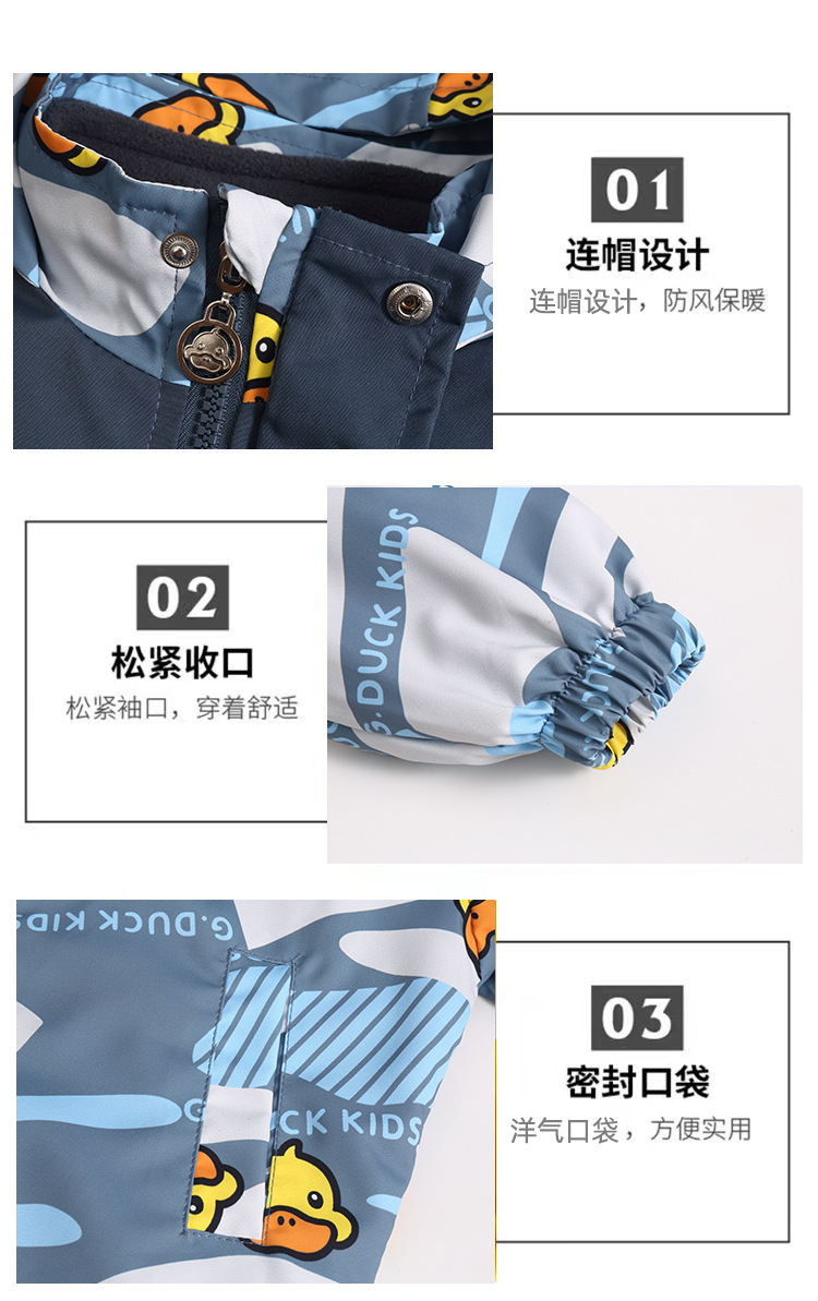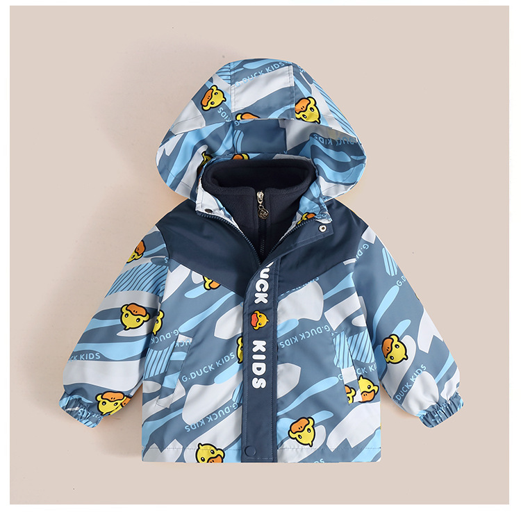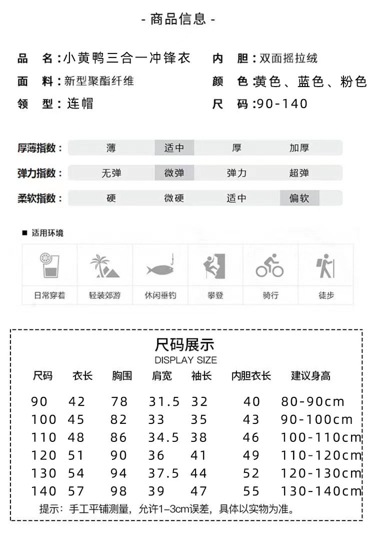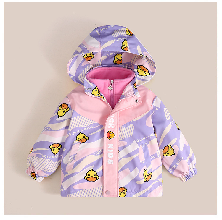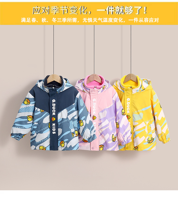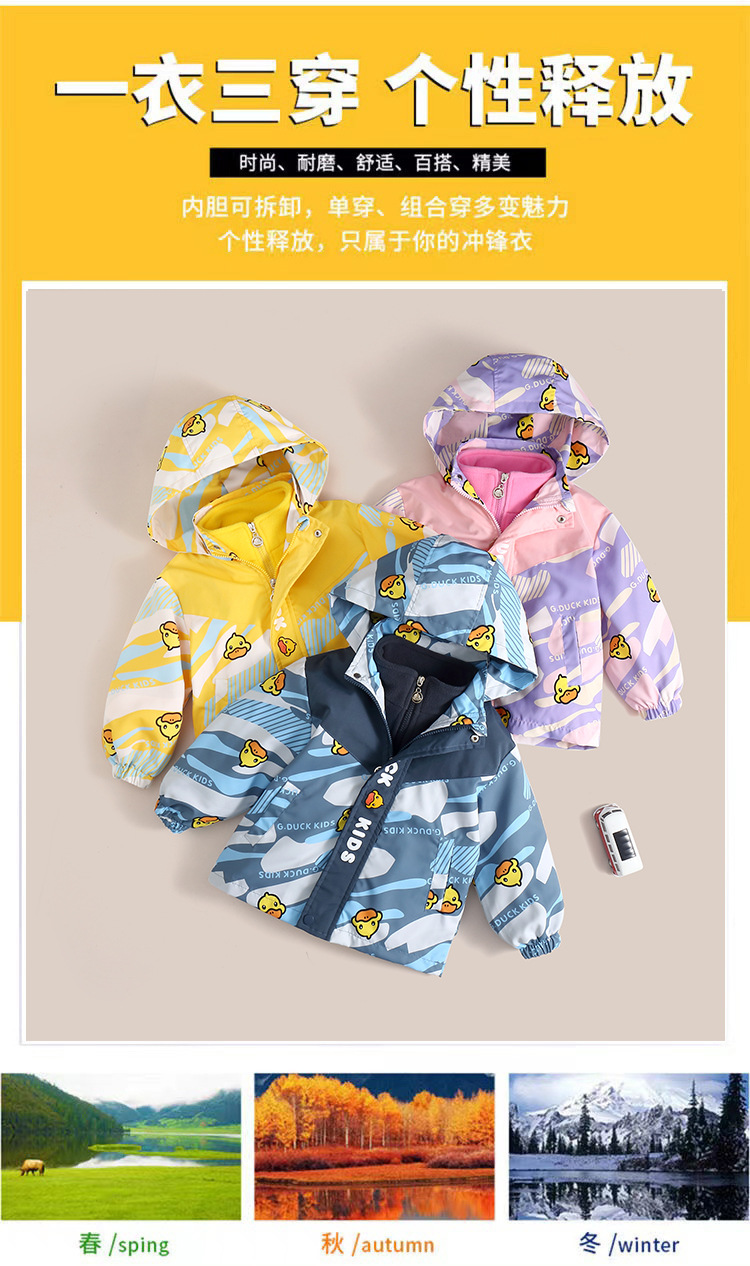 【秋冬加绒必备!小黄鸭儿童外套】三合一冲锋衣,摇粒绒内胆,保暖舒适。男女童均适用,中小童新款,时尚百搭-QQ