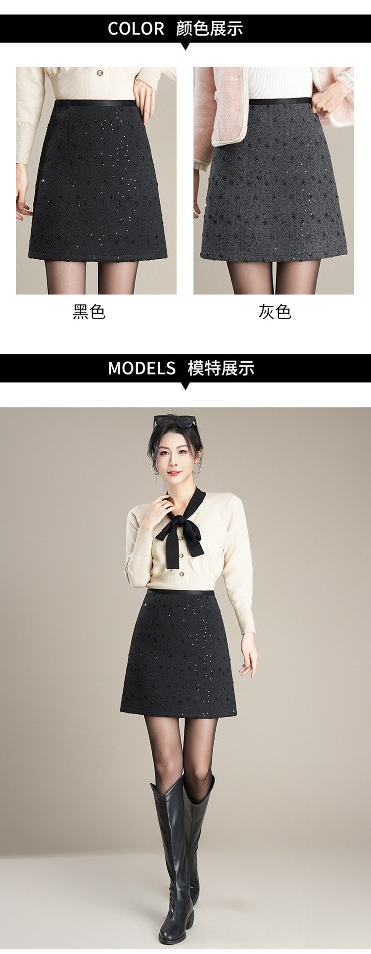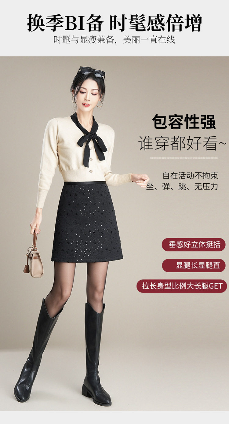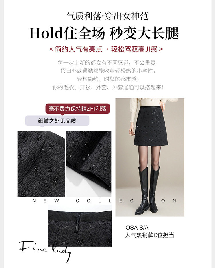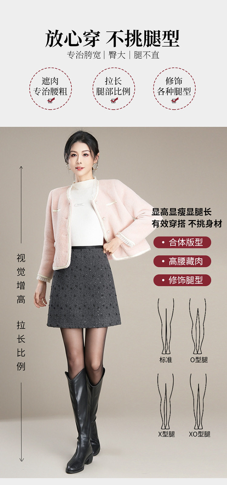 「自」全新升级【铂金会员146/天猫189/差价43】(13351)洛诗琳重工小香风半身裙2025秋冬新款气质亮片包臀裙A字裙