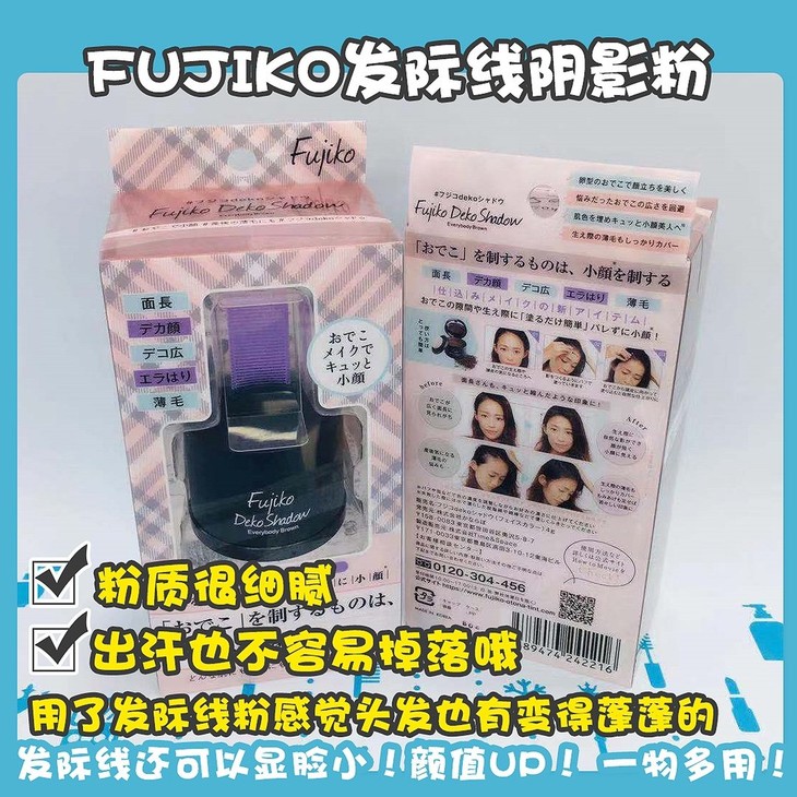 fujiko发际线阴影粉👍Fujiko家的发际线阴影粉,也很奶思啦〰而且用了发际线粉感觉头发也有变得蓬蓬的🗯~ 粉质很细腻👅,因为是干粉可以固定在皮肤上,所以出汗也不容易掉落哦😎。 使用方法也很简单: Step1️⃣:确认想补的位置,发际线或头皮! Step2️⃣:用粉扑打出阴影,可以少量多次!不要一下子打好多哦~ Step3️⃣:将阴影慢慢晕染开~ 完成啦❣妈妈再也不用担心头秃啦,发际线还可以显脸小😘!颜值UP! 一物多用!