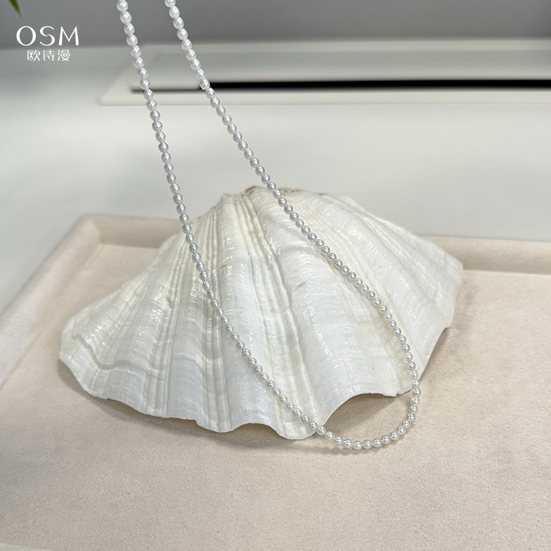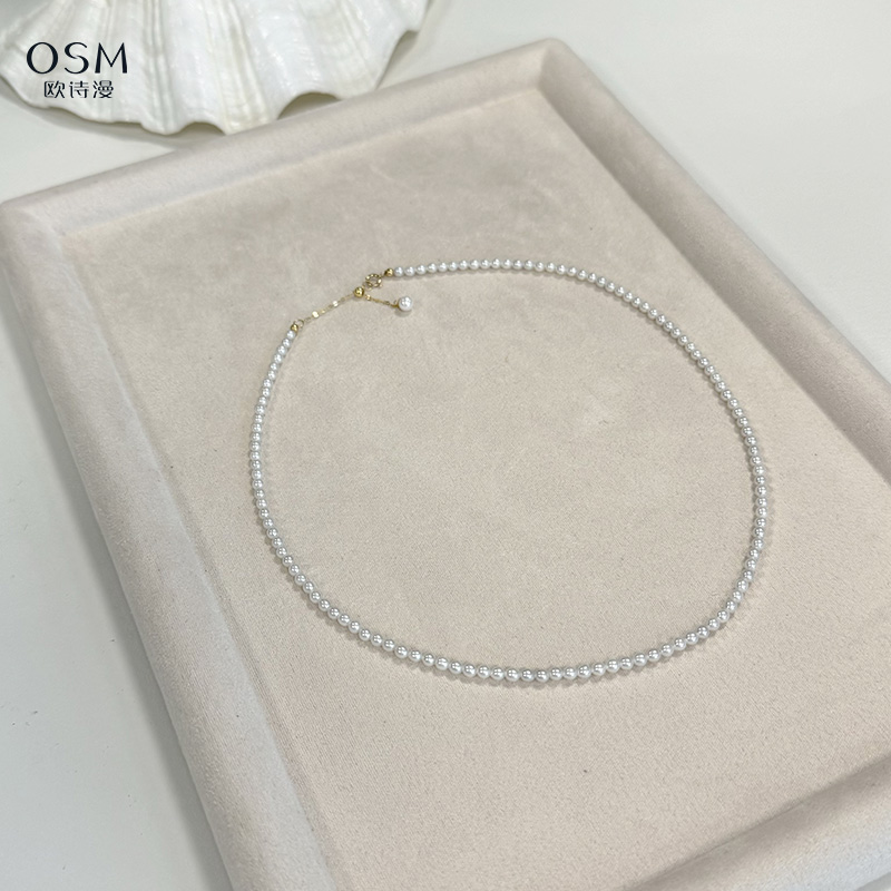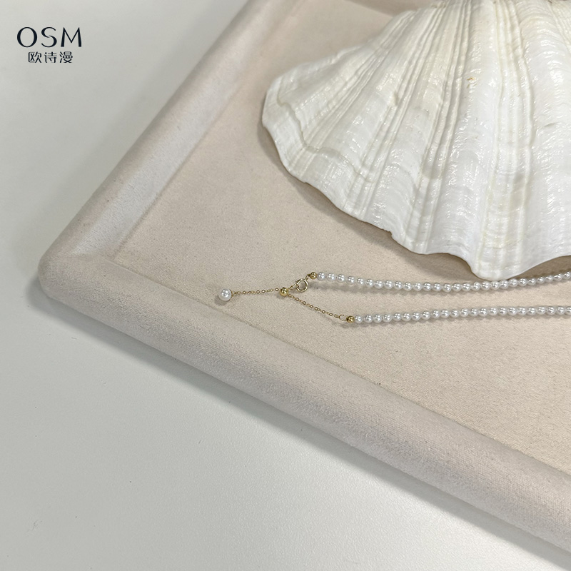 欧诗漫baby链 小米珠3-3.5mm 近正圆微微瑕 18K金尾链