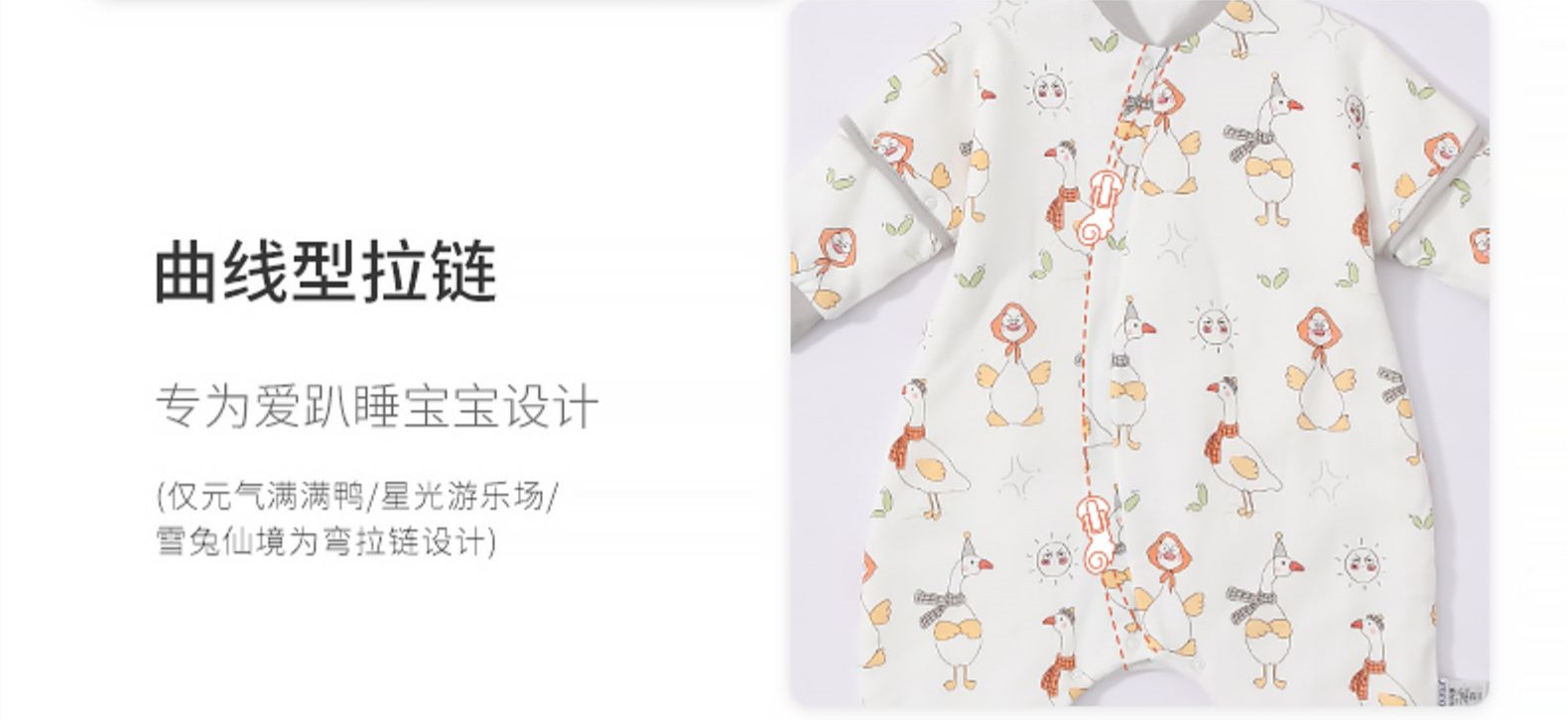 曲型拉链,顺滑不卡顿。(仅满满鸭、游乐场、雪兔三款是曲型拉链)