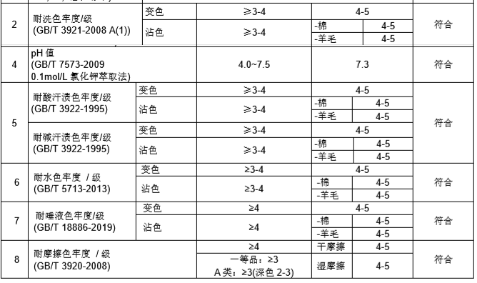 检测结果显示,符合《GB 31701-2015 婴幼儿及儿童纺织产品安全技术规范》的A类标准。