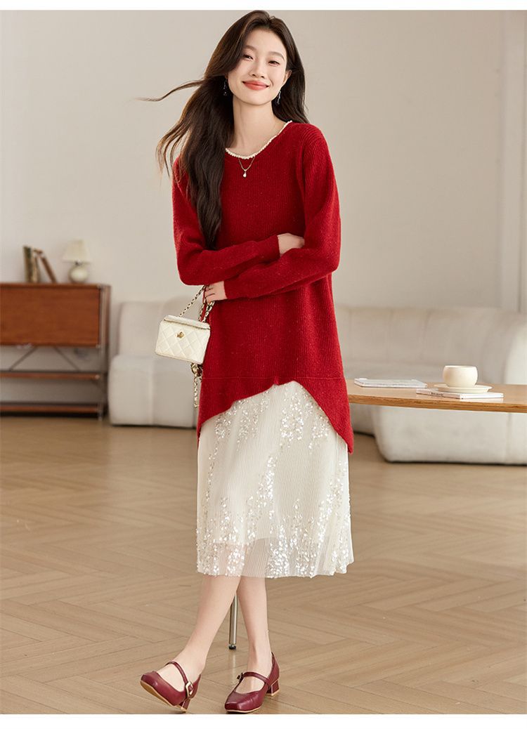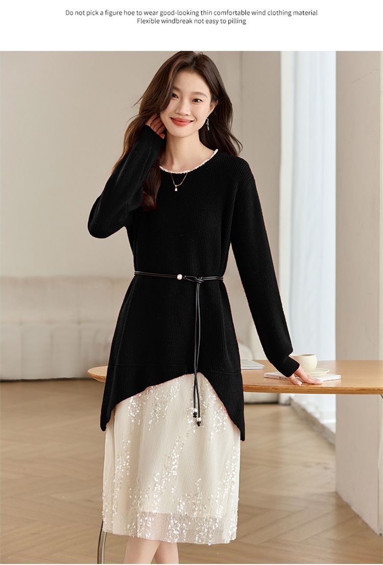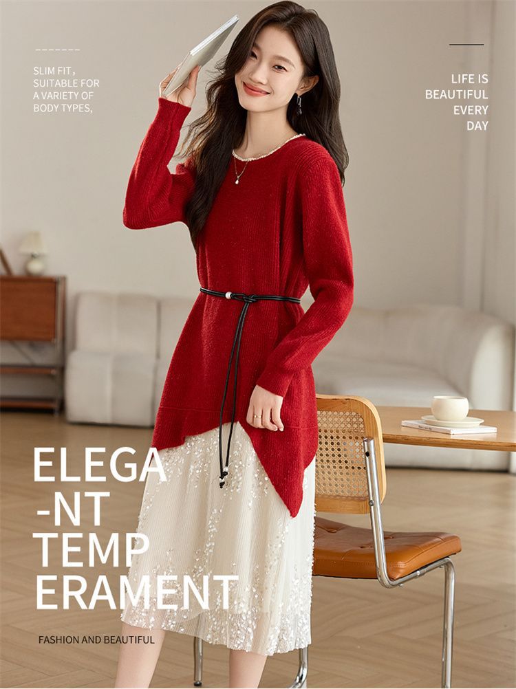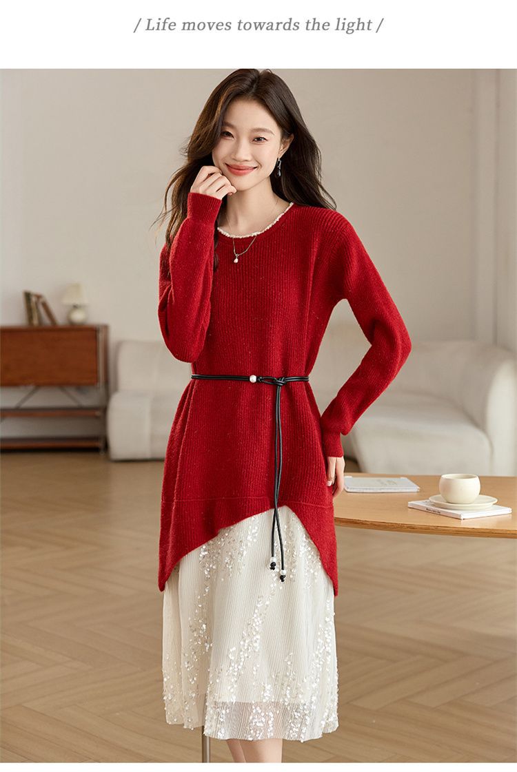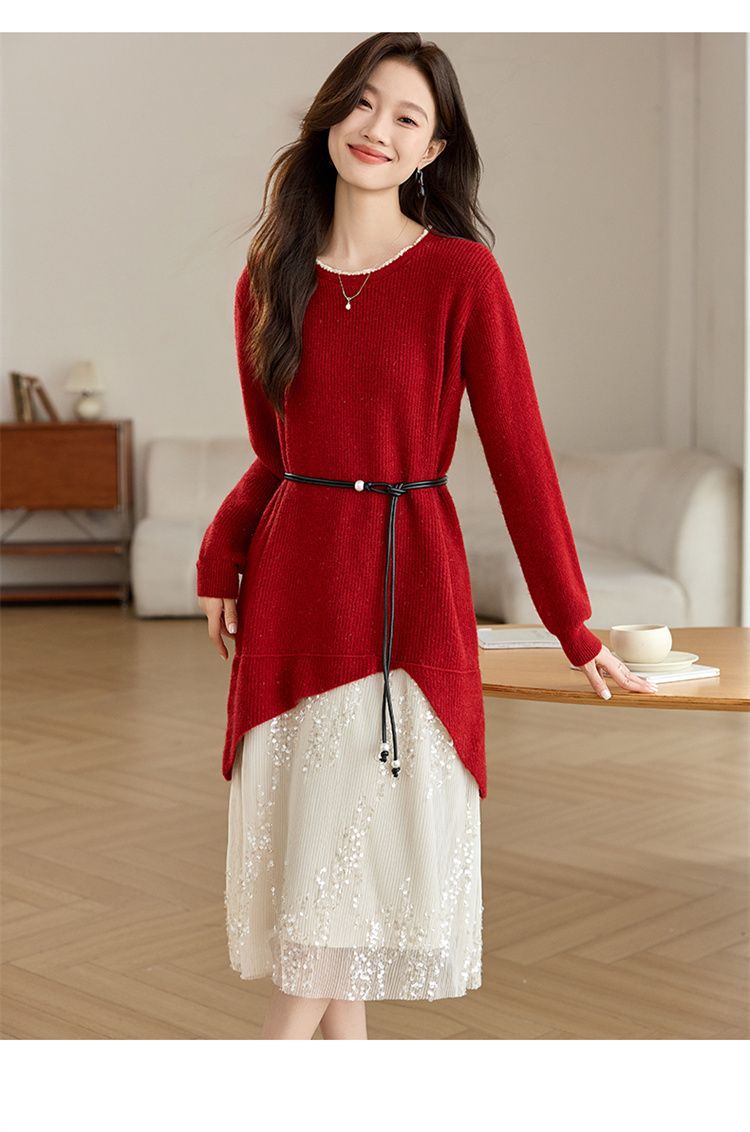 收腰系带针织连衣裙,时尚洋气别致好看毛衣裙子xfy16-2295