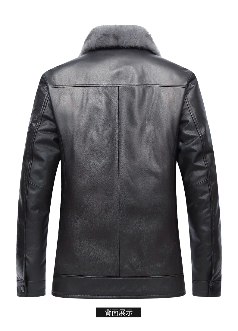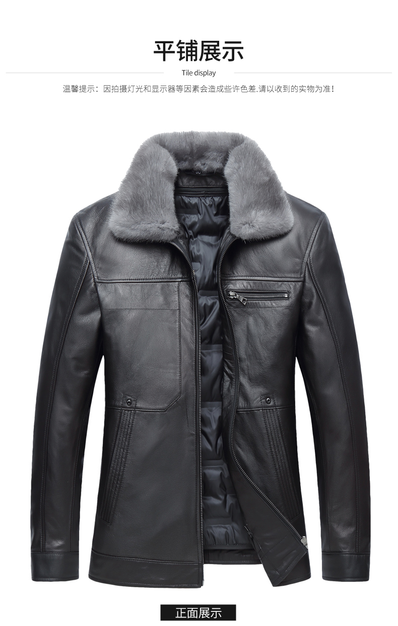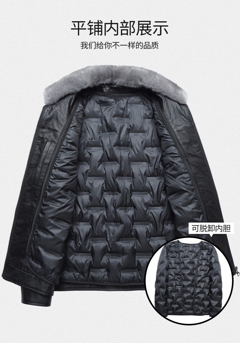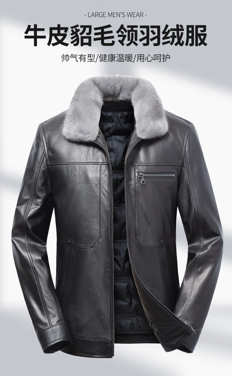 【真皮】大依优型大码牛皮貂毛领羽绒服内胆可拆卸夹克外套休闲简约大号皮夹克真皮皮草加肥加大