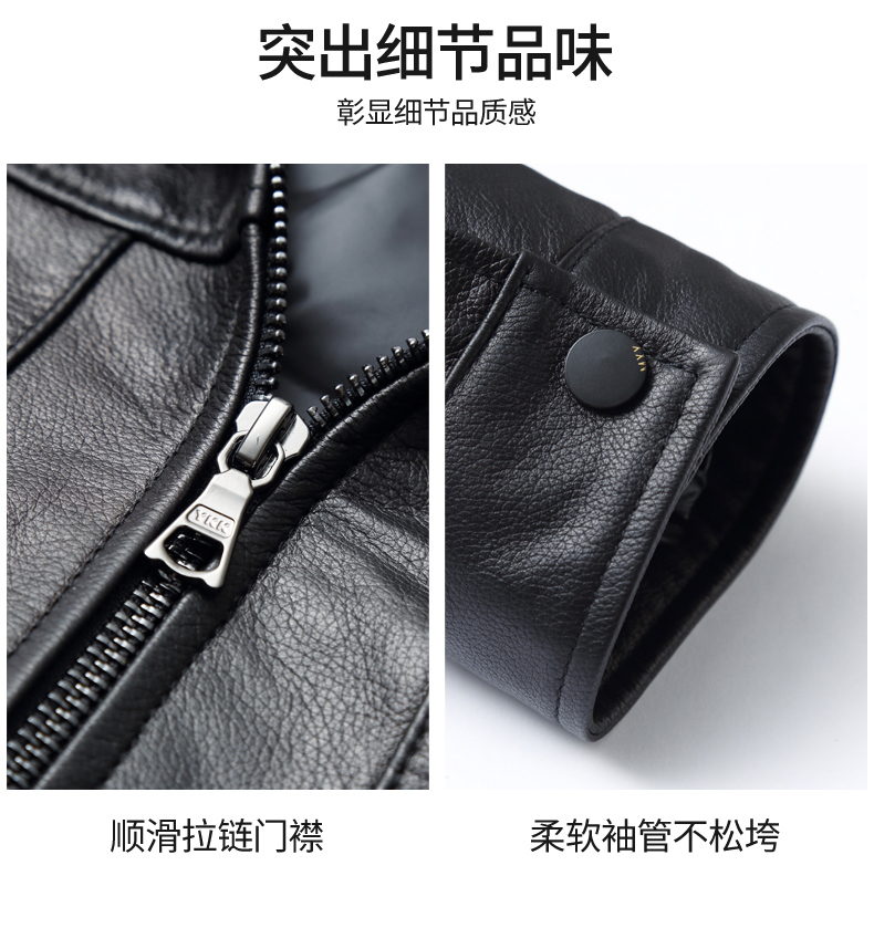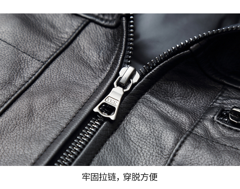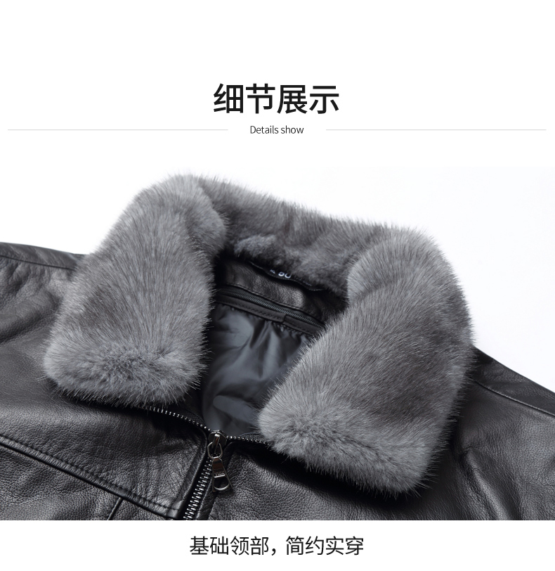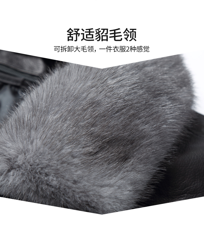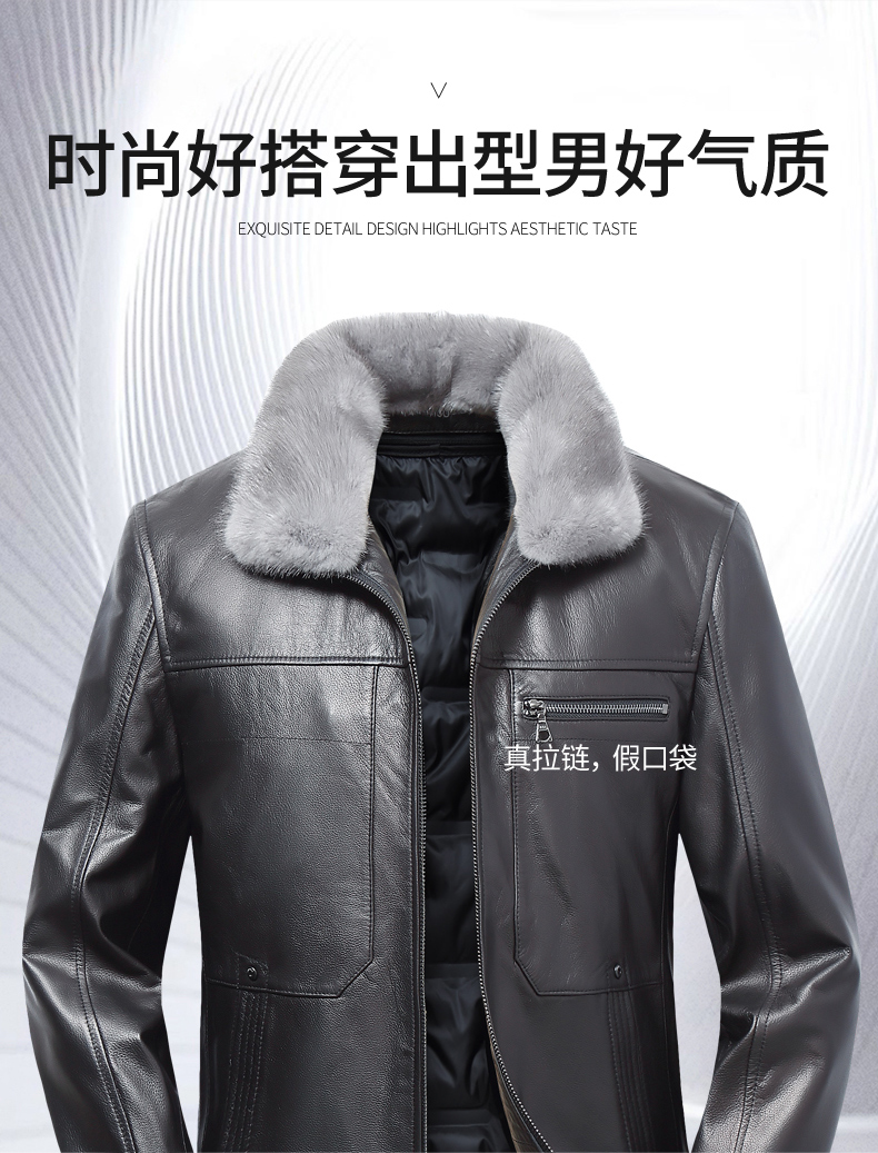 【真皮】大依优型大码牛皮貂毛领羽绒服内胆可拆卸夹克外套休闲简约大号皮夹克真皮皮草加肥加大