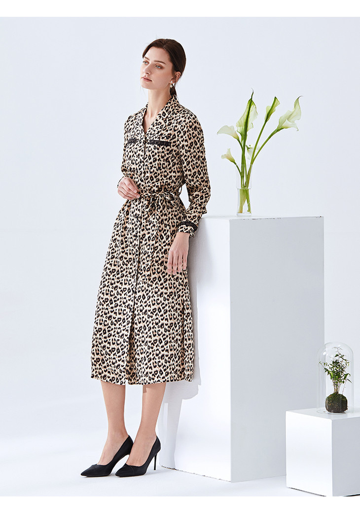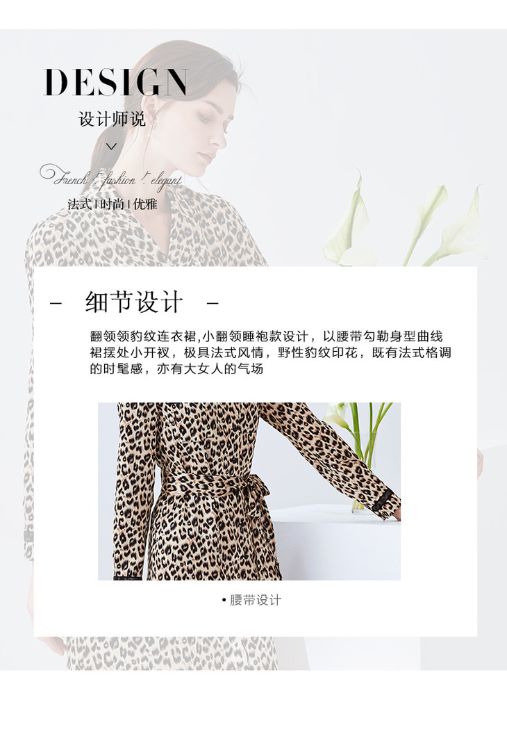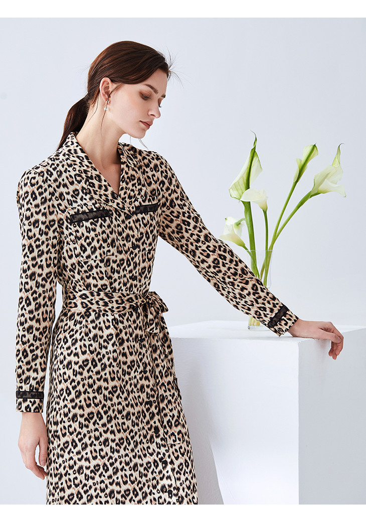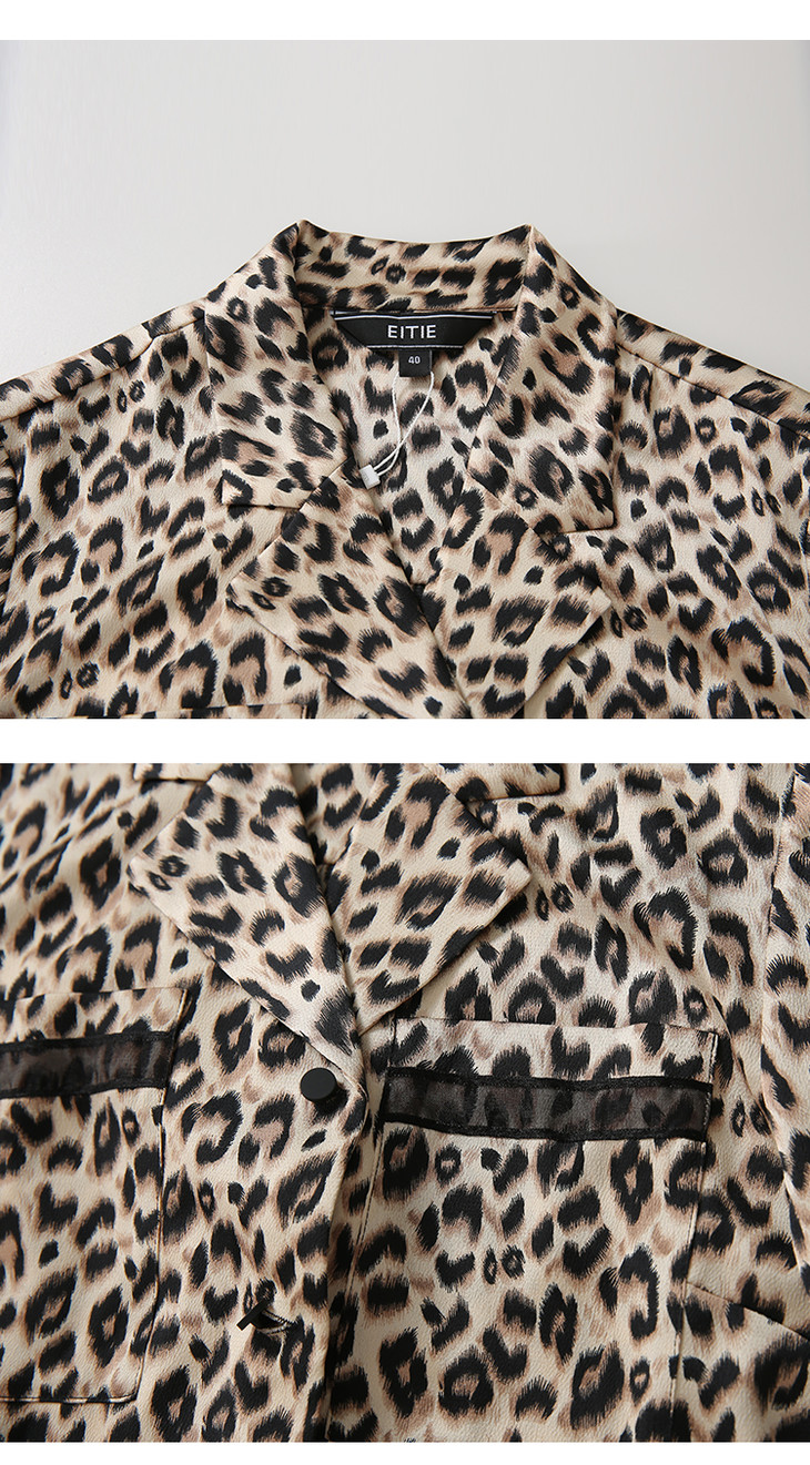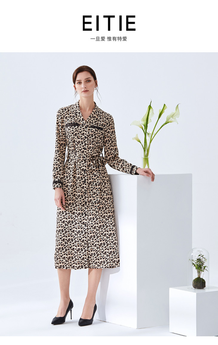 EITIE爱特爱女装秋款时尚复古洋气豹纹印花收腰衬衫连衣裙女显瘦6107819