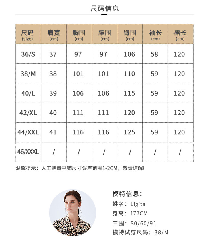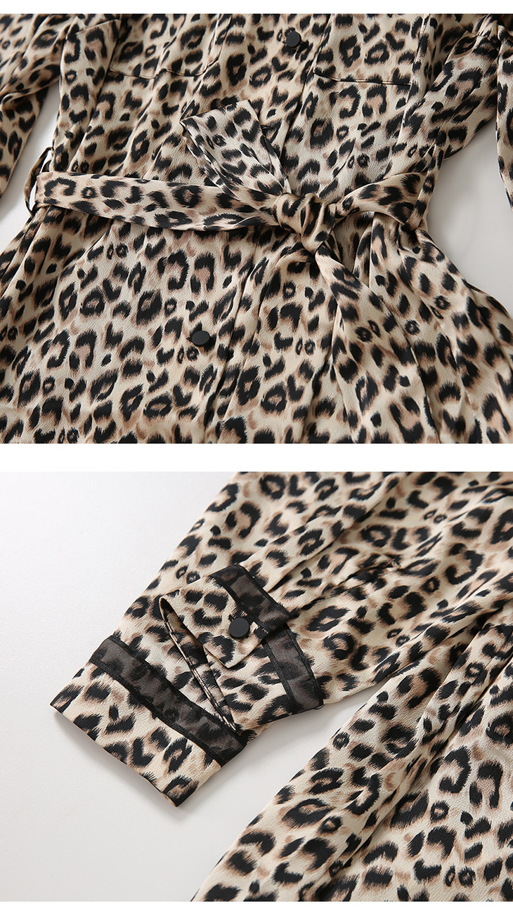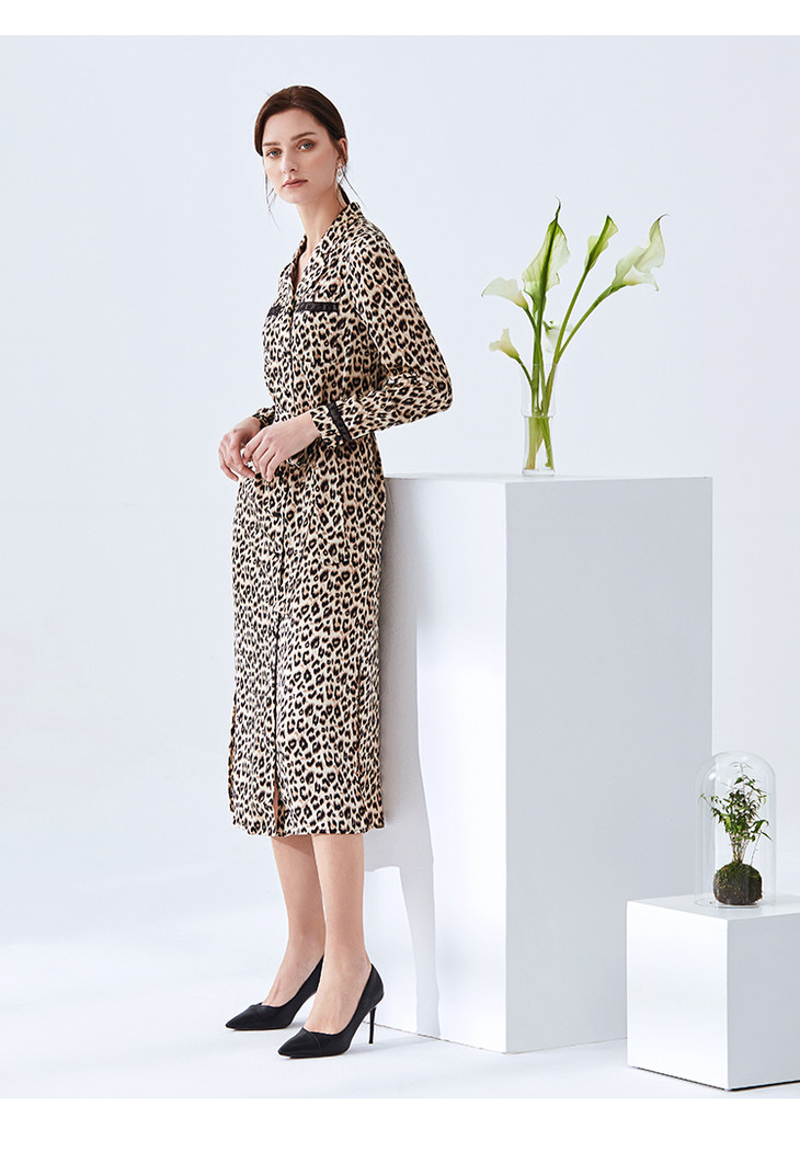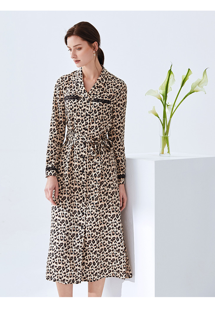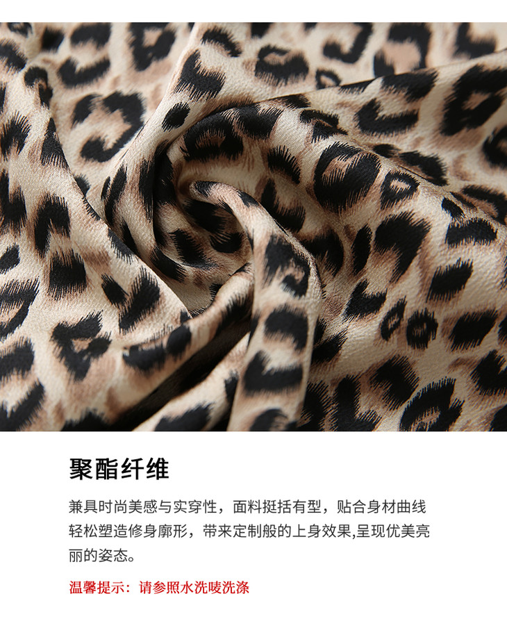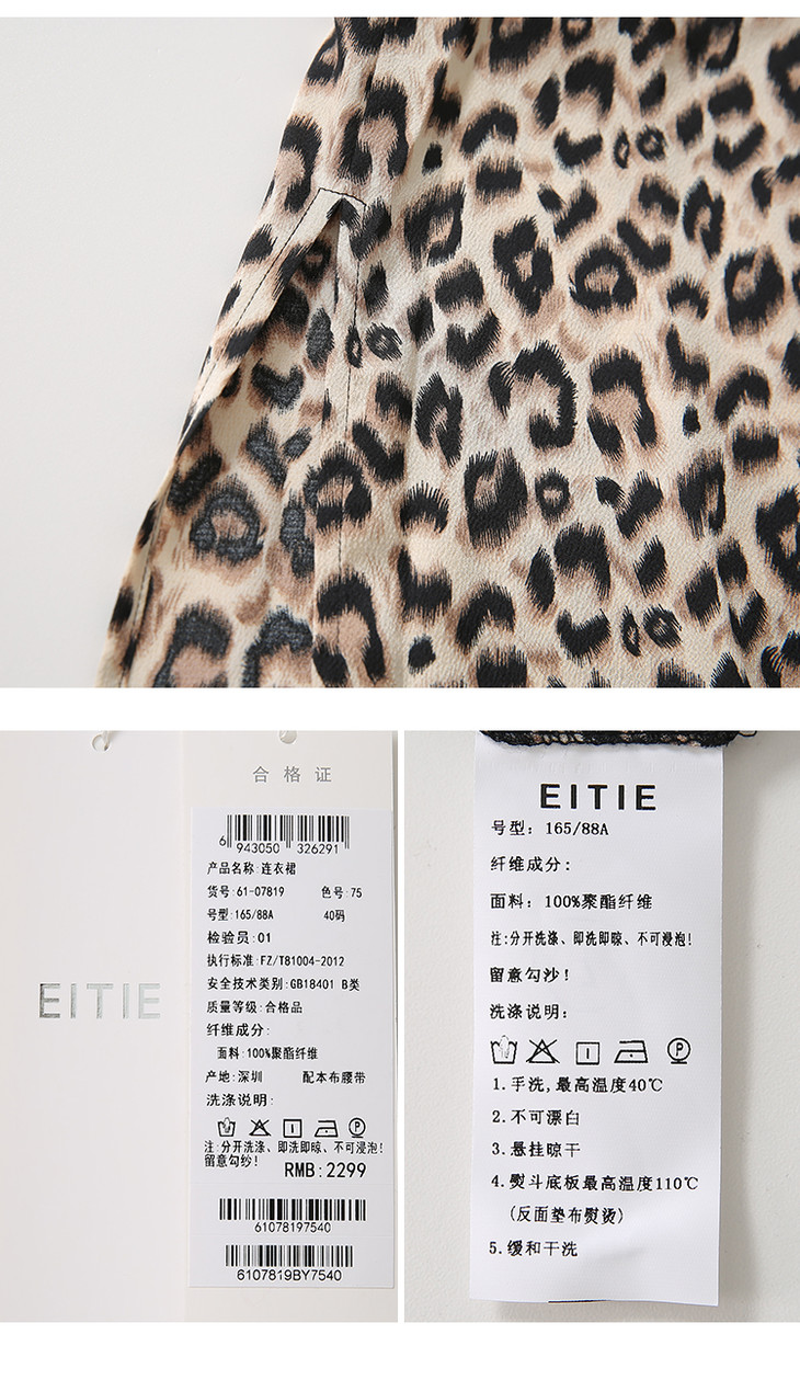 EITIE爱特爱女装秋款时尚复古洋气豹纹印花收腰衬衫连衣裙女显瘦6107819