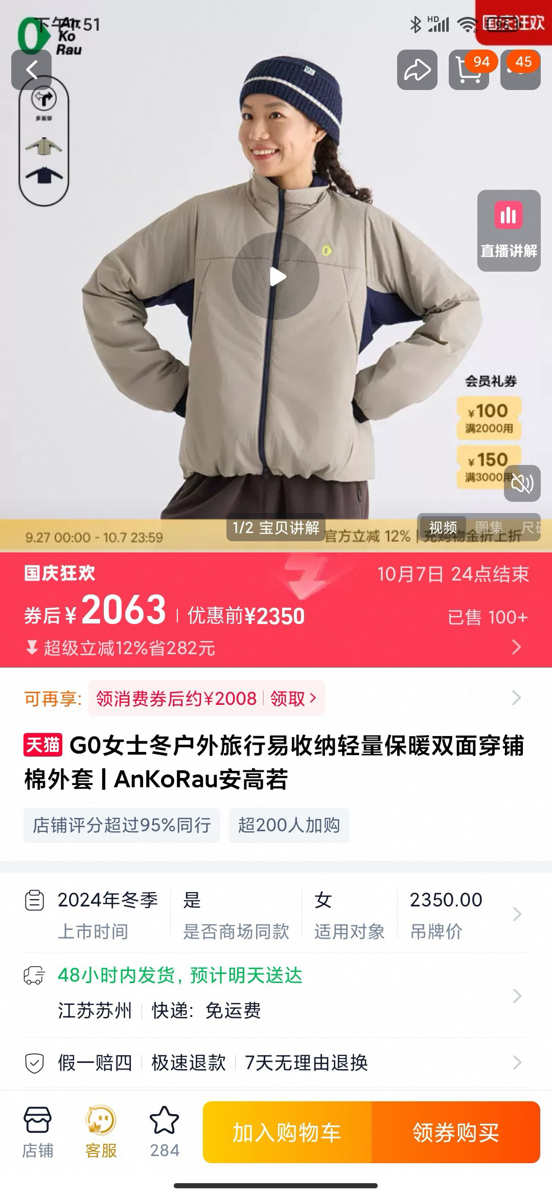 素R两色双面穿棉服外套