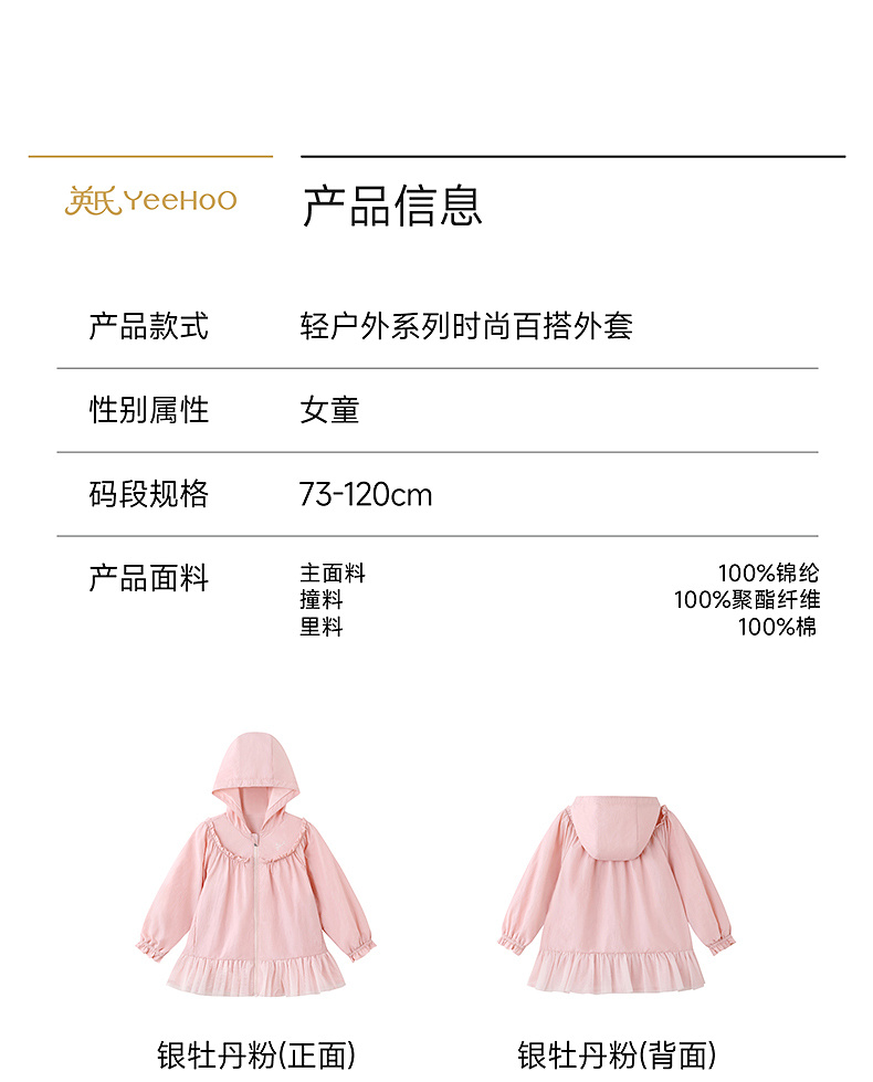 【商场同款】英氏宝宝防晒衣春秋款女童透气UPF50+皮肤衣外套新款