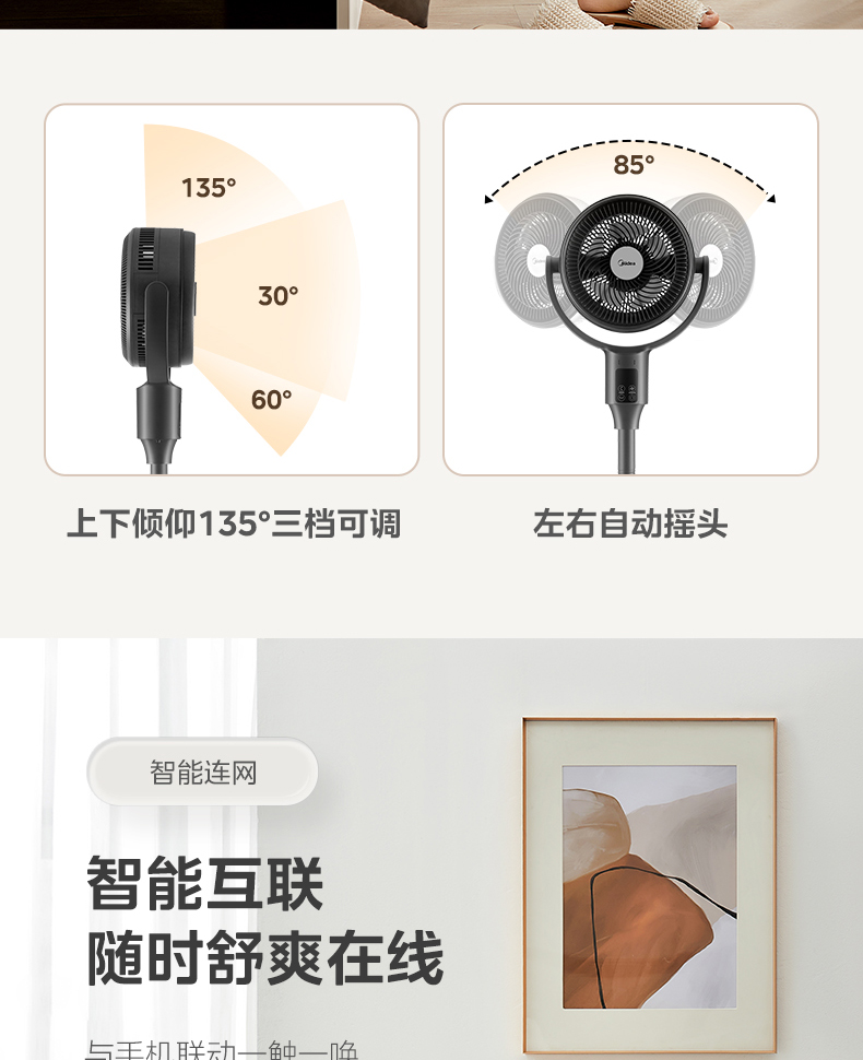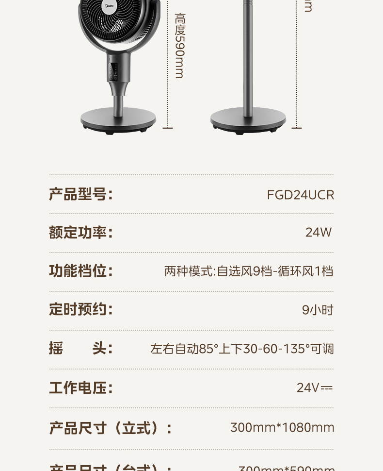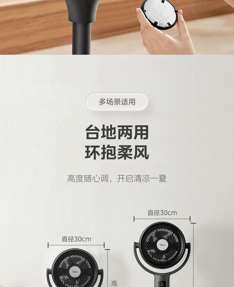 杞冠臻选 | 美的Midea 空气循环扇/电风扇 台地两用 4档调控 智能互联 远距送风 低音四季可用 FGD24UCR
