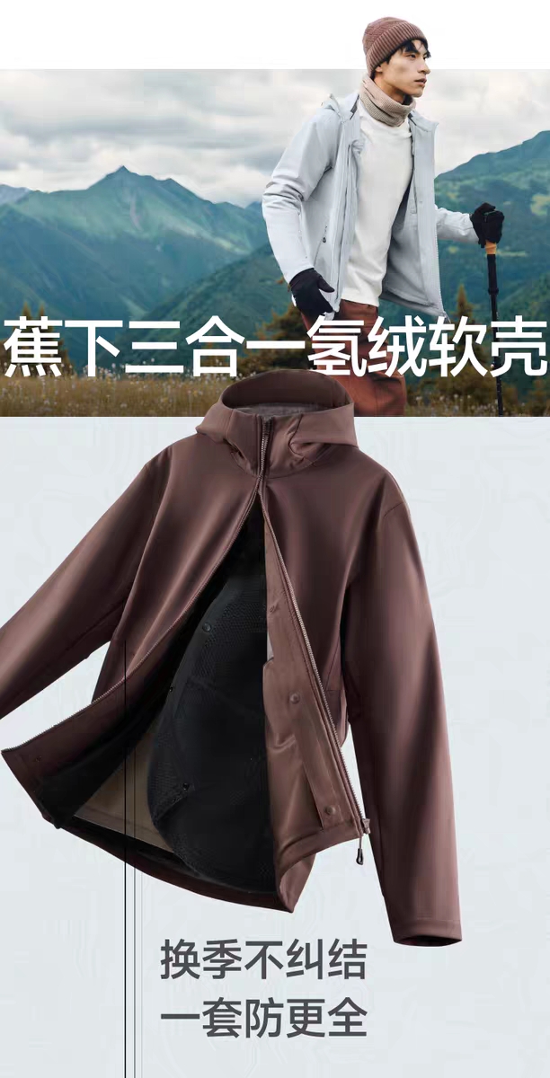 蕉下三合一运动外套ST019男秋新款防风防泼水保暖户外徒步登山运动软壳