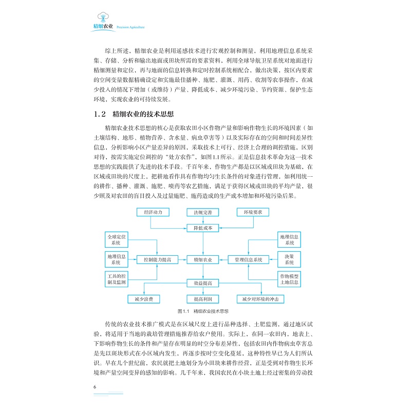 精细农业是以全球定位技术、地理信息系统、遥感技术、物联网技术为核心,应用信息技术改造传统农业生产模式的理论与实践应用。本教材既反映国外精细农业与农业信息技术的最新技术和装备,又结合国情,探索中国精细农业发展之路;既讲清基本原理和方法,又密切结合生产实际;既介绍国外最先进的精细农业技术和机具,又详细分析我国在精细农业技术应用现状和发展前景。本教材适合农业工程、智能农机装备、智慧农业及相关涉农类专业使用。