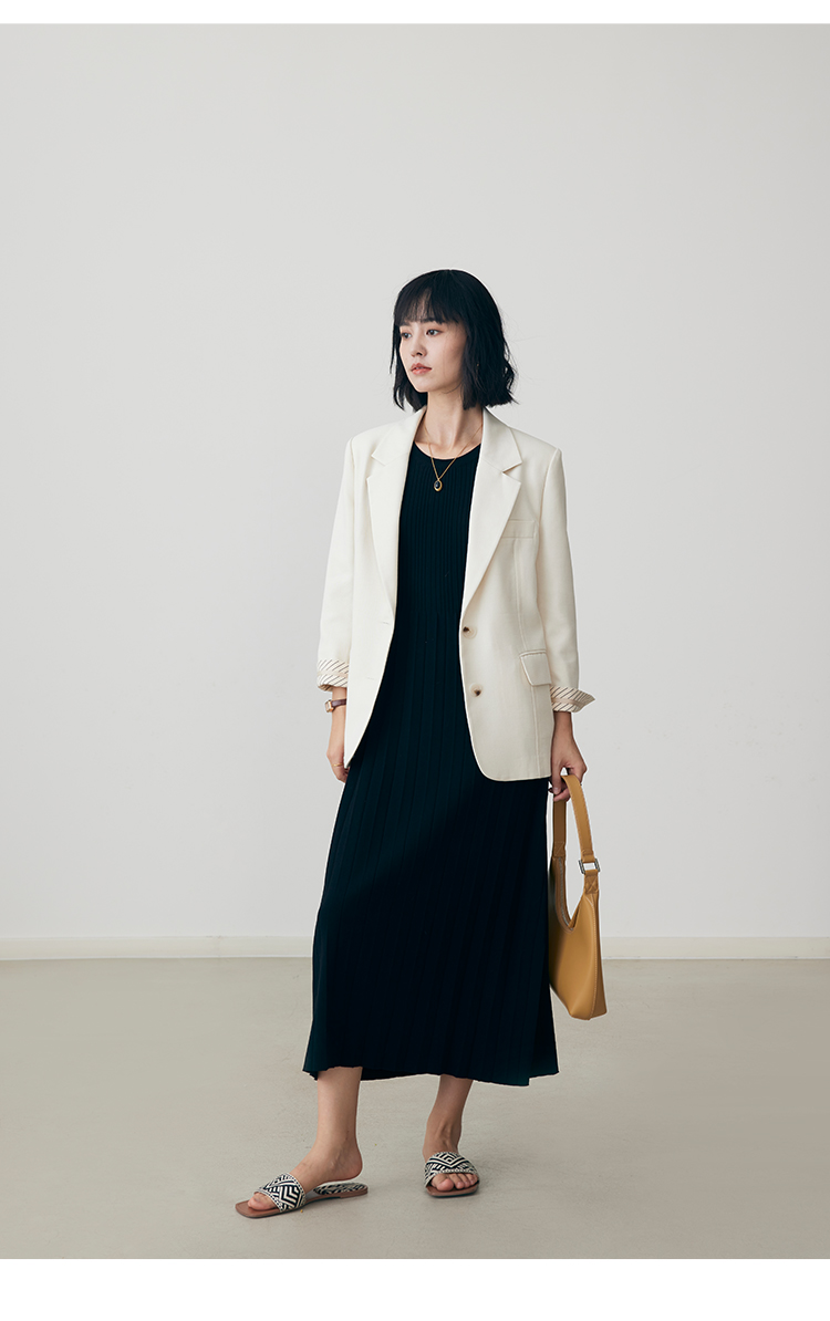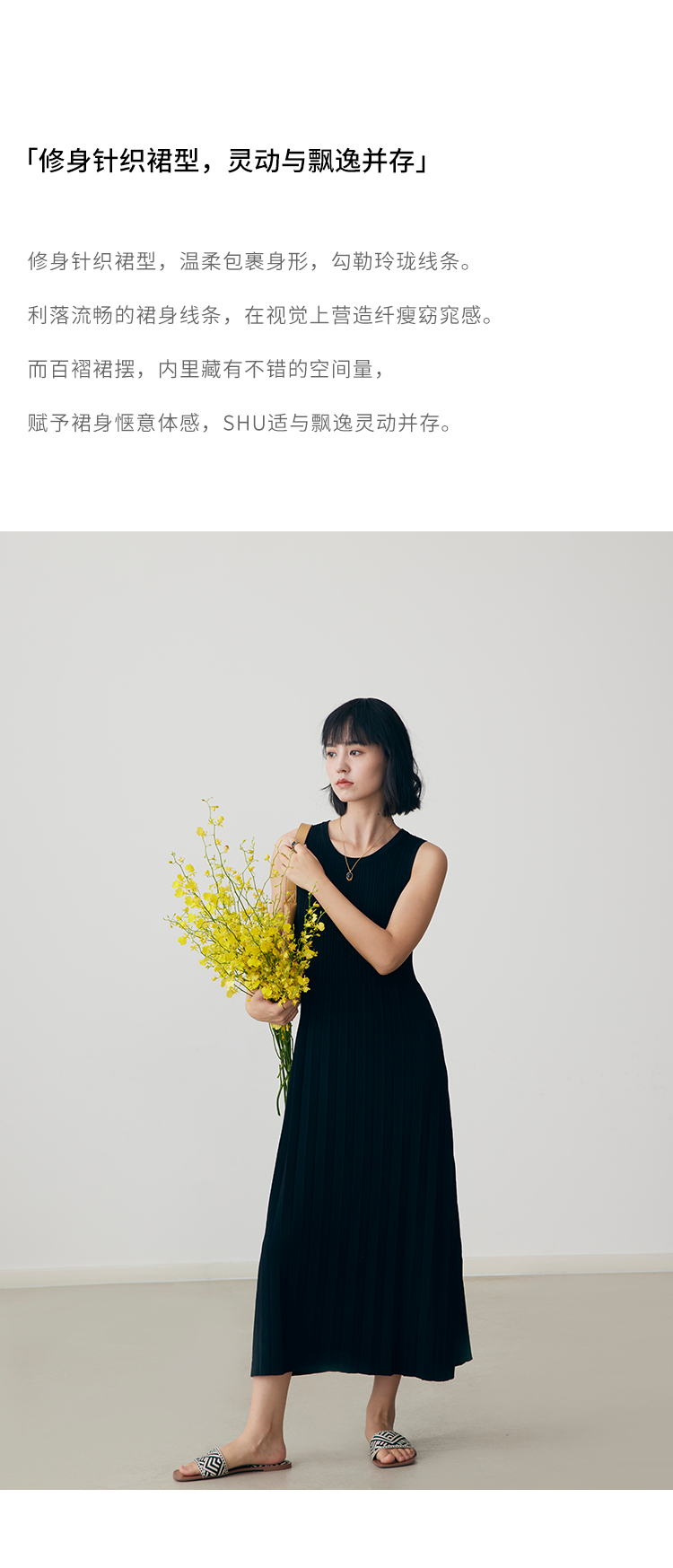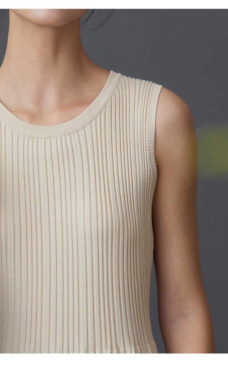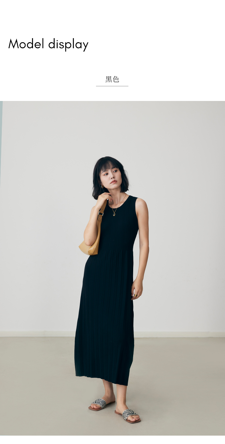 HeyDress法式针织连衣裙女早秋圆领高腰坑条设计感气质无袖裙子
