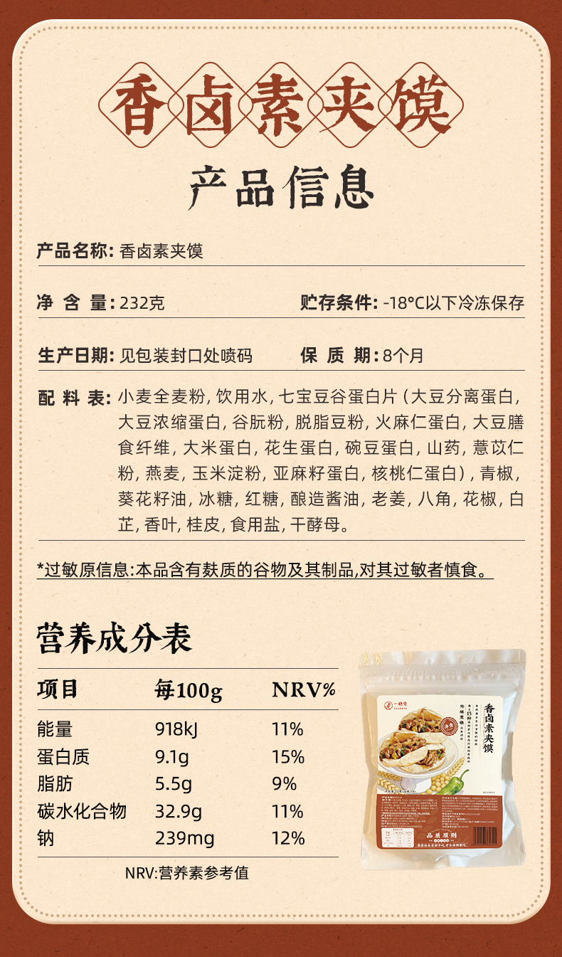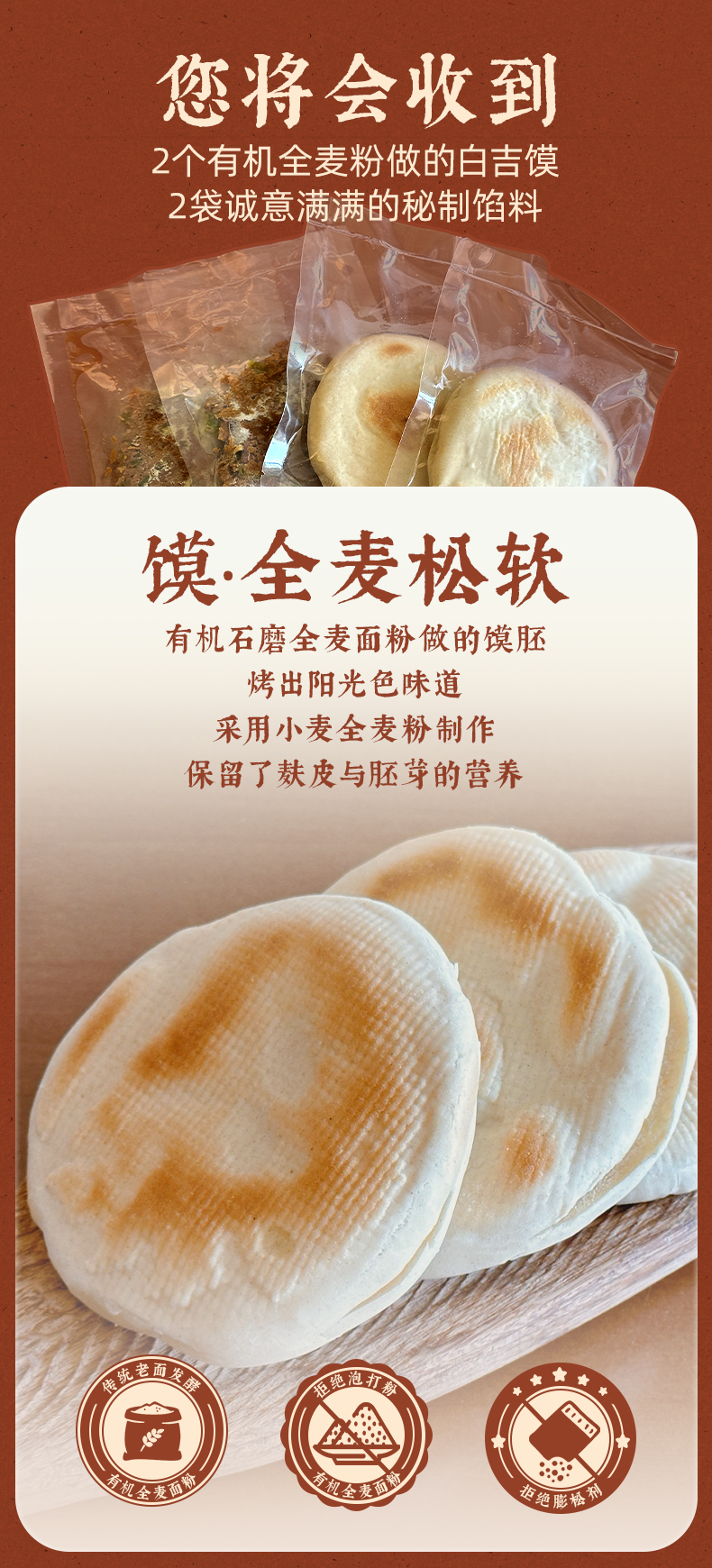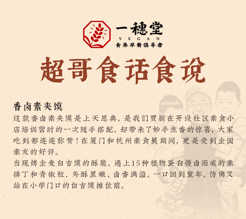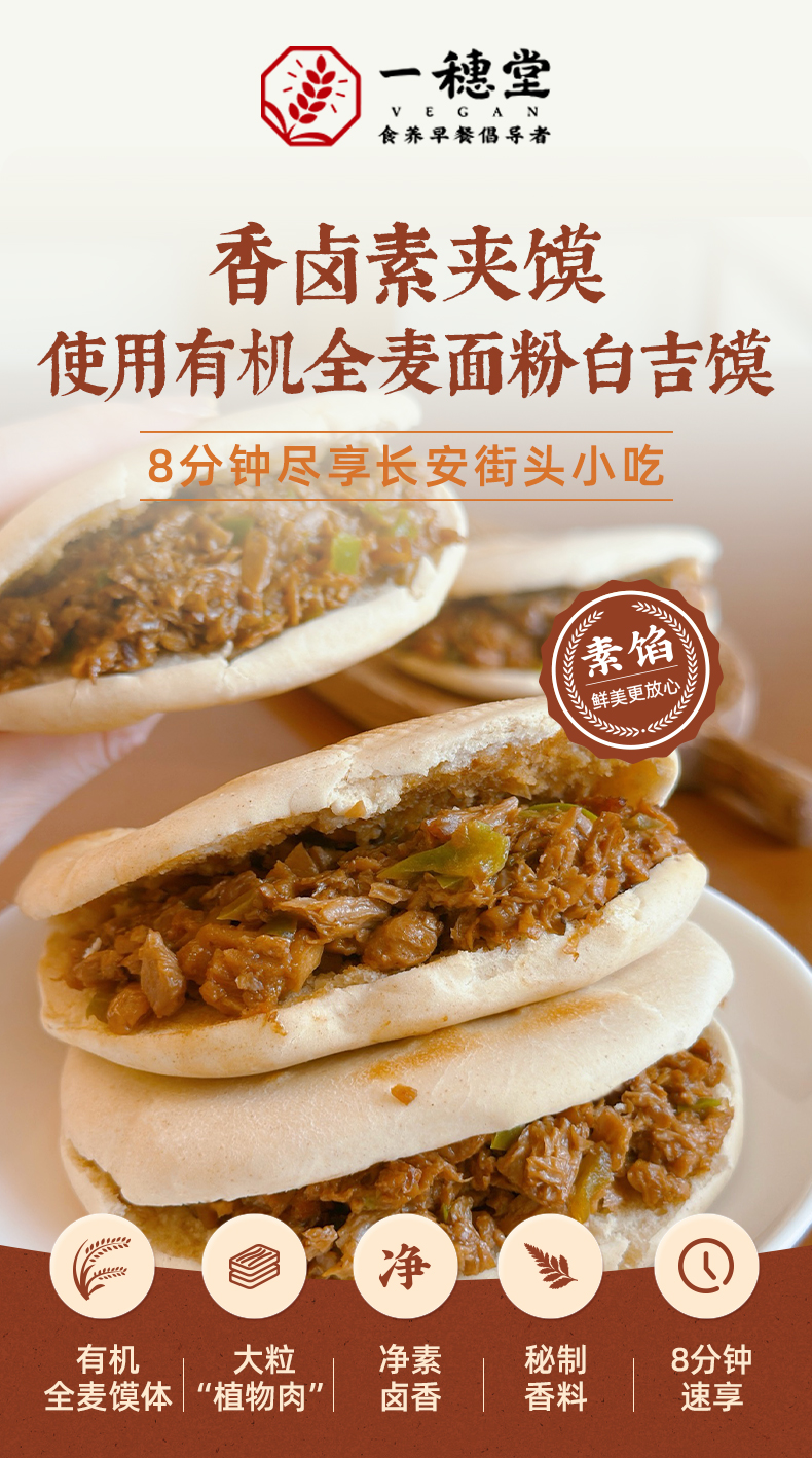 香卤素夹馍 (微辣) | 116g*2个/袋 石磨有机全麦面粉白吉馍 外酥里内 卤香四溢 面食早餐 一穗堂「一穗堂冻品满96常规地区包邮」