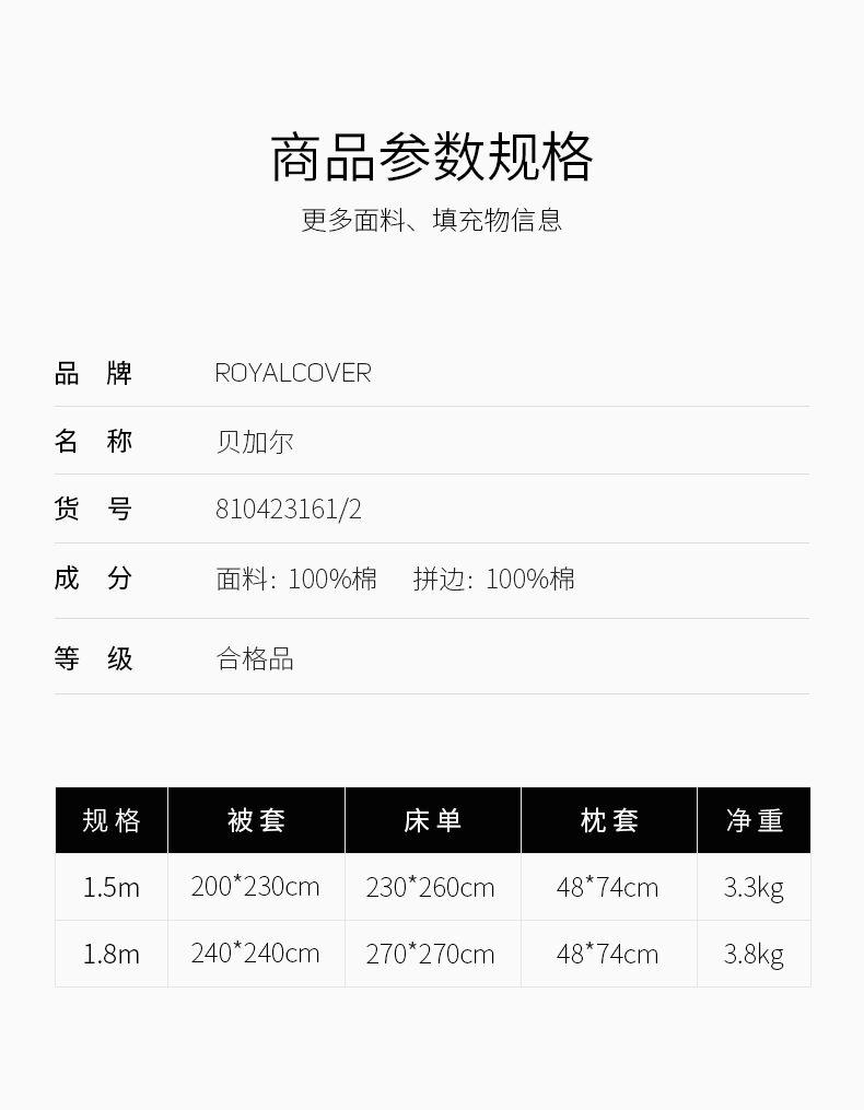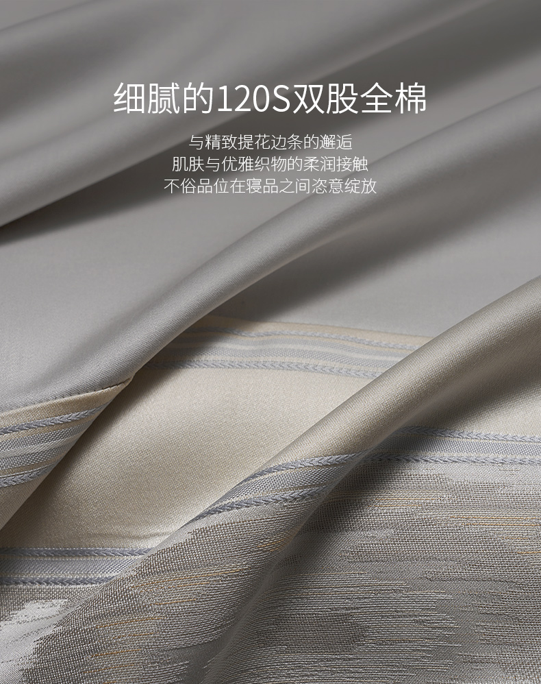 【ROYALCOVER】罗卡芙120支长绒棉素色套件全棉拼边四件套 贝加尔