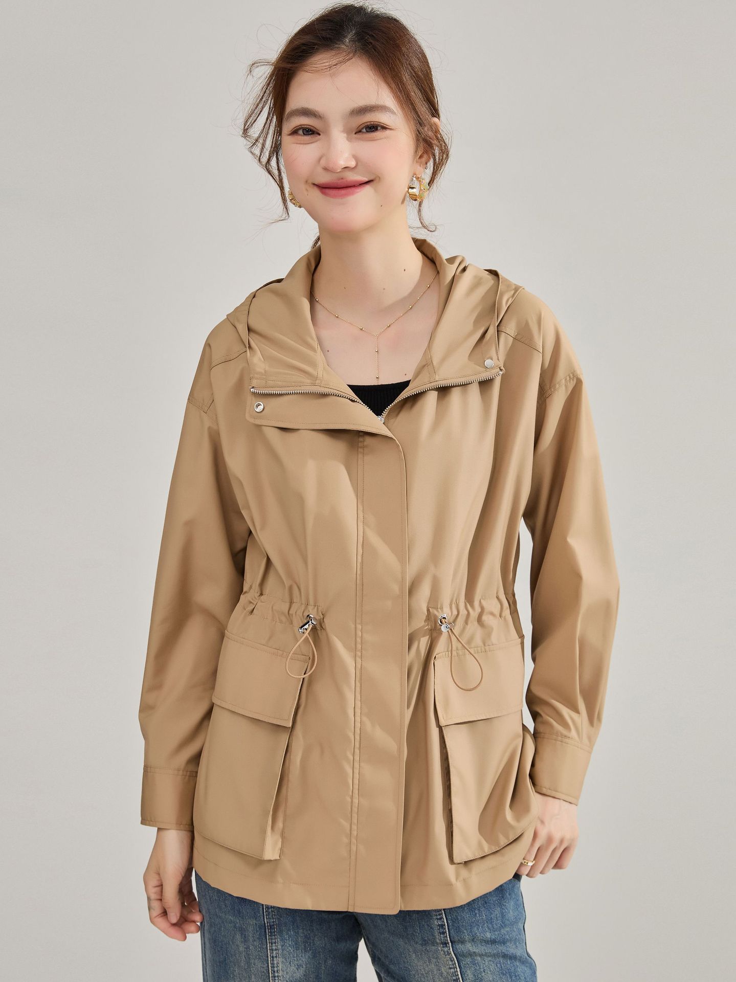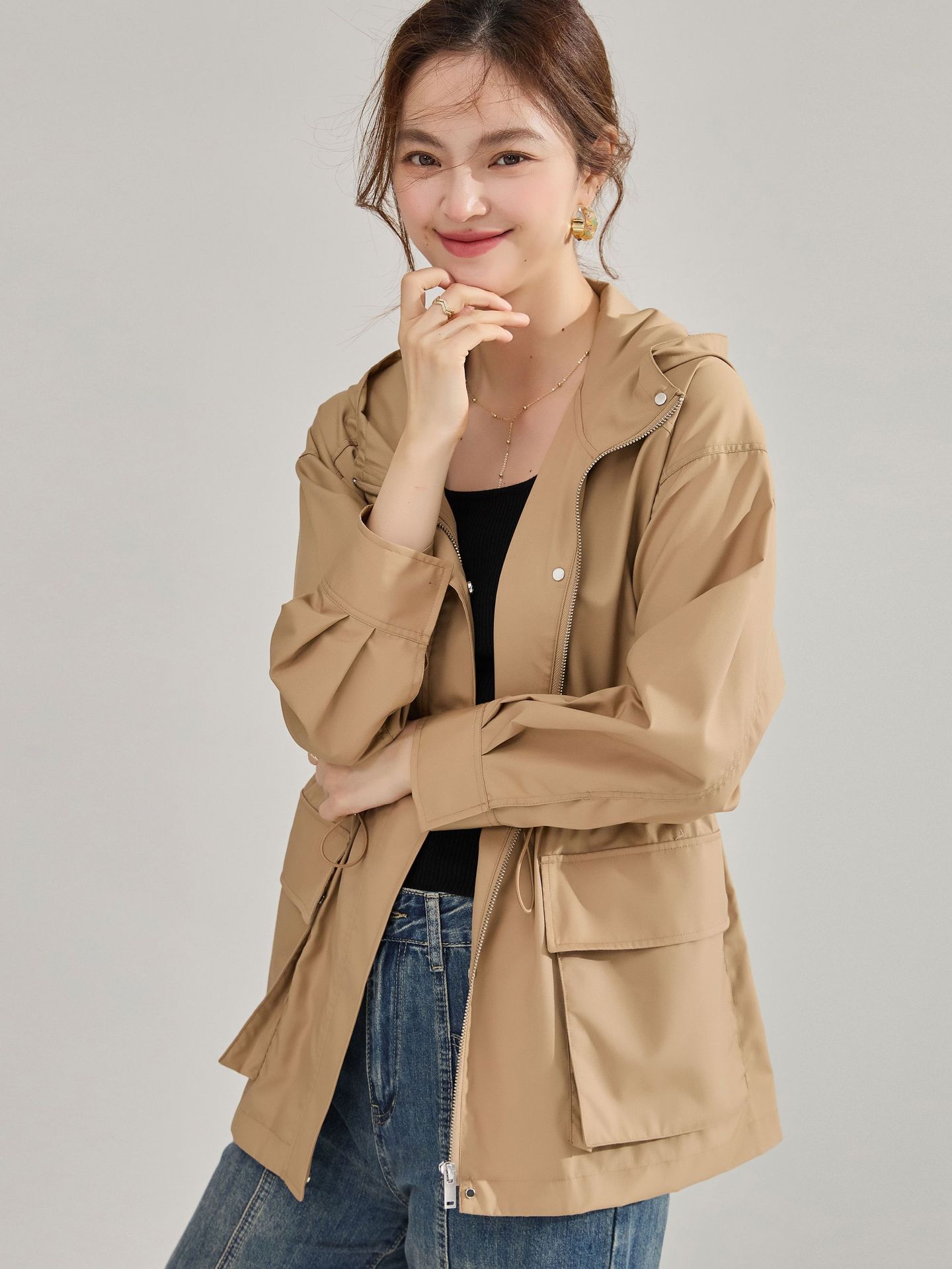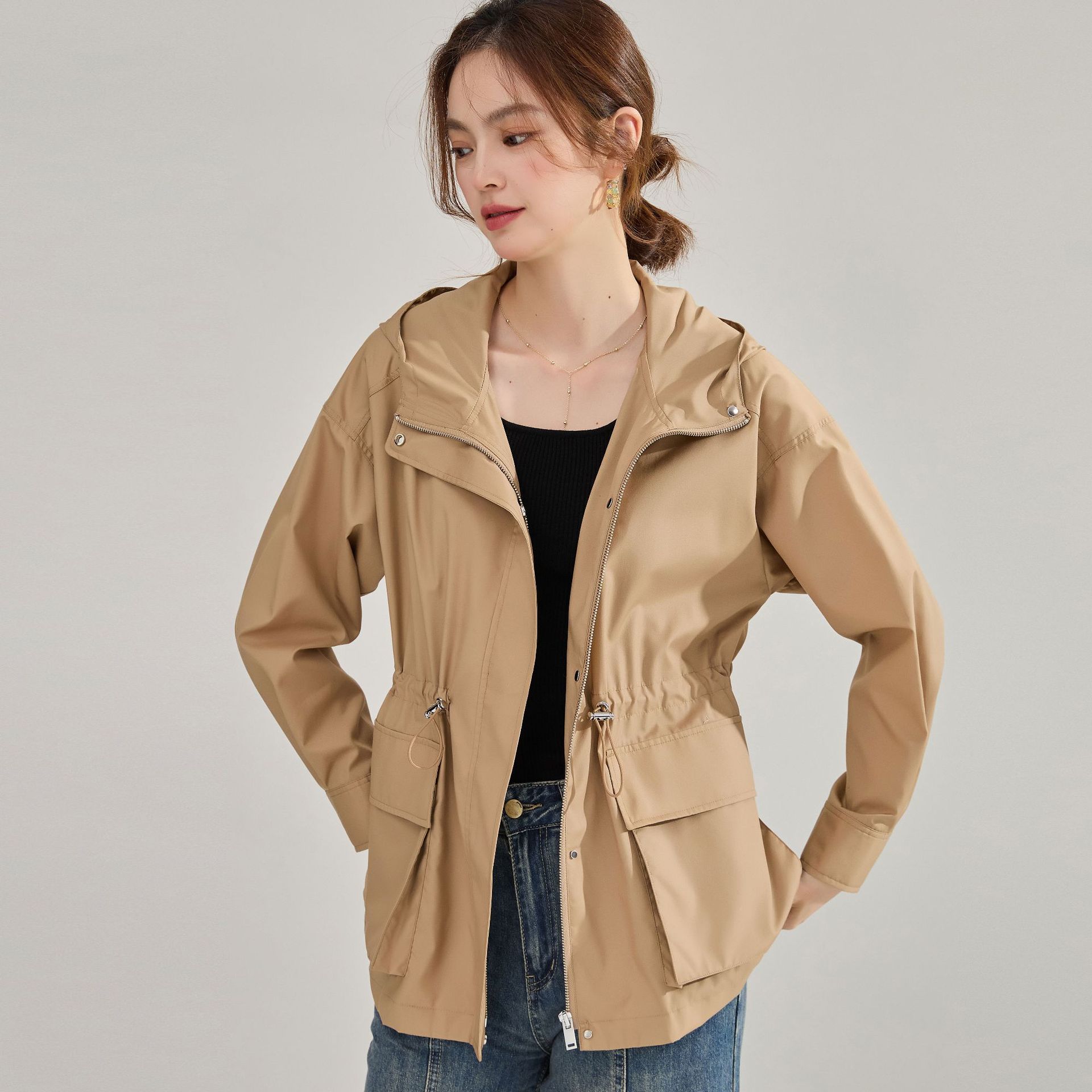 【高货sh】全新升级【铂金会员339/天猫459/差价120】(24209) 洛诗琳宽松休闲连帽外套2025春季新款抽绳收腰薄款短风衣