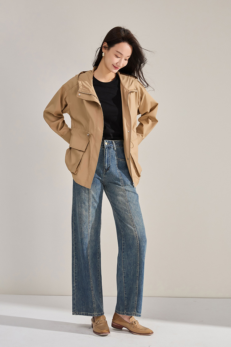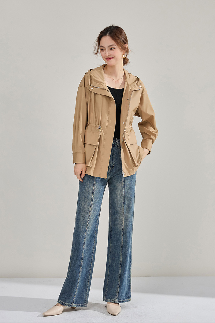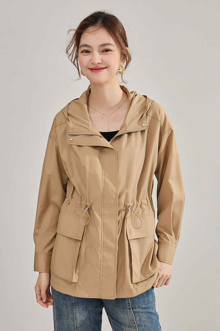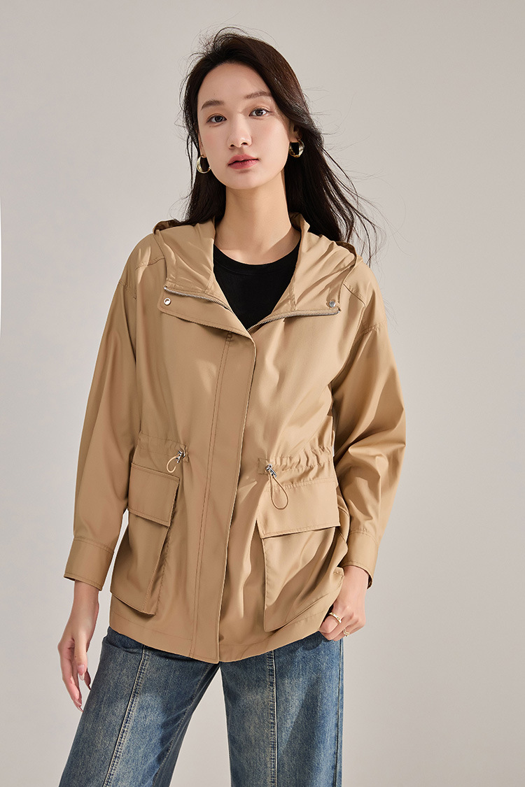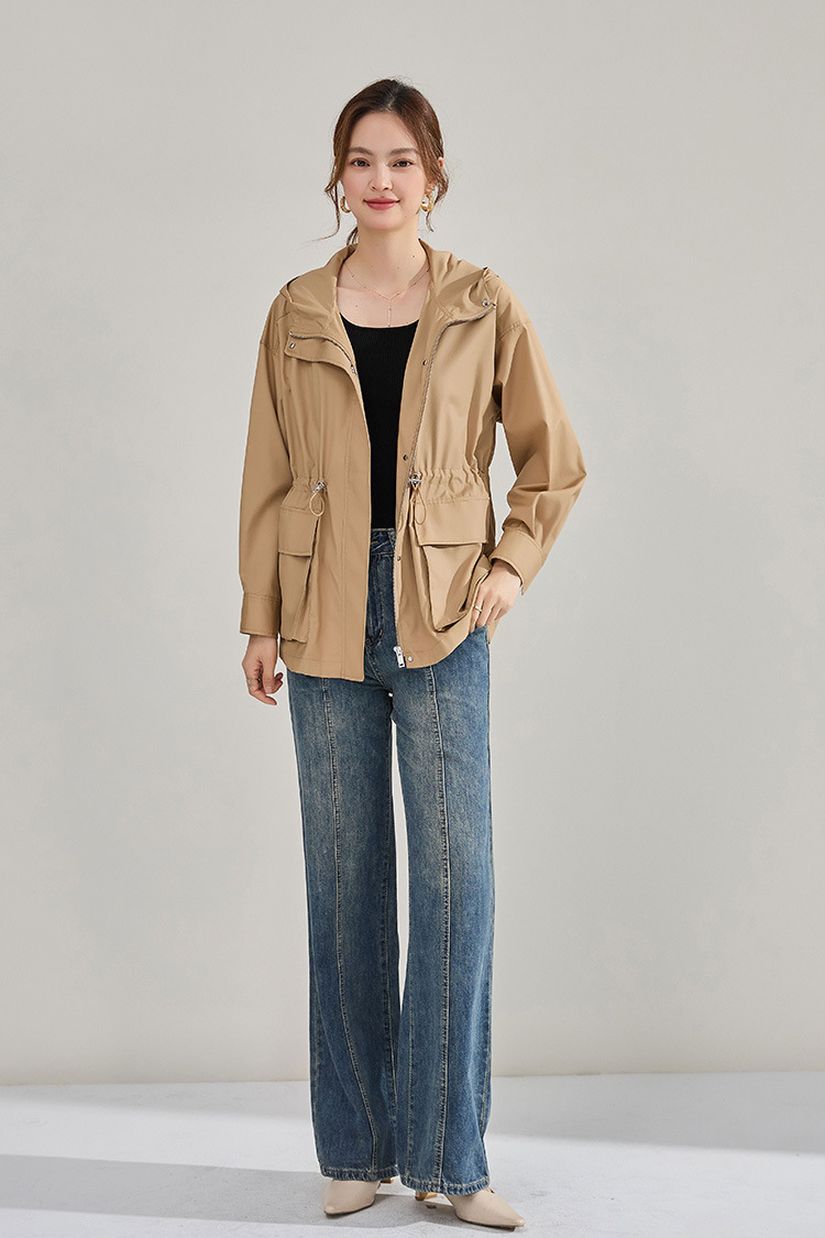 【高货sh】全新升级【铂金会员339/天猫459/差价120】(24209) 洛诗琳宽松休闲连帽外套2025春季新款抽绳收腰薄款短风衣