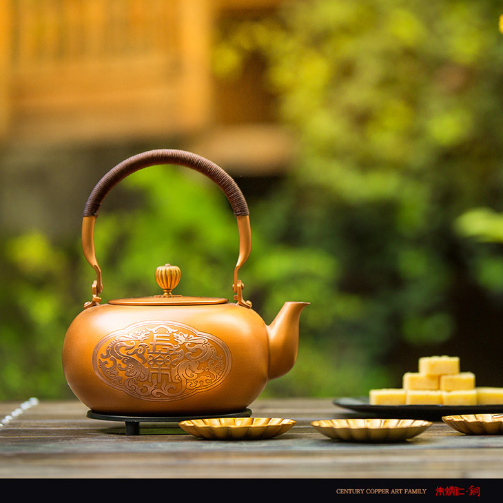 朱炳仁铜 中国人的传家宝 长乐壶 紫铜铜壶茶道家居摆件
