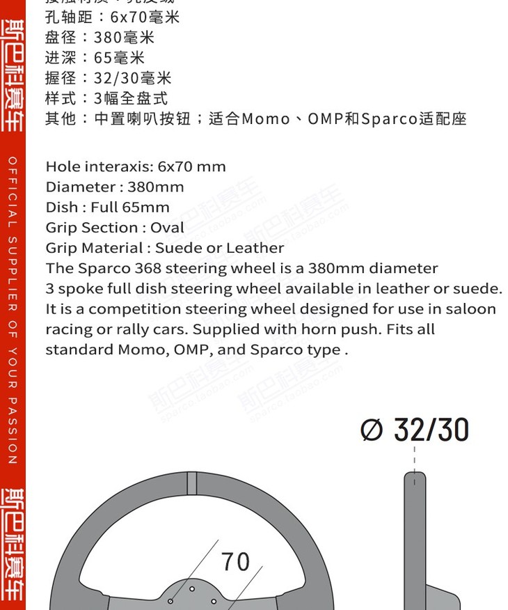 SPARCO 方向盘 场地 拉力 R368