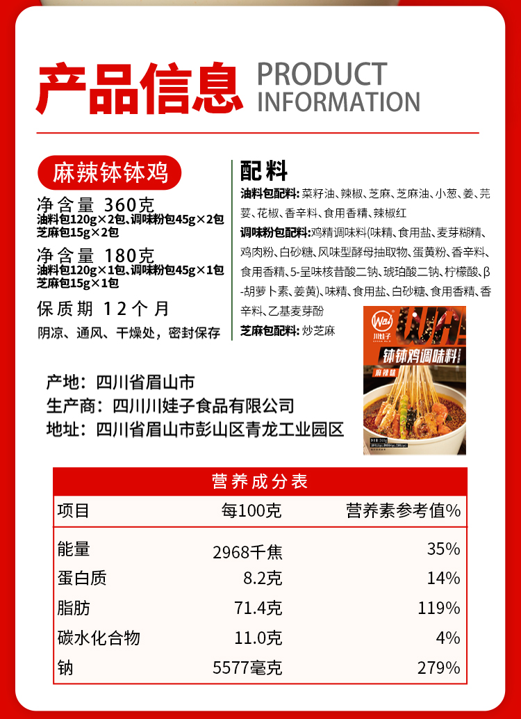 麻辣钵钵鸡调料360g+藤椒钵钵鸡调料360g(送竹签)