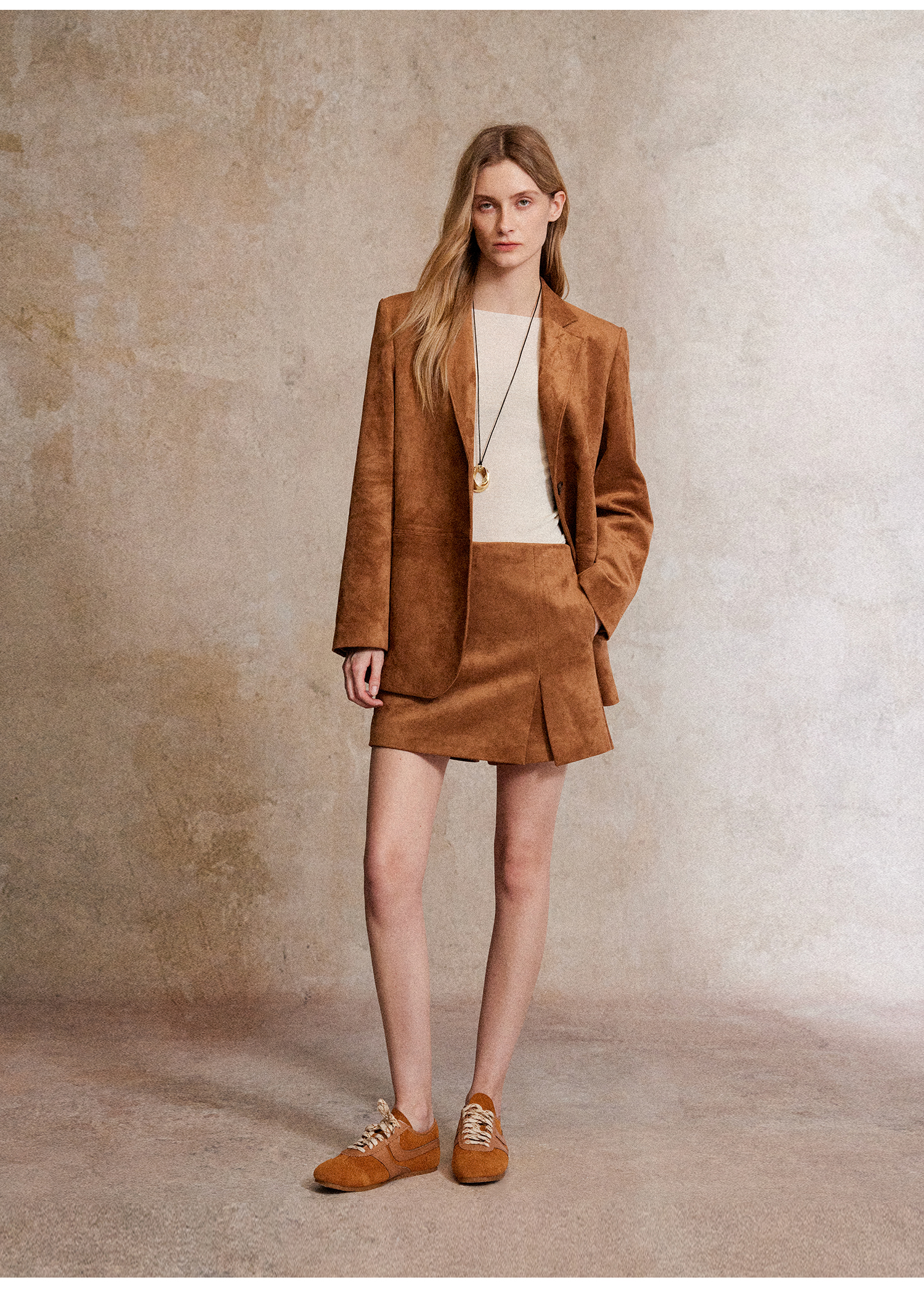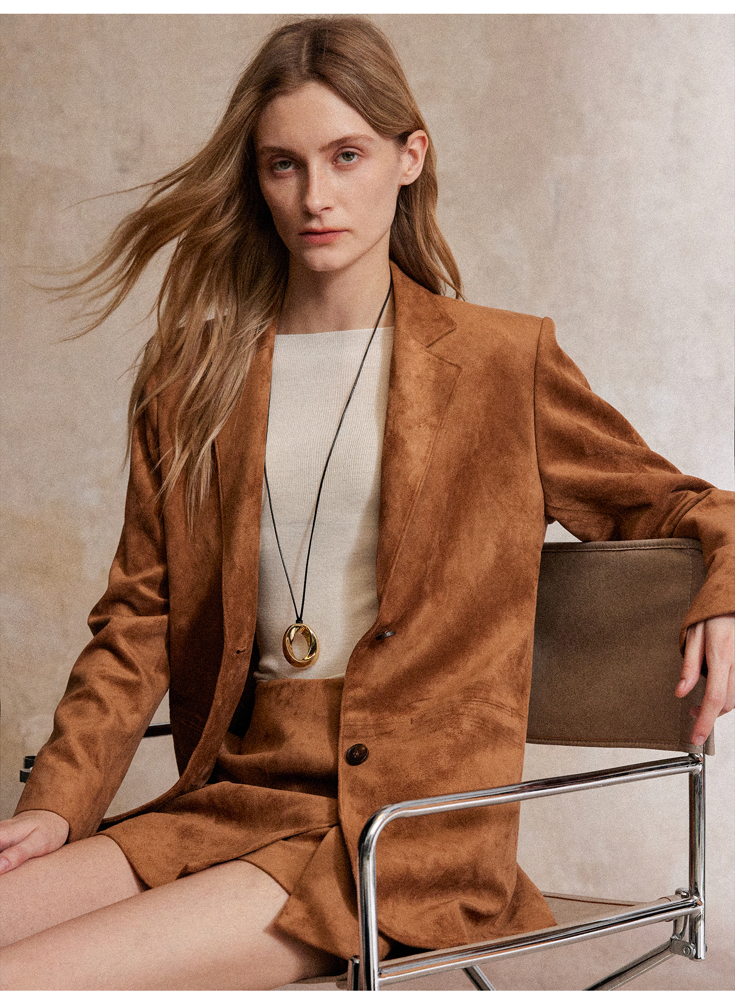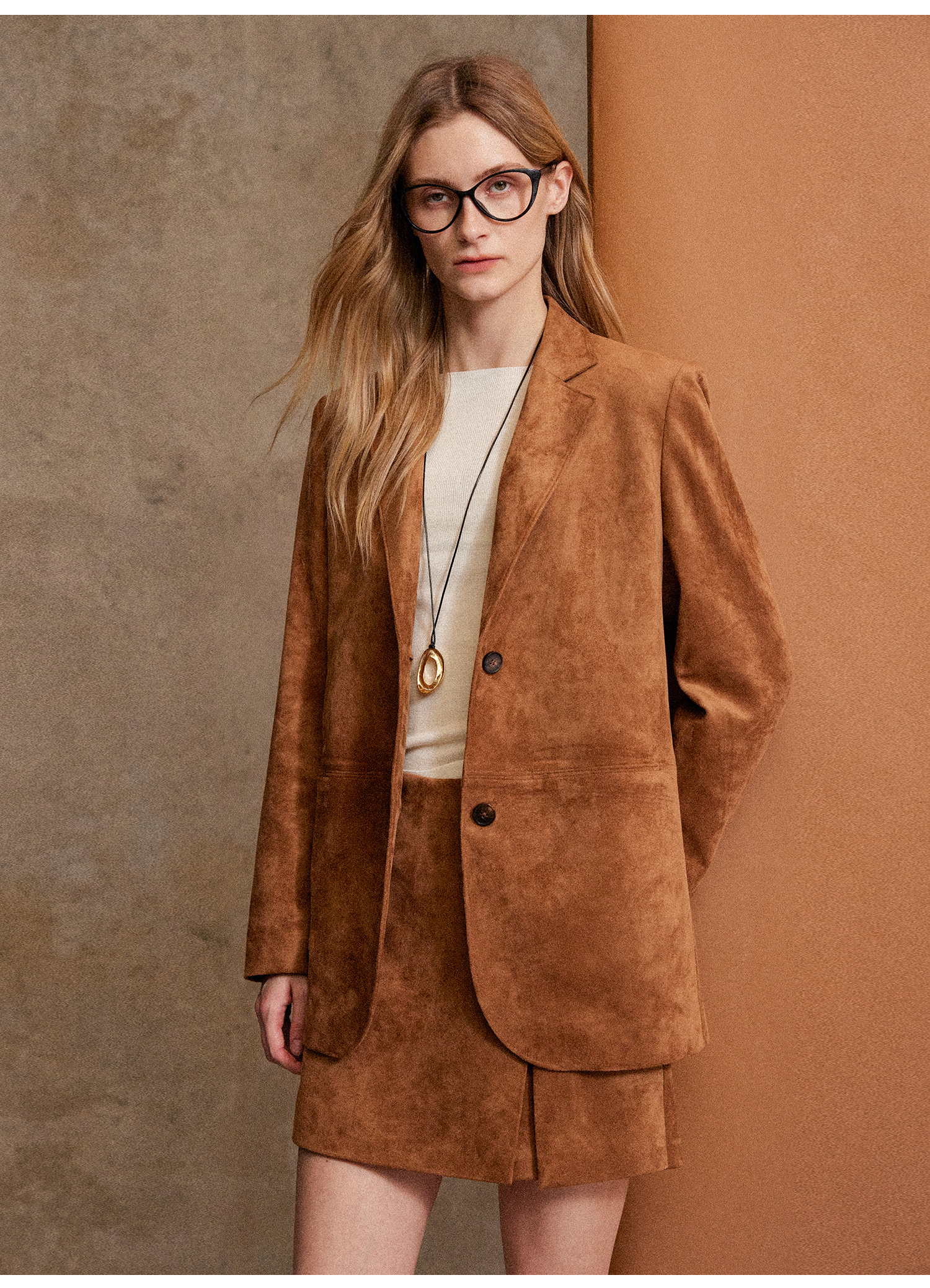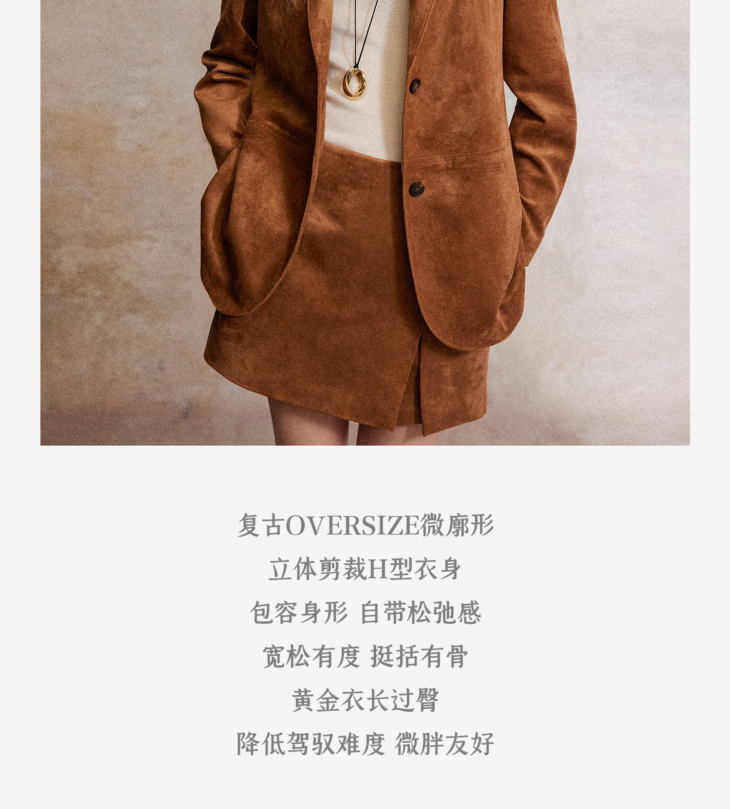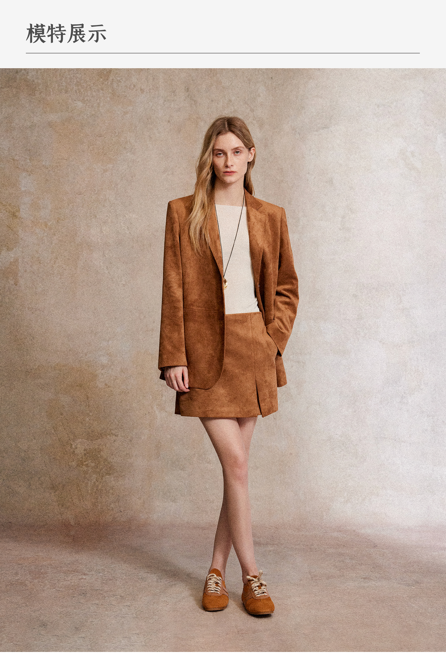 西嘉复古宽肩廓形麂皮绒老钱静奢可露丽风西装外套百搭简约短裙裤WT2503026