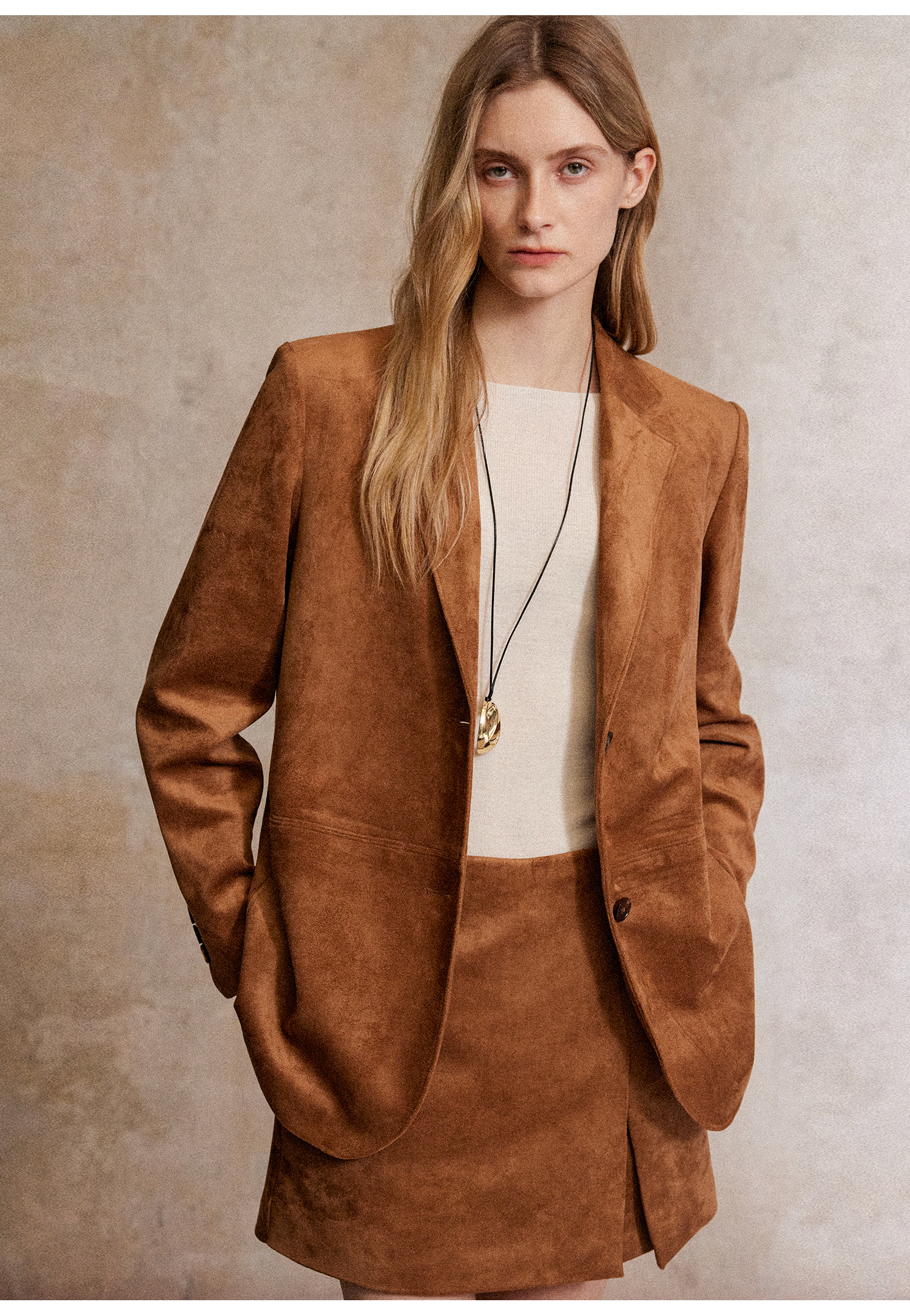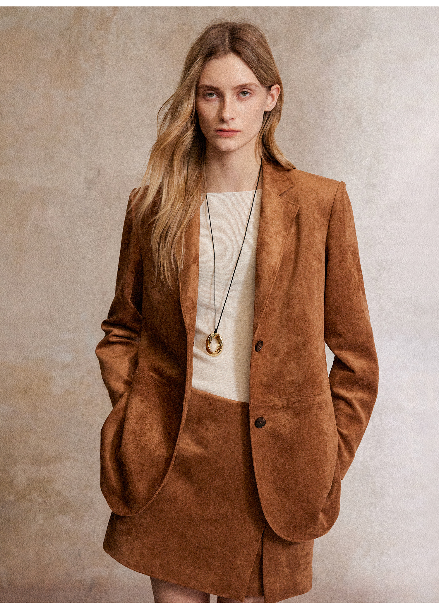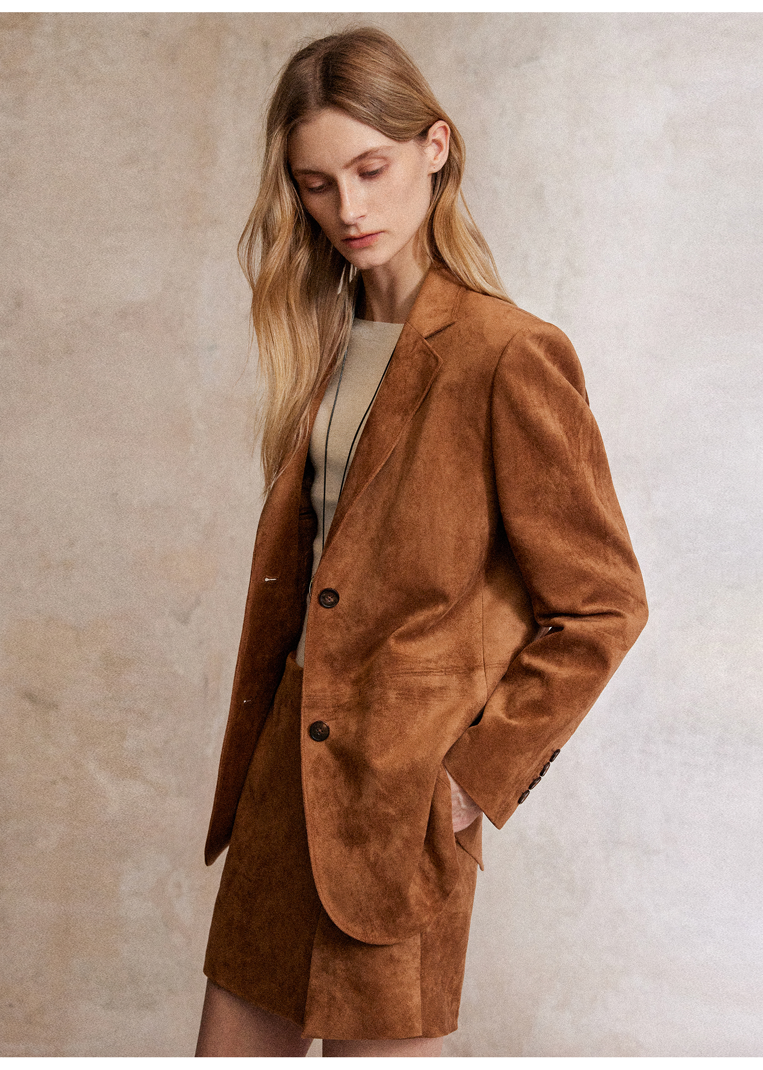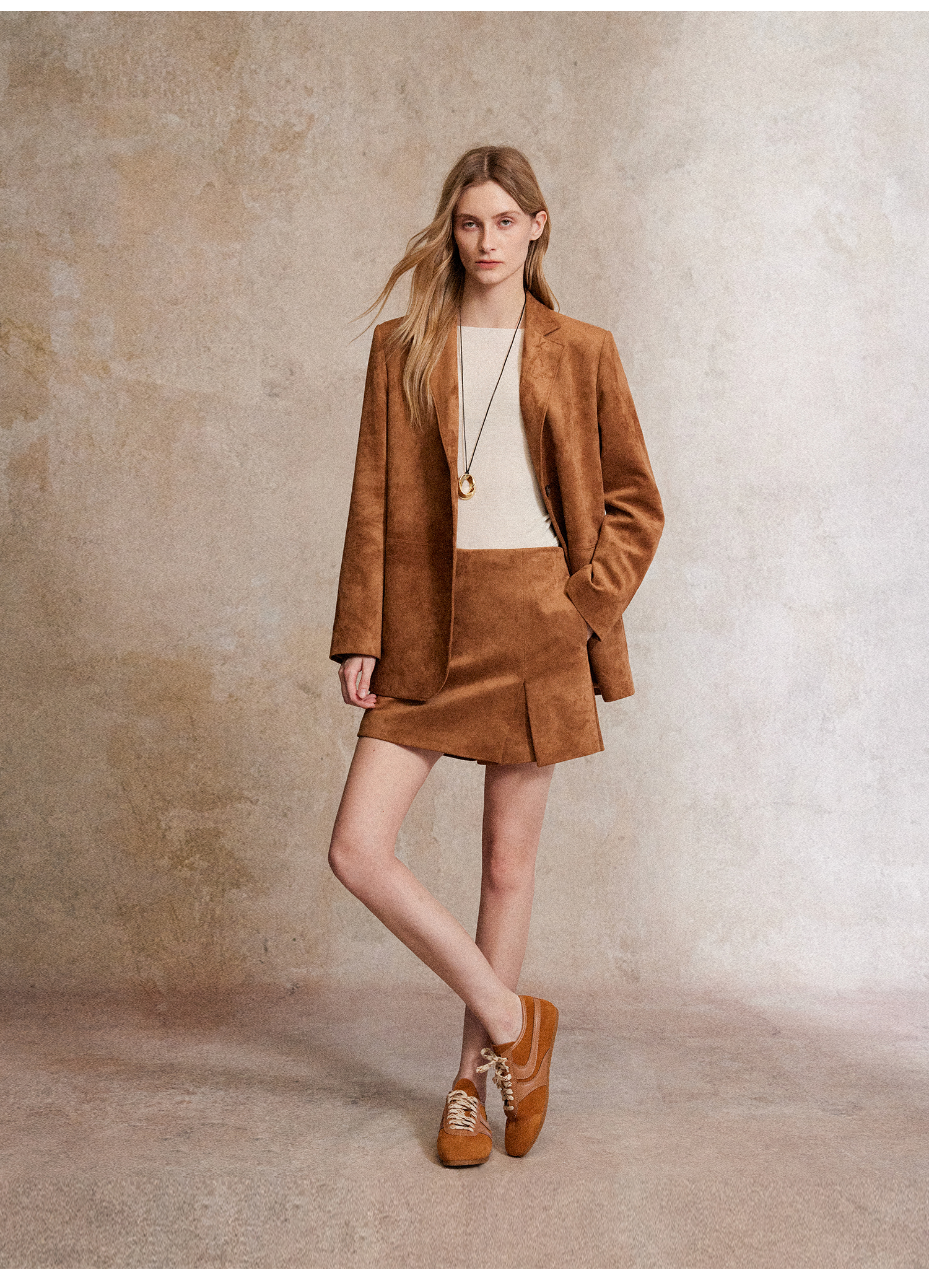 西嘉复古宽肩廓形麂皮绒老钱静奢可露丽风西装外套百搭简约短裙裤WT2503026
