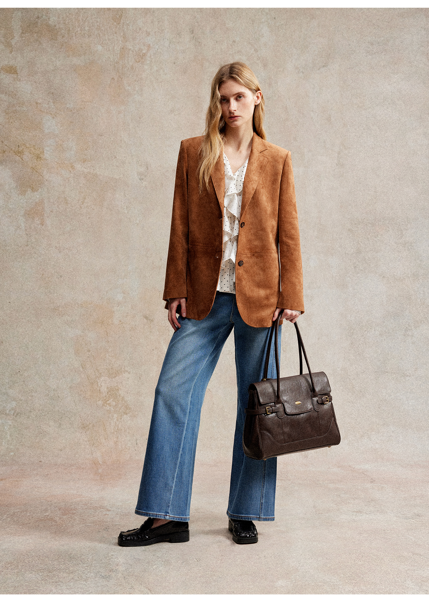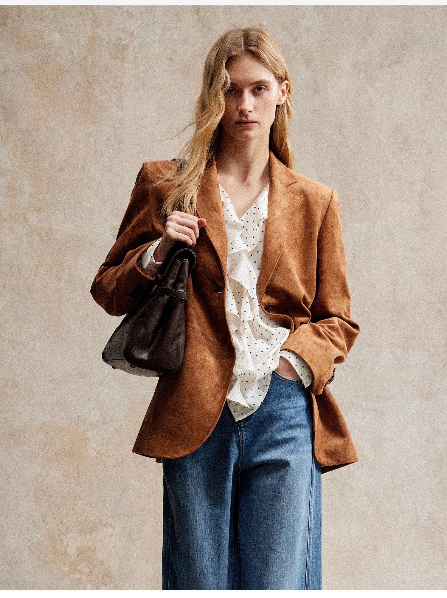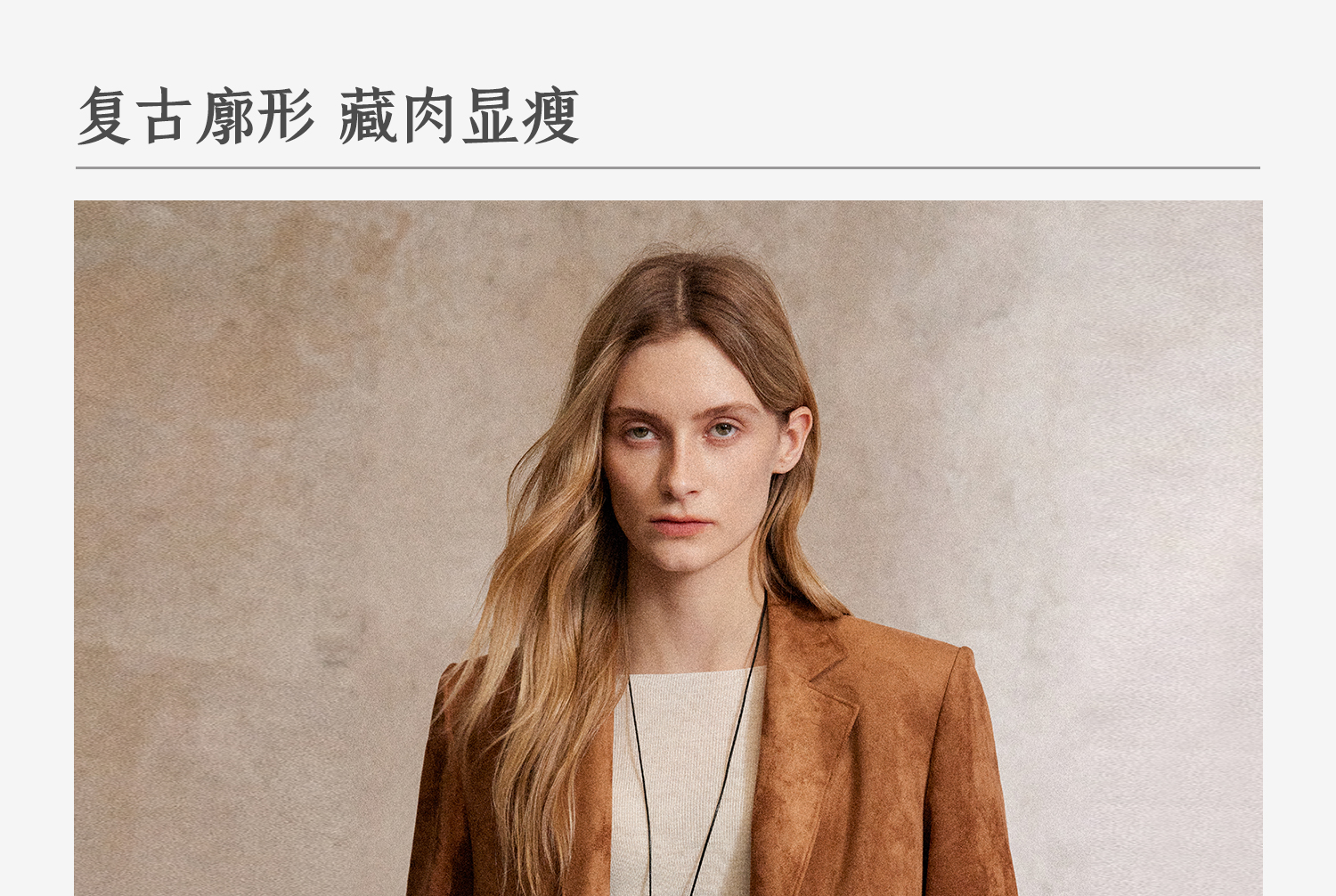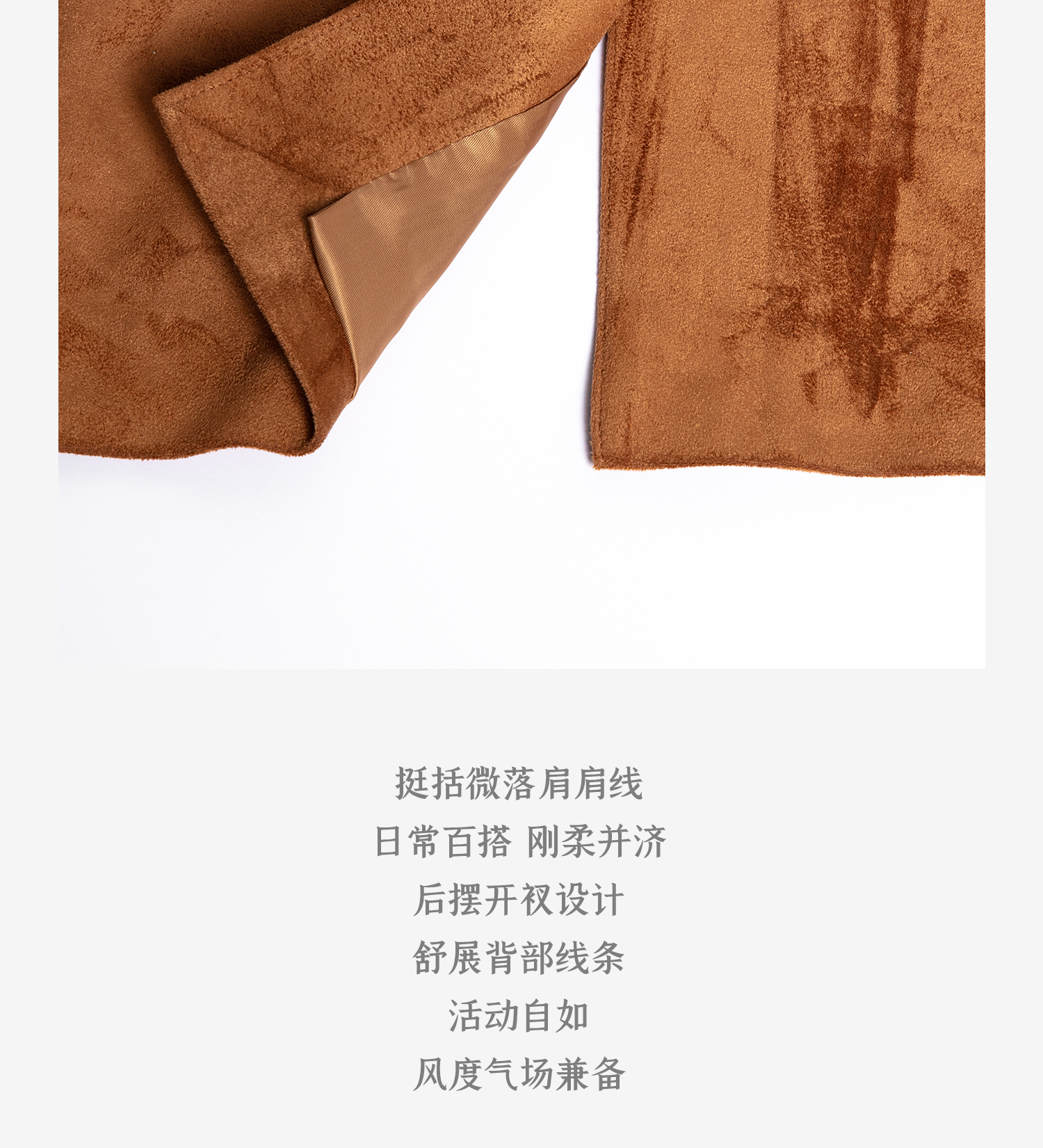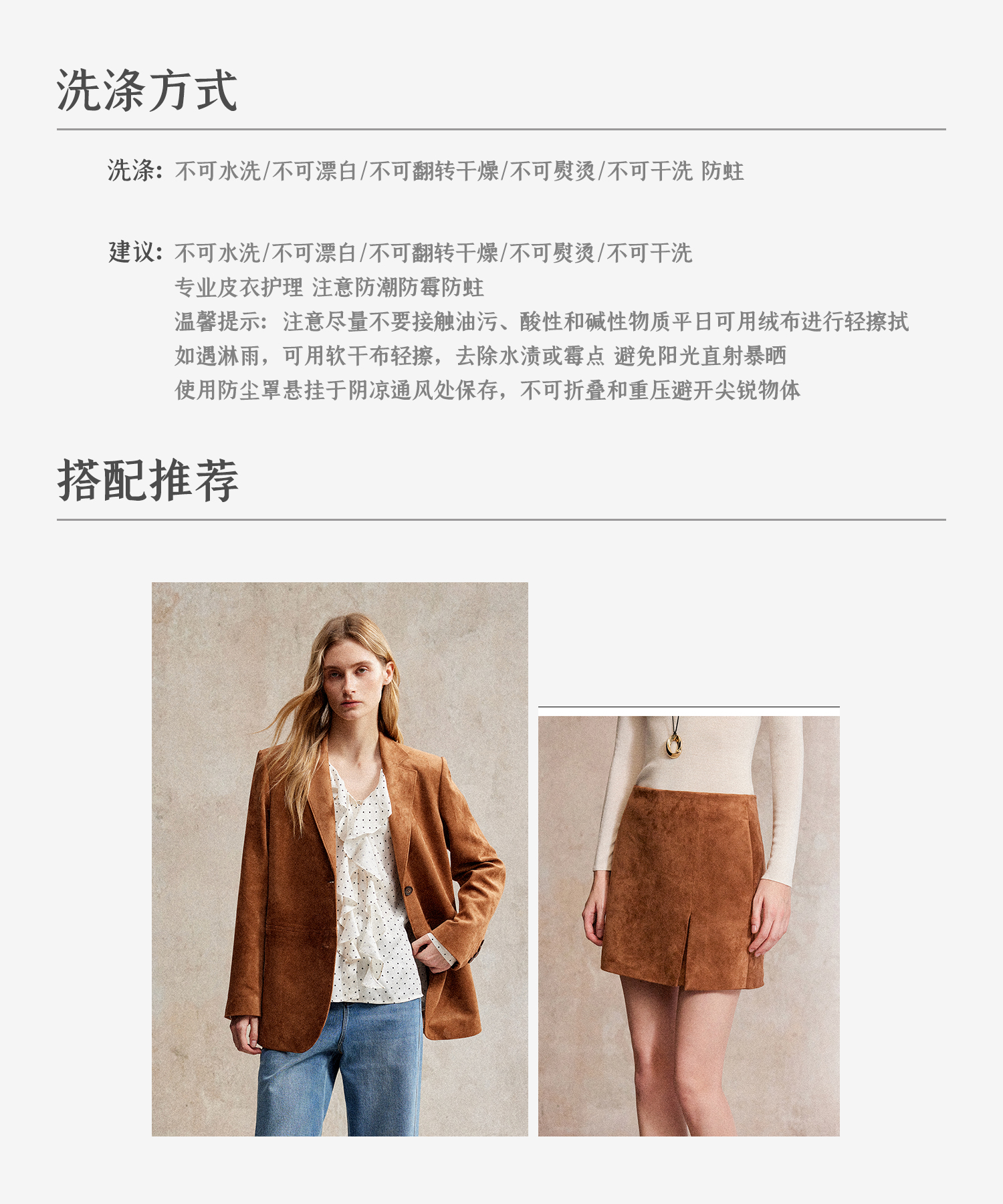 西嘉复古宽肩廓形麂皮绒老钱静奢可露丽风西装外套百搭简约短裙裤WT2503026