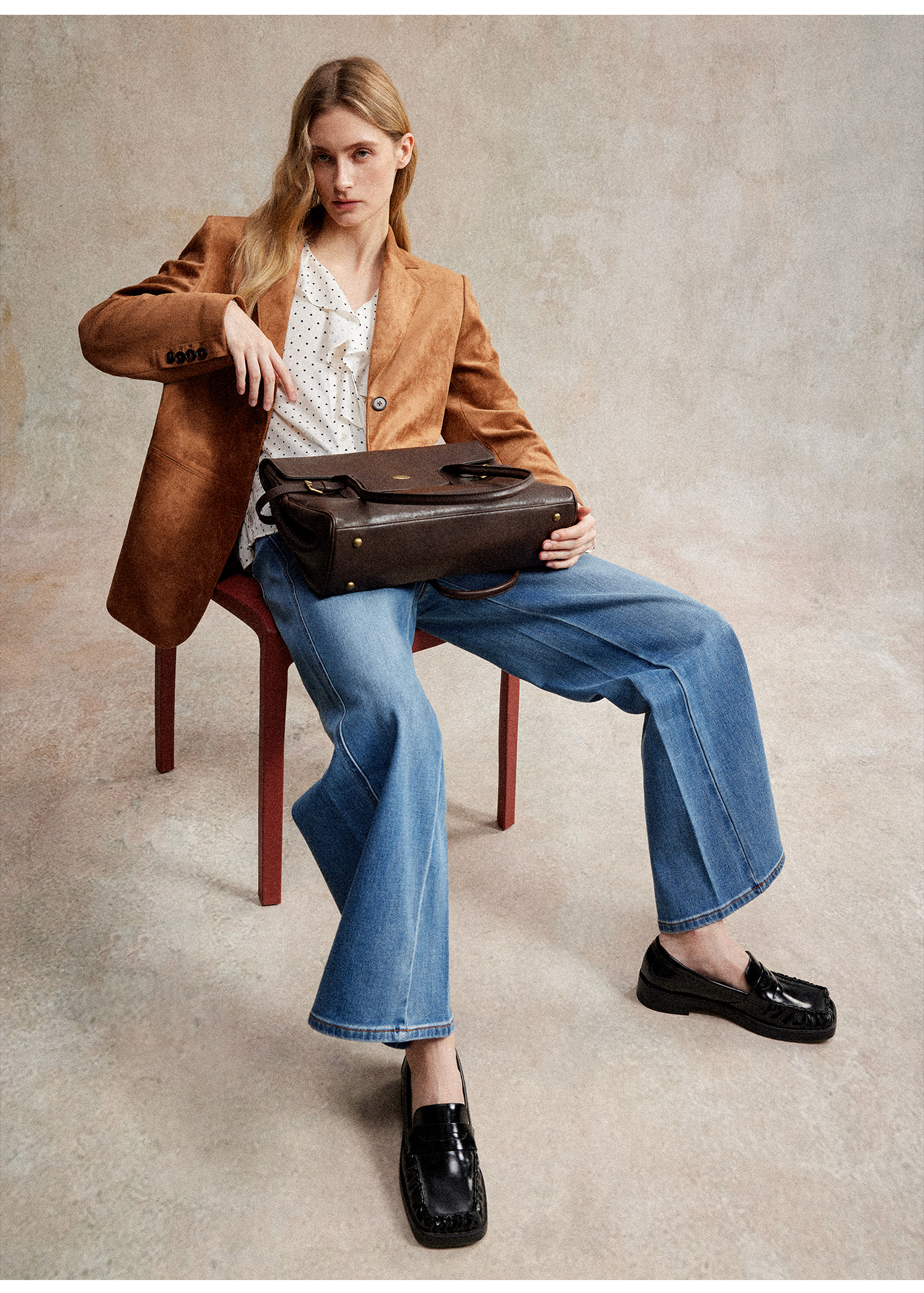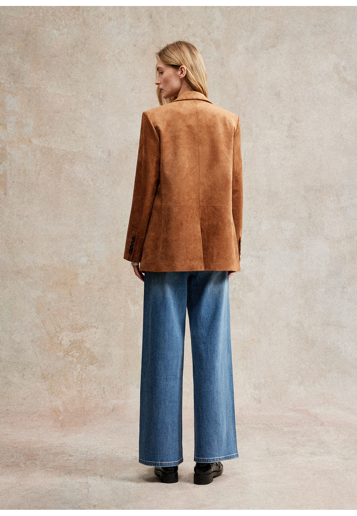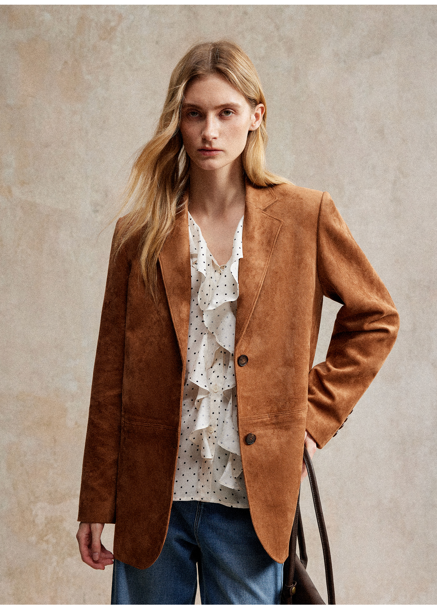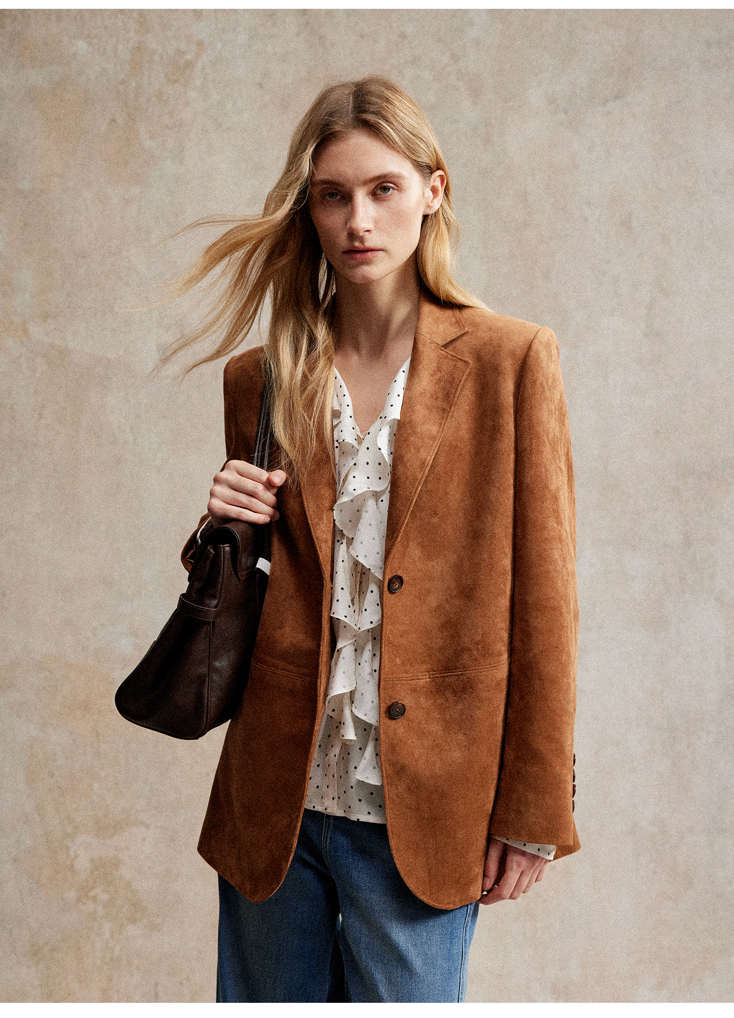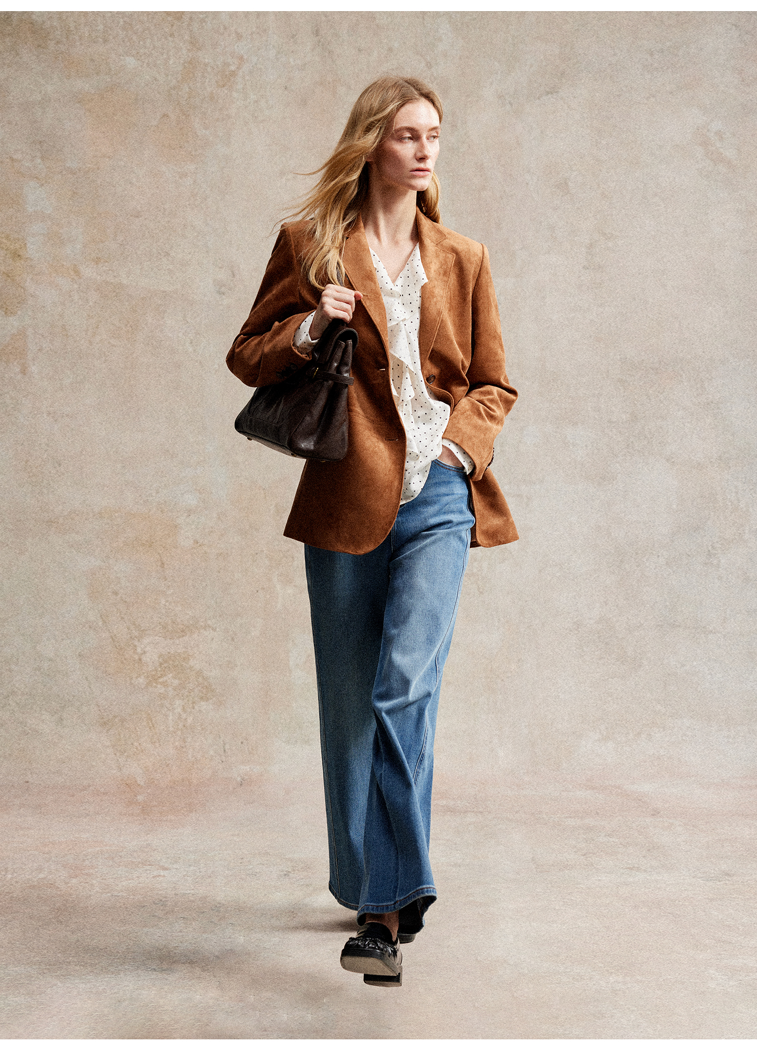 西嘉复古宽肩廓形麂皮绒老钱静奢可露丽风西装外套百搭简约短裙裤WT2503026