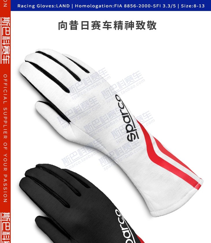 SPARCO手套 FIA认证 内缝线 经典复古 LAND CLASSIC