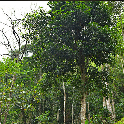 其茶树生长零星分散,在茶王树的背面山坡上便分散着一大片的高杆古茶树,据说树龄也在五六百年左右,其土壤环境与茶王树所在地一脉相承,翠美茶社百花潭古树茶便采自于这片古茶树。