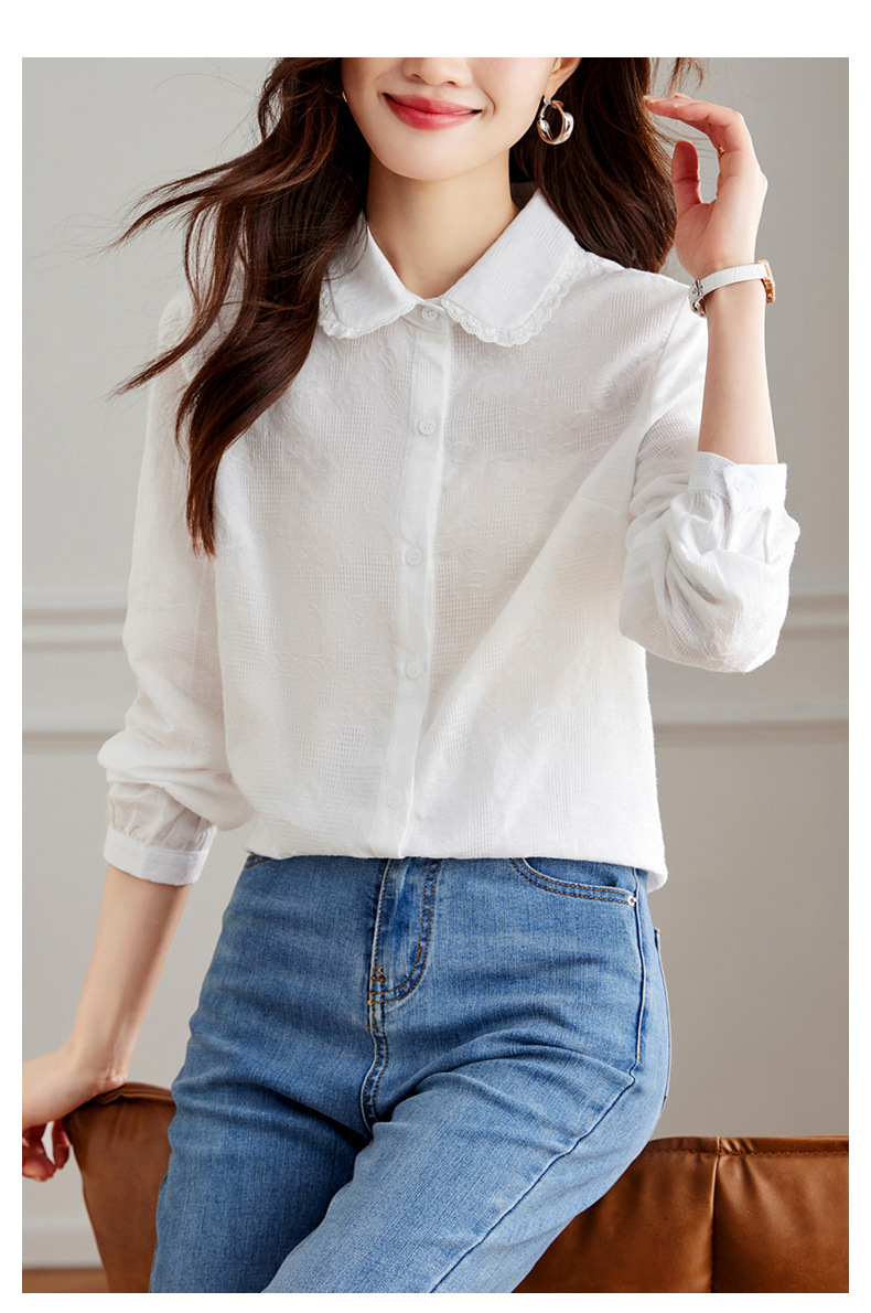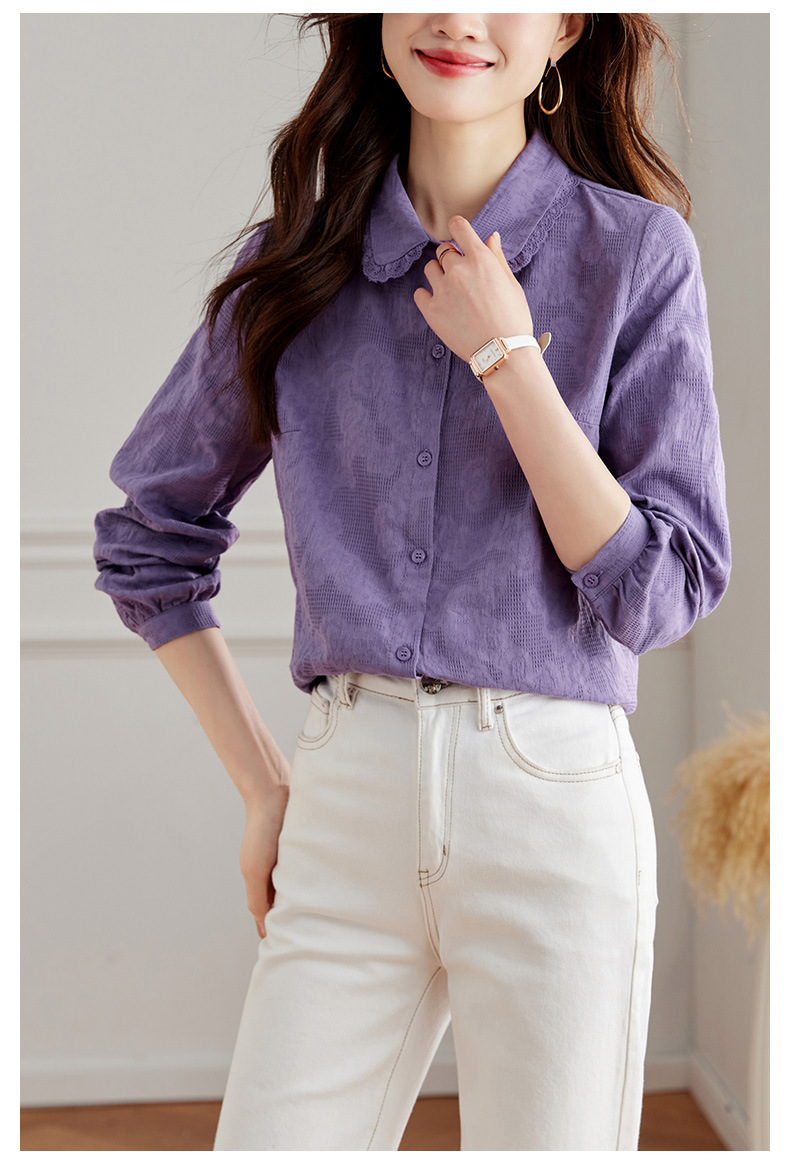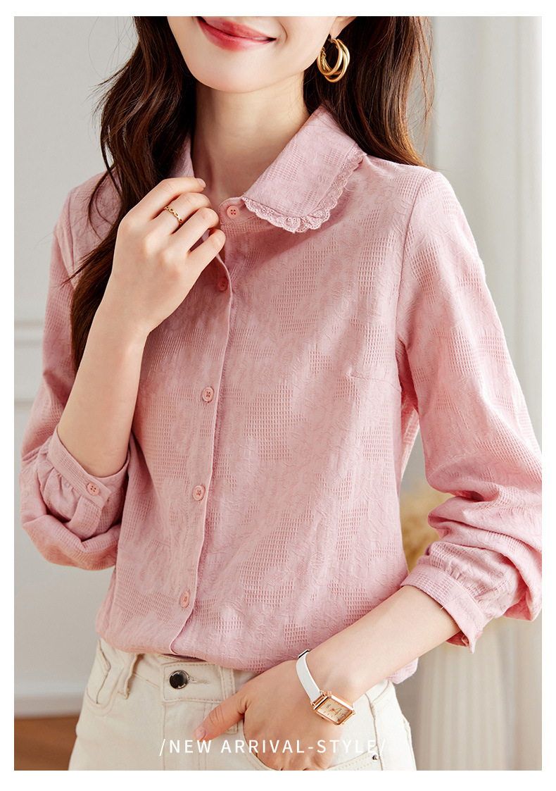 丁摩 春装新款提花设计感衬衫女洋气减龄打底衬衣女5ZF-41002
