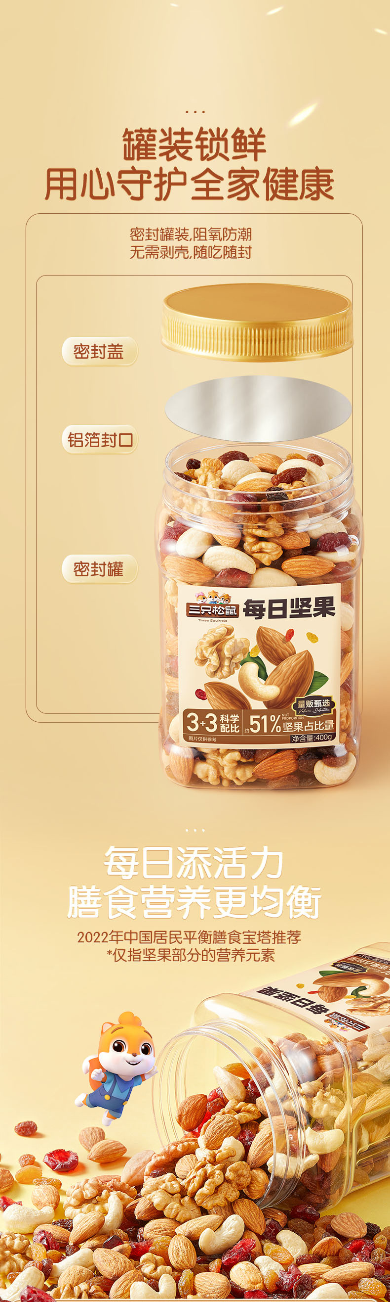 【当季鲜采原果❗️香脆不油腻】三只松鼠罐装每日坚果元气款400g孕妇健康零食。jb
