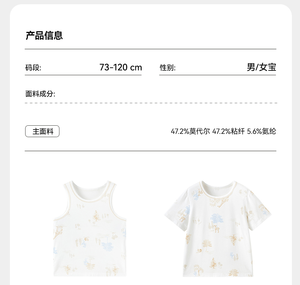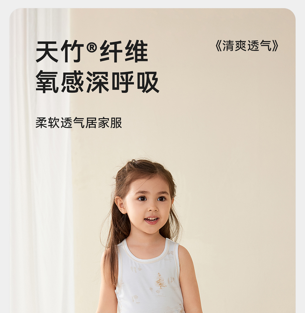 【商场同款】英氏儿童家居服夏季竹纤维透气男童女童睡衣背心短裤