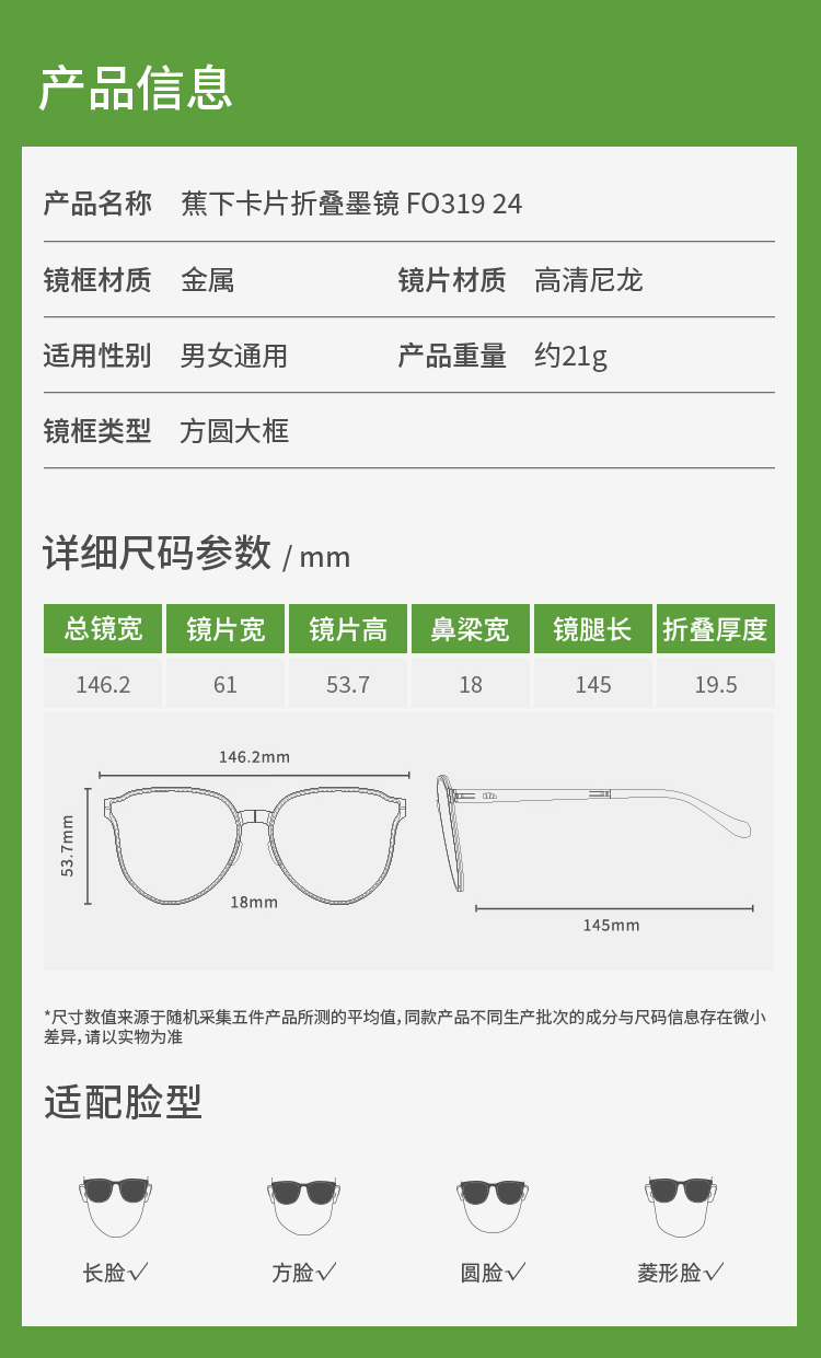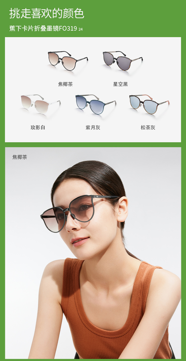 蕉下大圆框卡片折叠墨镜女FO31924时尚防紫外线防晒开车太阳眼镜