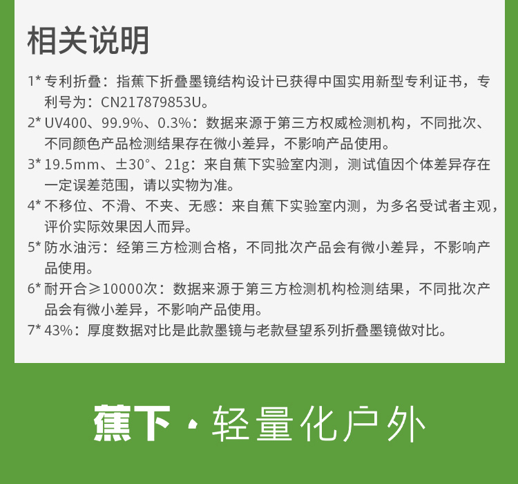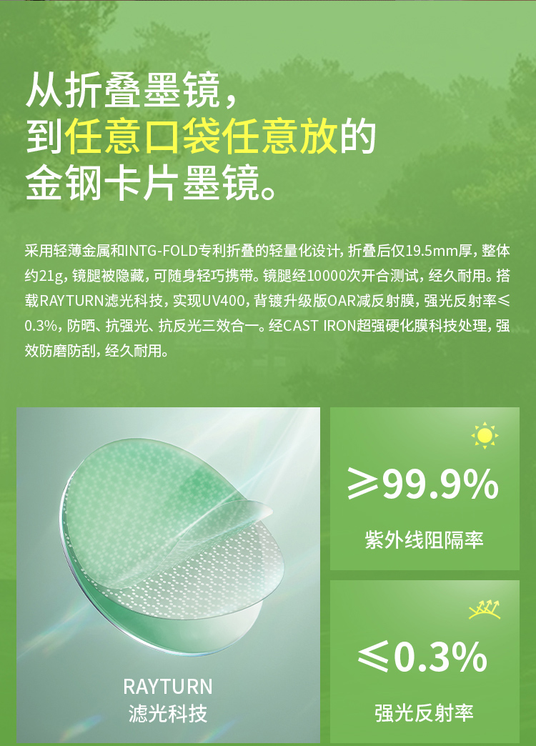 【25年新品】蕉下方形中框折叠墨镜FD429