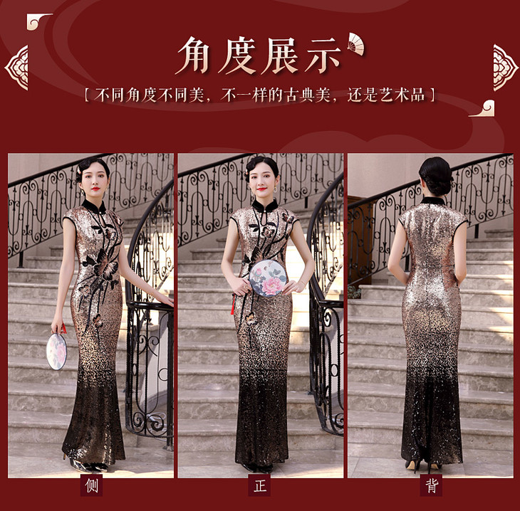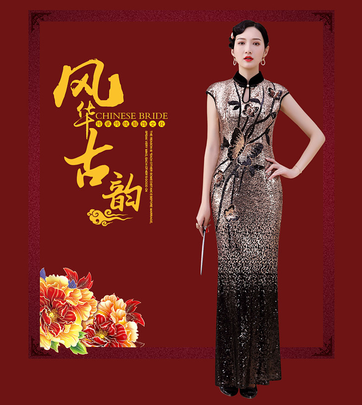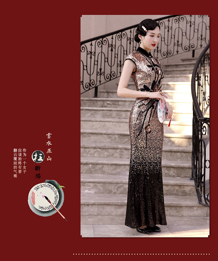 DLQ-A2197真丝高端亮片旗袍礼服