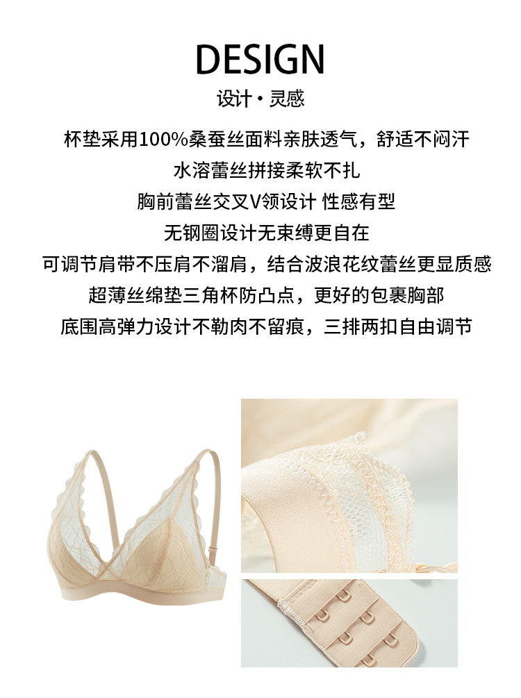 丁摩 真丝超薄杯垫亲肤透气文胸深V内衣S286 商品图3