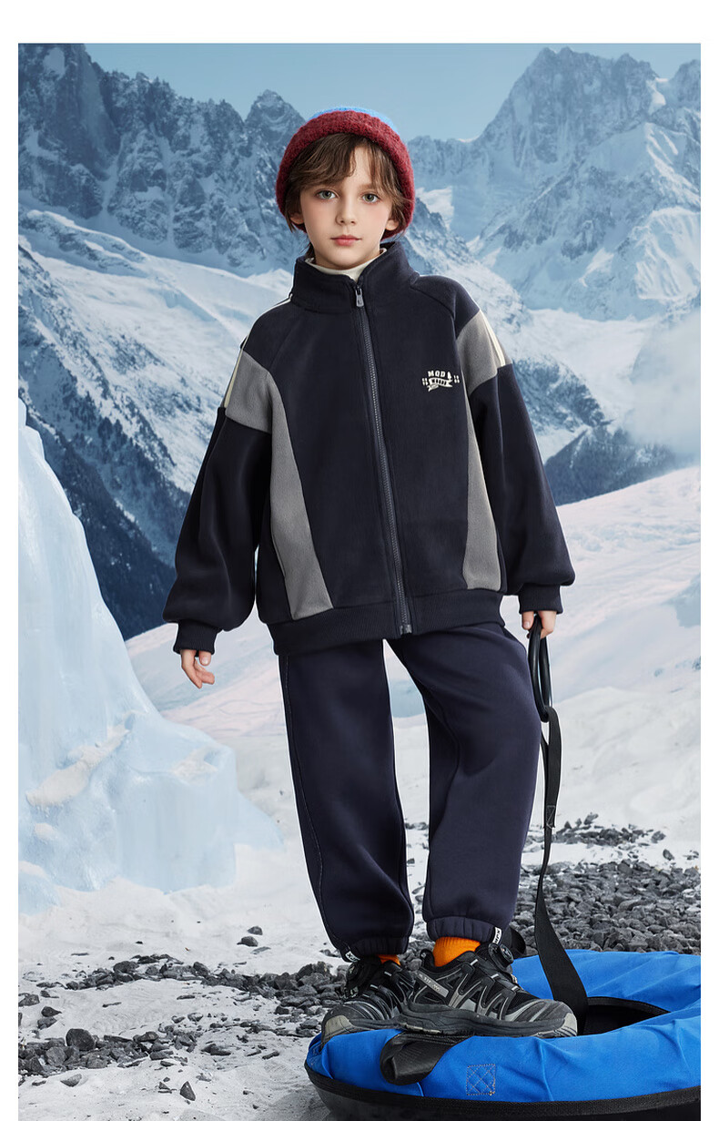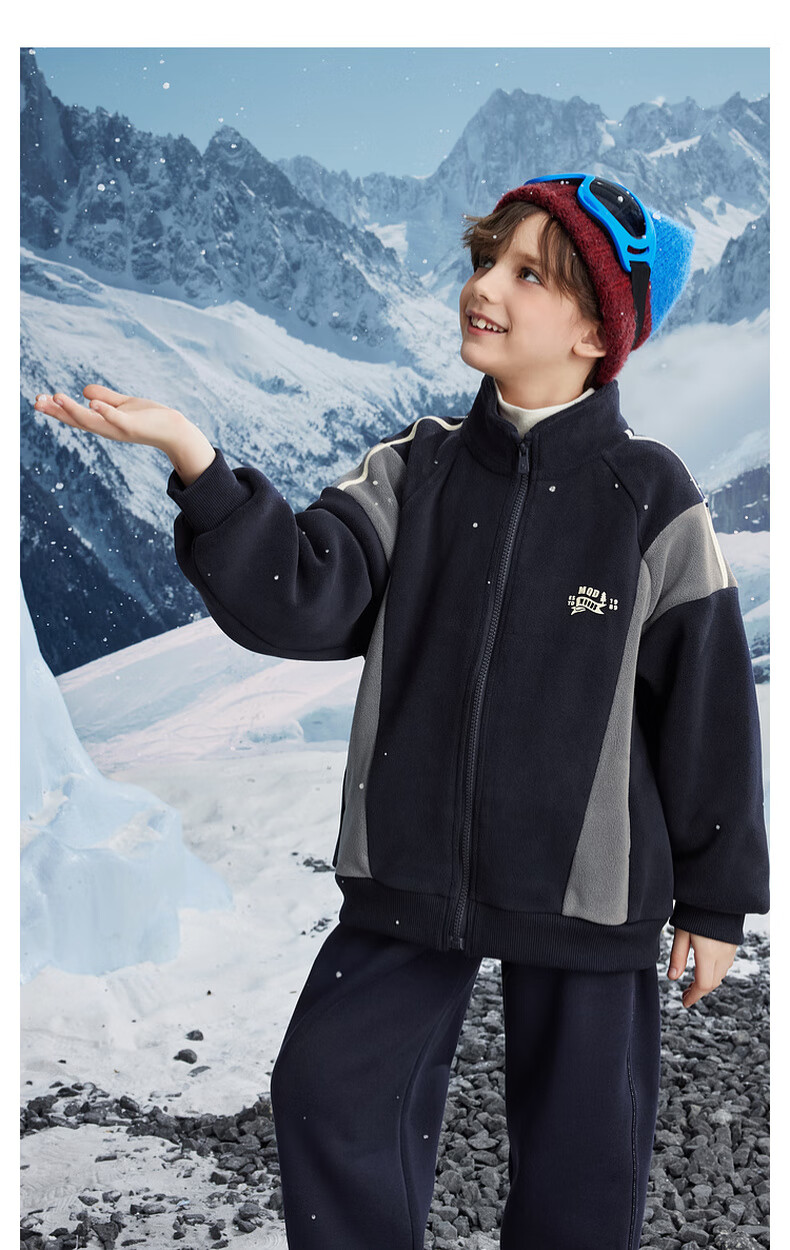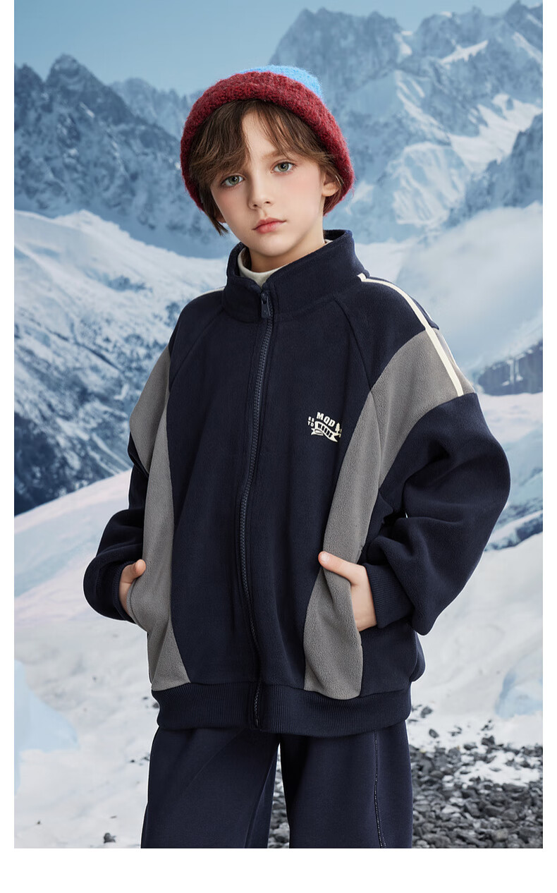 【秒】【MQD】童装男童满版学院风立领外套冬新款儿童内里摇粒绒保暖上衣