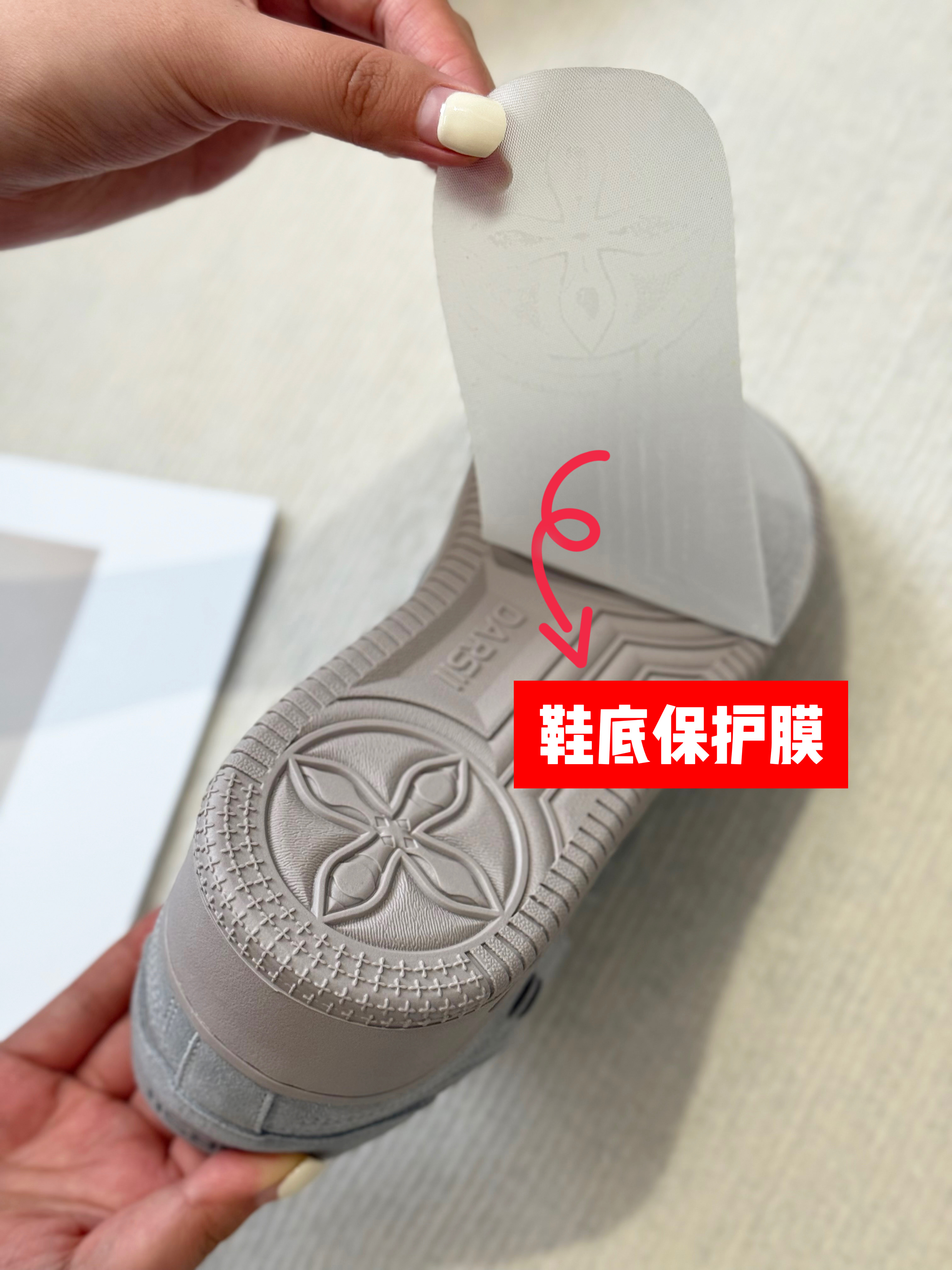 一般只有少数高端大牌鞋才会舍得用这种纯天然橡胶做鞋底🔺鞋底试穿保护膜