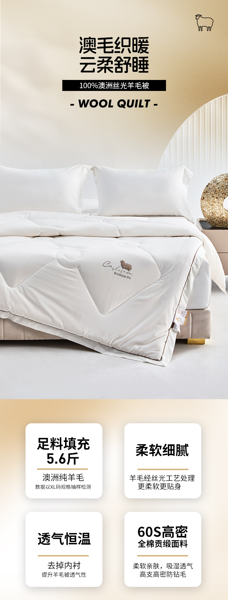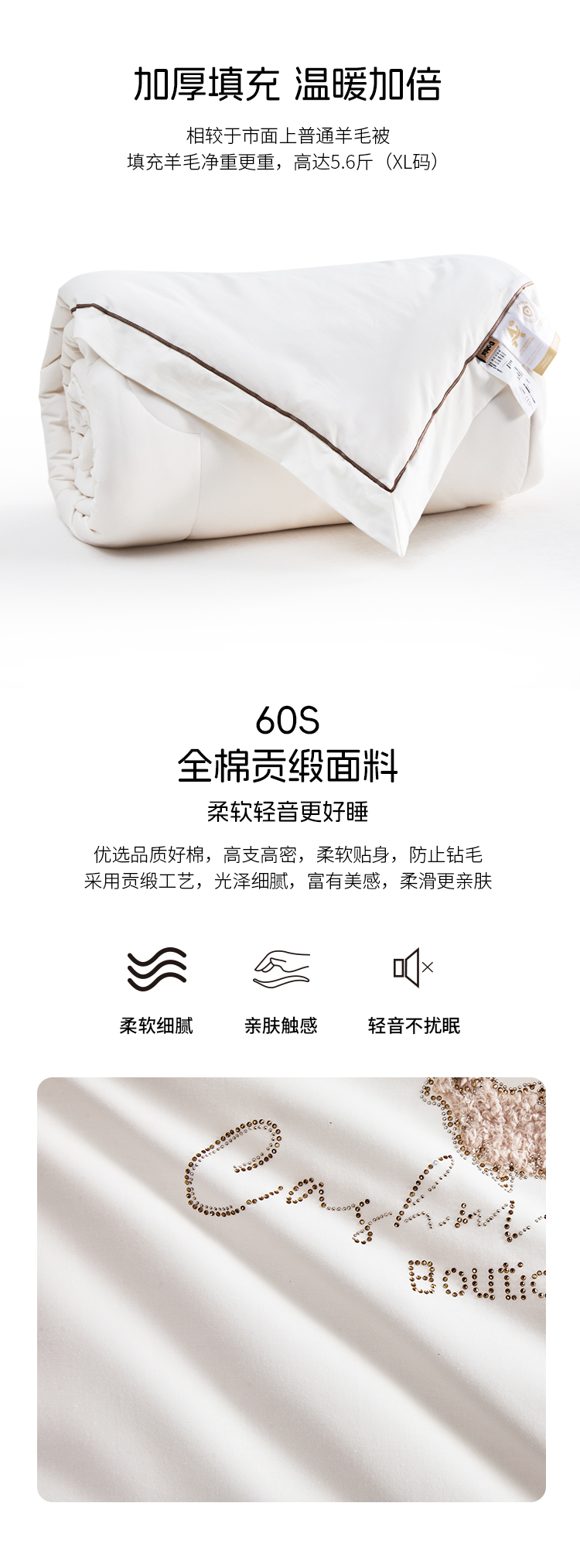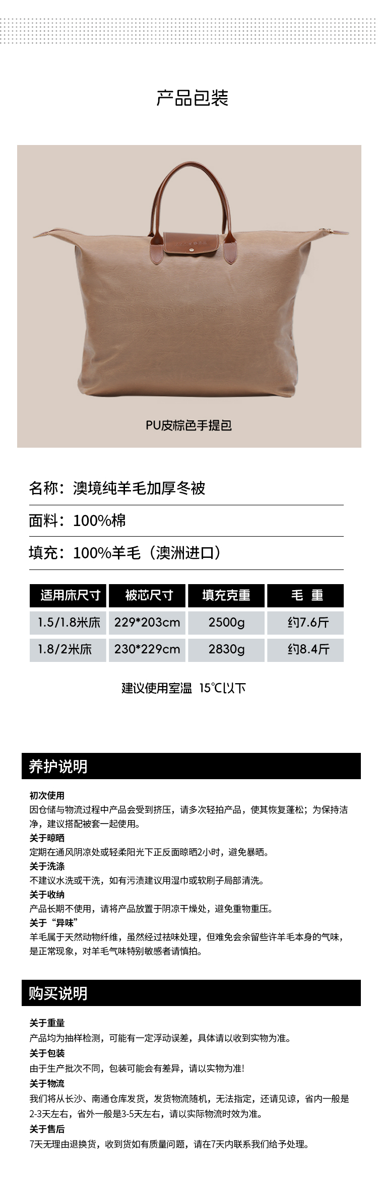 多喜爱 澳境纯羊毛加厚冬被【100%澳洲羊毛】【60S全棉贡缎】【足料填充】丝光工艺 柔暖不闷 加厚填充 烫钻工艺 PU皮手提包
