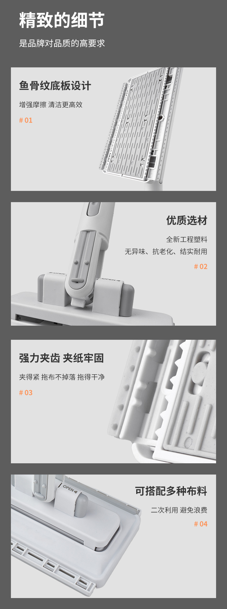 鼎德DINDD鲨鱼齿夹布拖把,一夹一拖一丢不脏手、加长三节不弯腰,省力。兼容各类抹布/洗脸巾等。