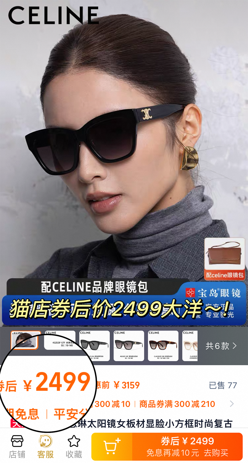 凯の门cel*ine金标系列~!柜子正常券后卖到2500~3000+大洋!咱家仅售189元包邮~!