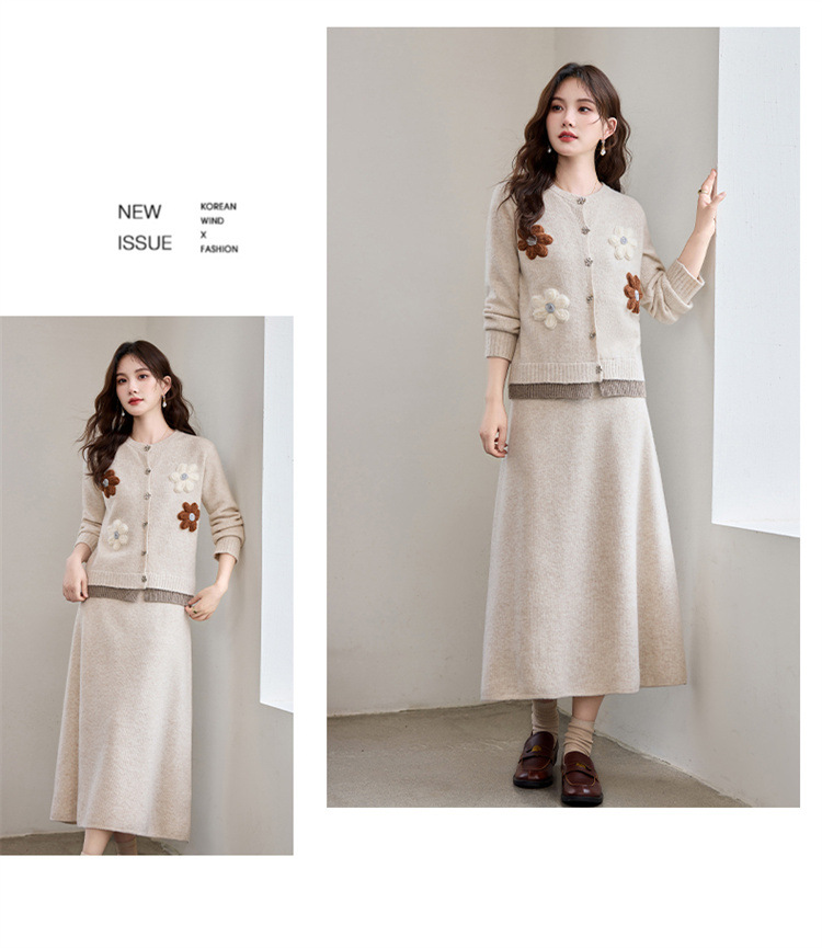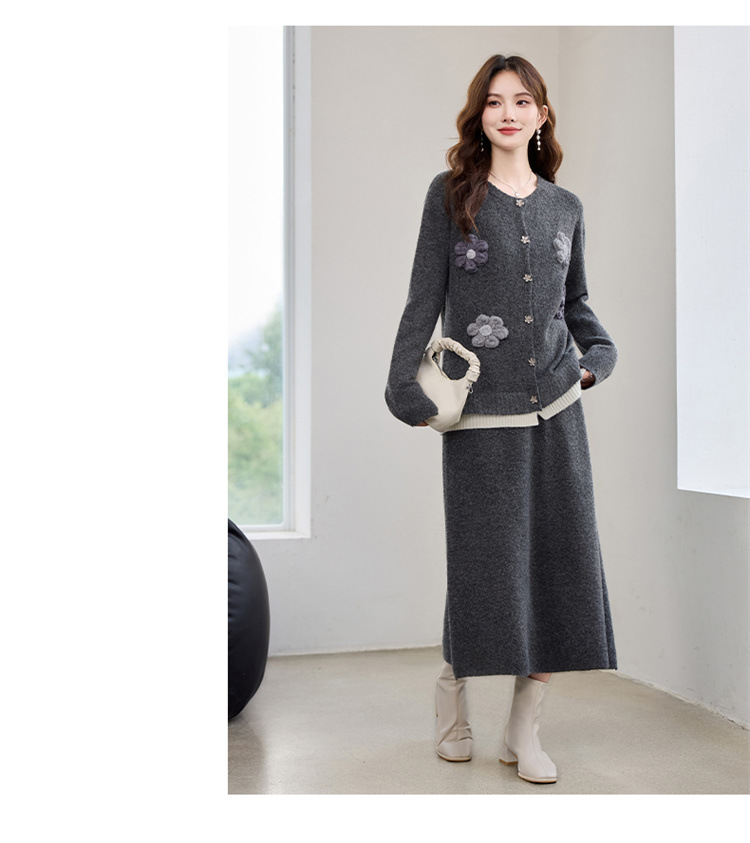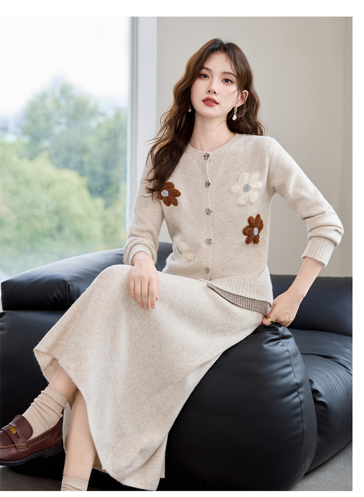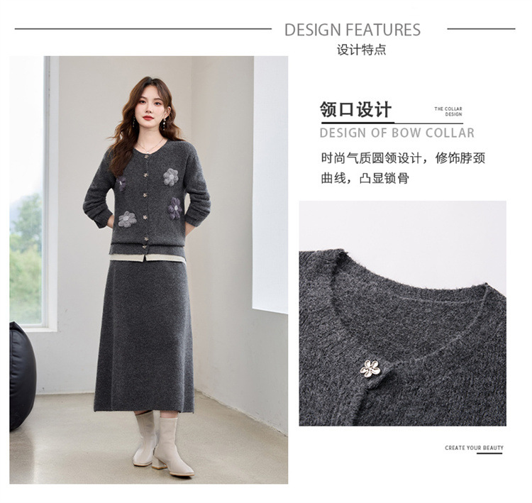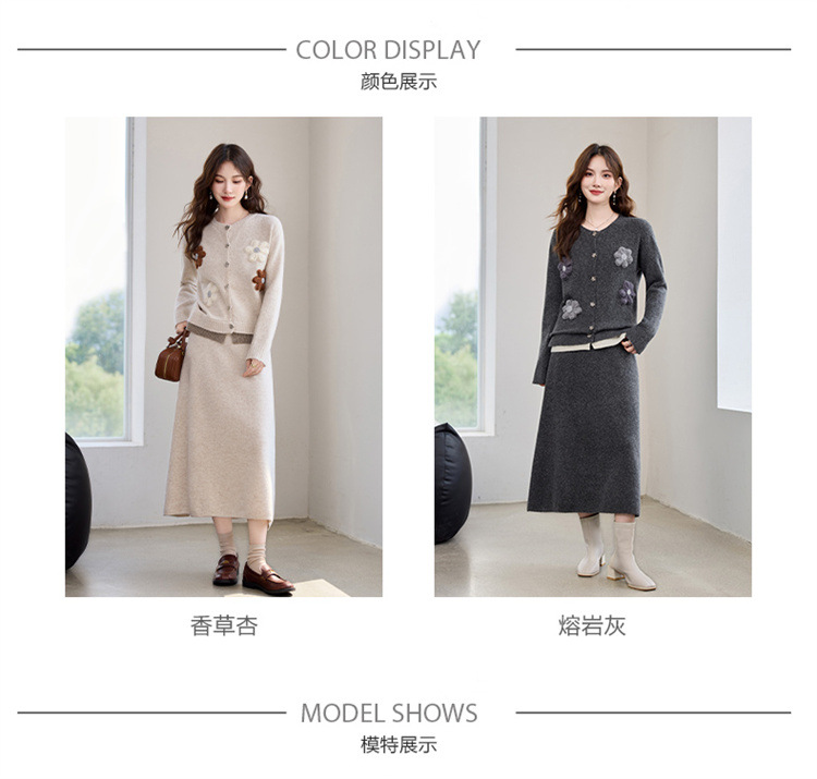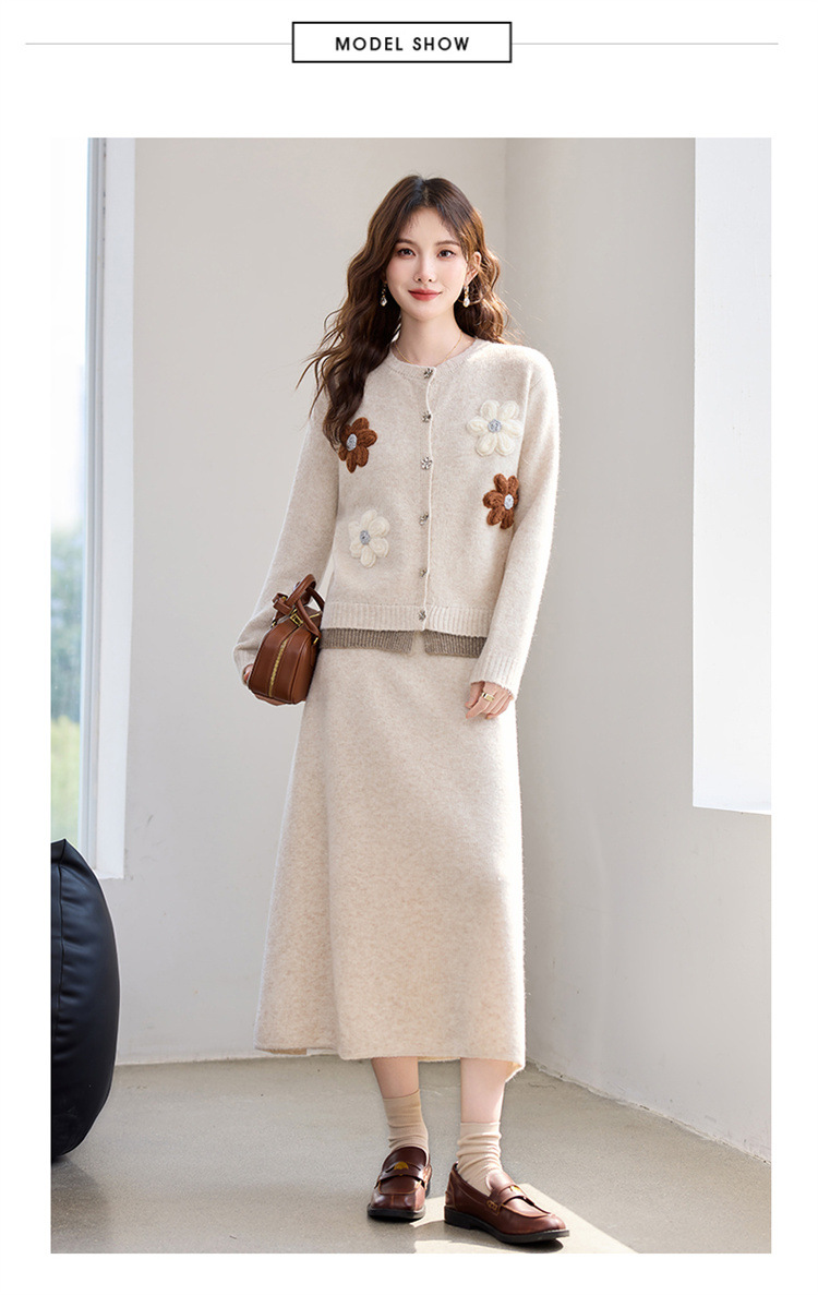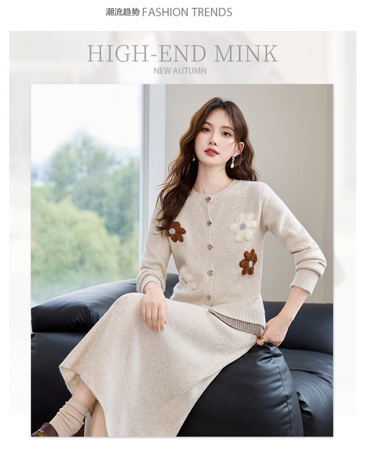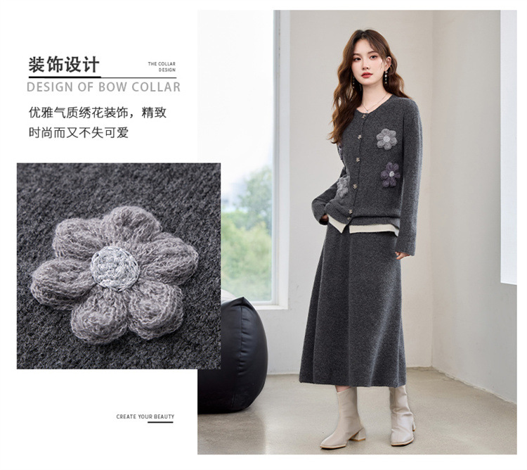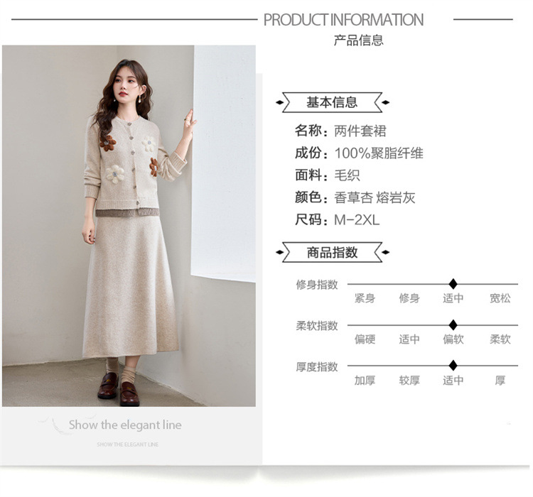 HR YBER615时尚拼色花绣圆领纽扣两件套裙