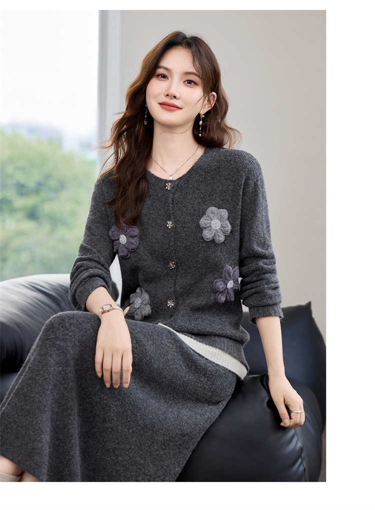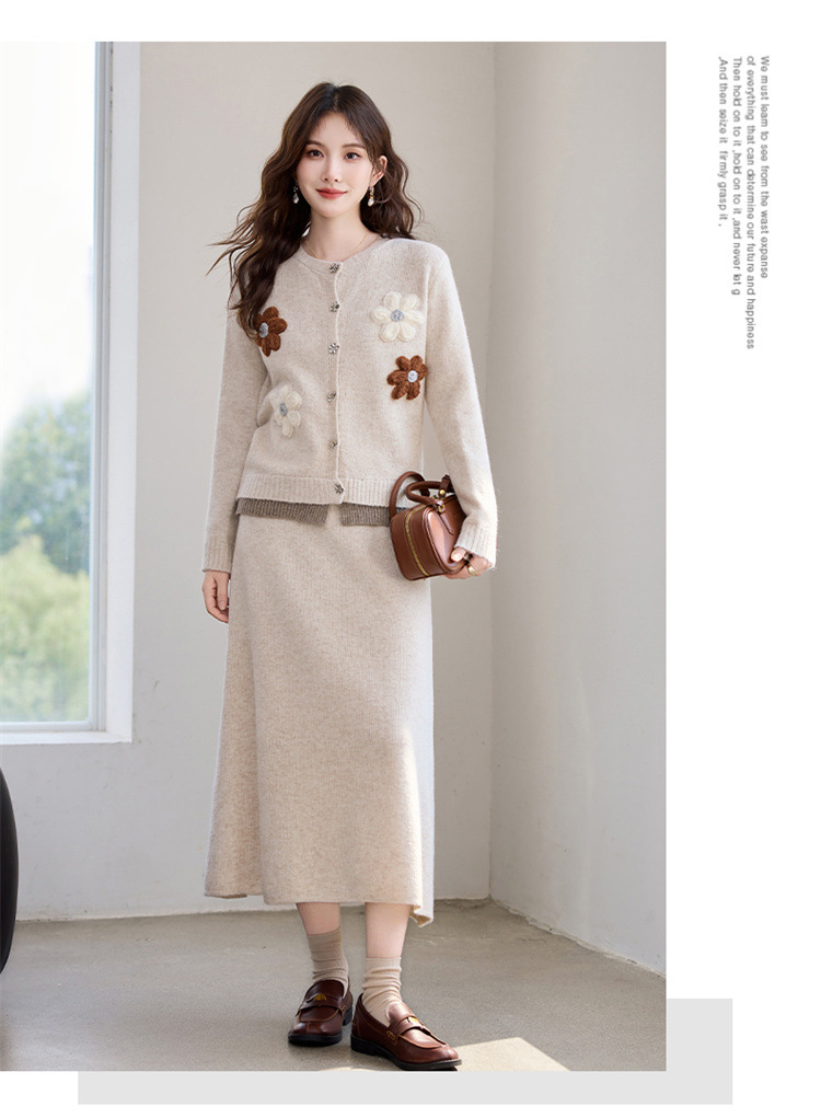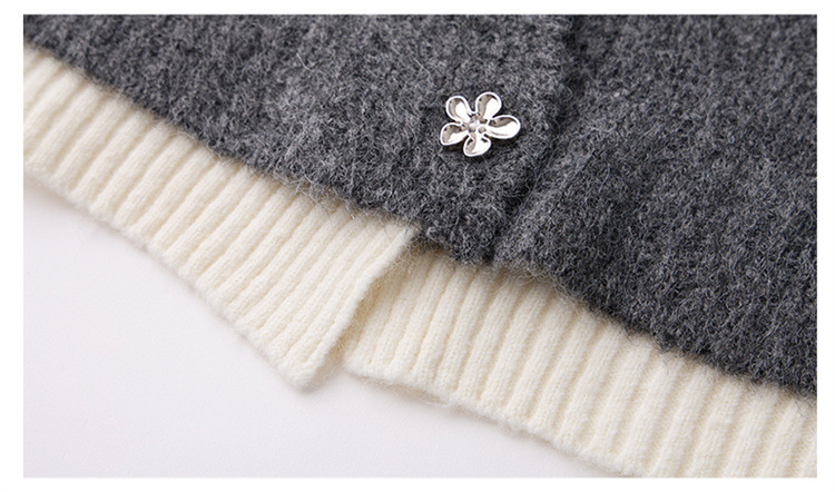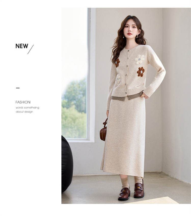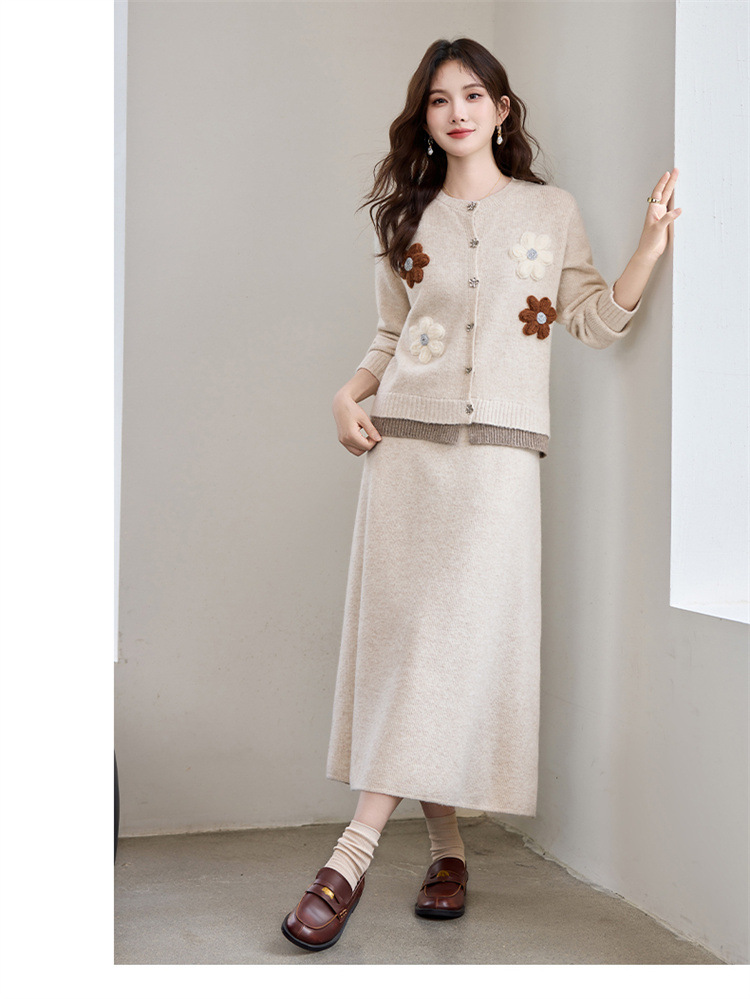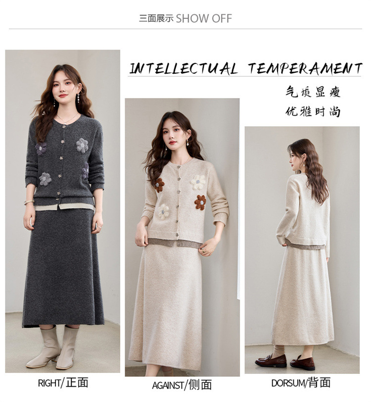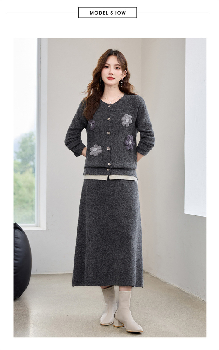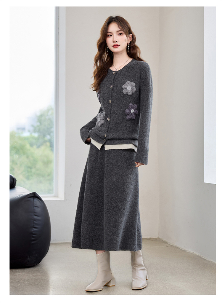 HR YBER615时尚拼色花绣圆领纽扣两件套裙