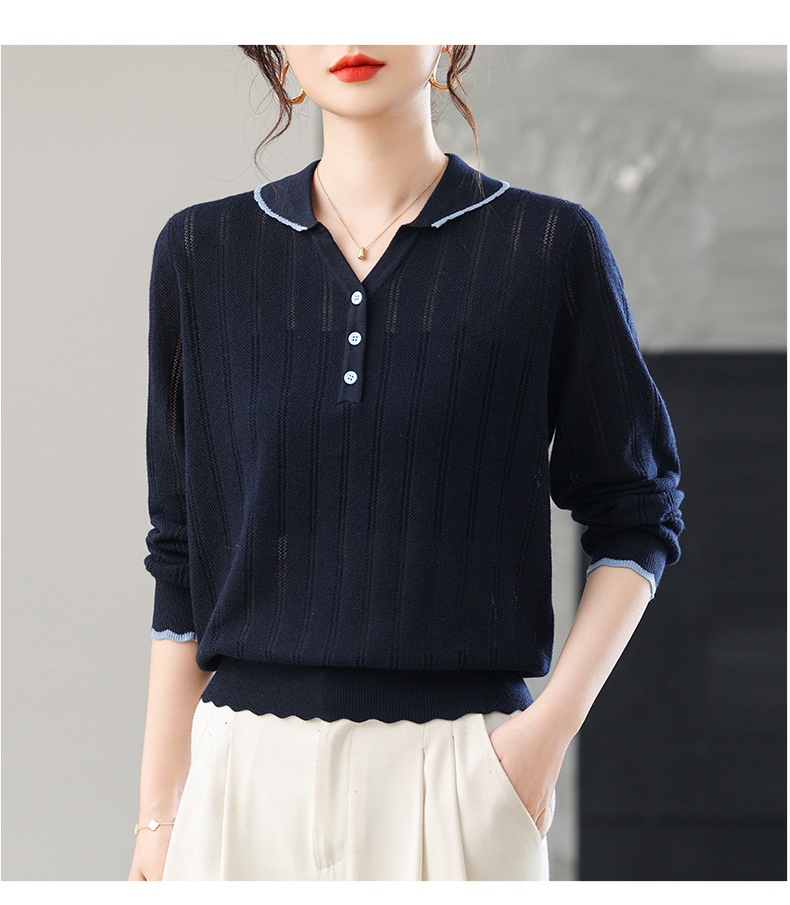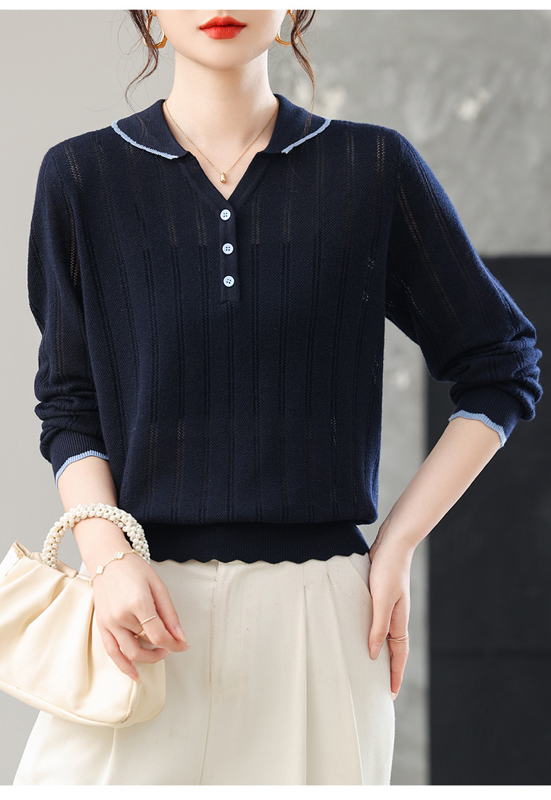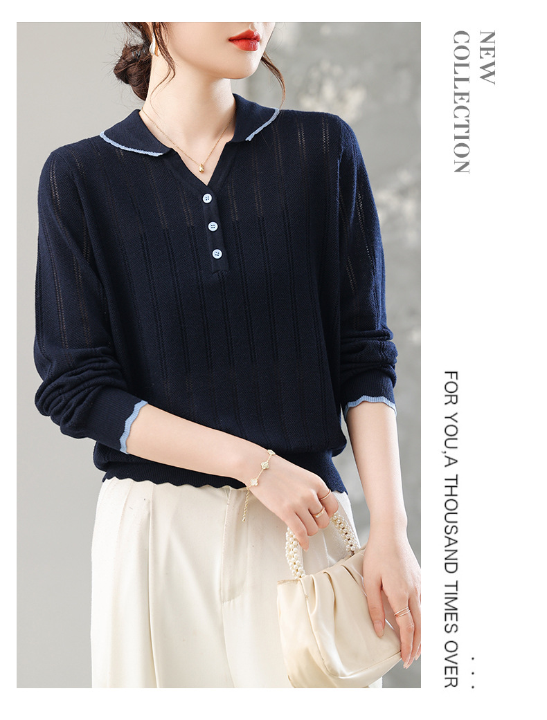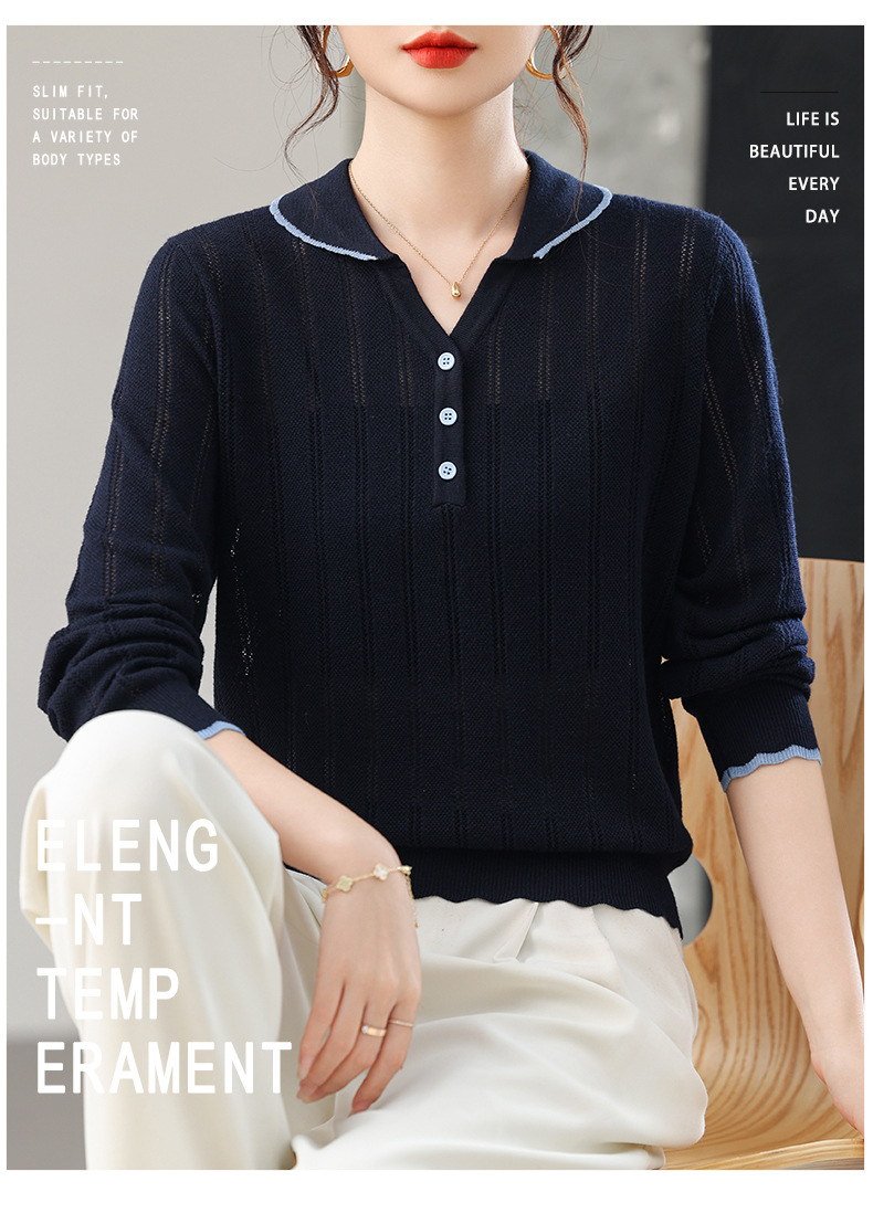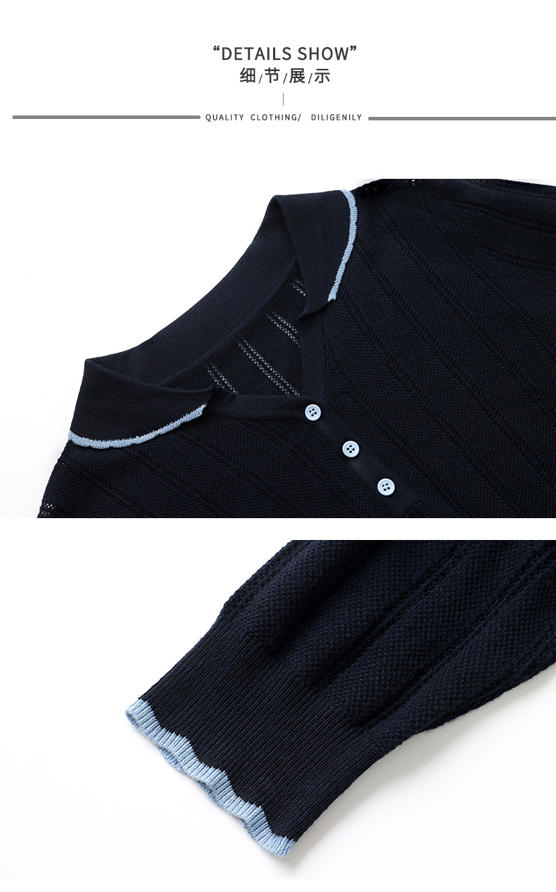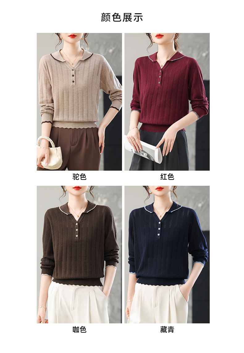 CC早秋薄款镂空针织衫polo领上衣秋装2025新款女装洋气打底毛衣