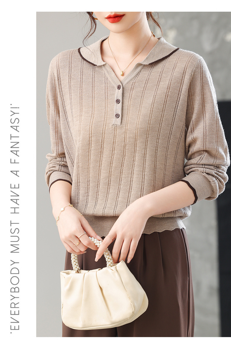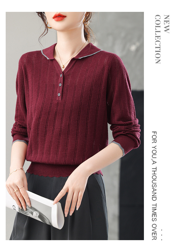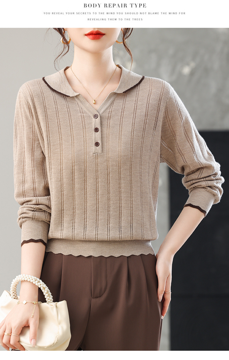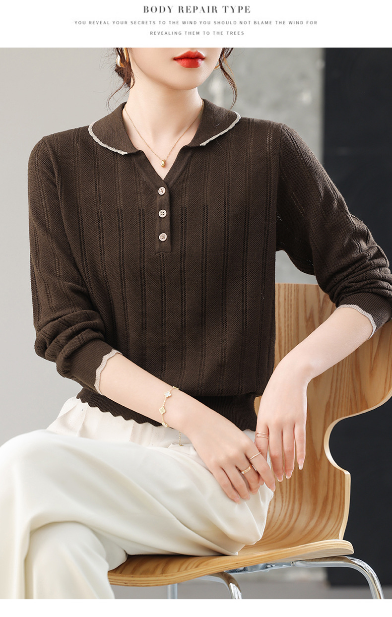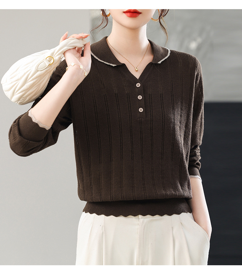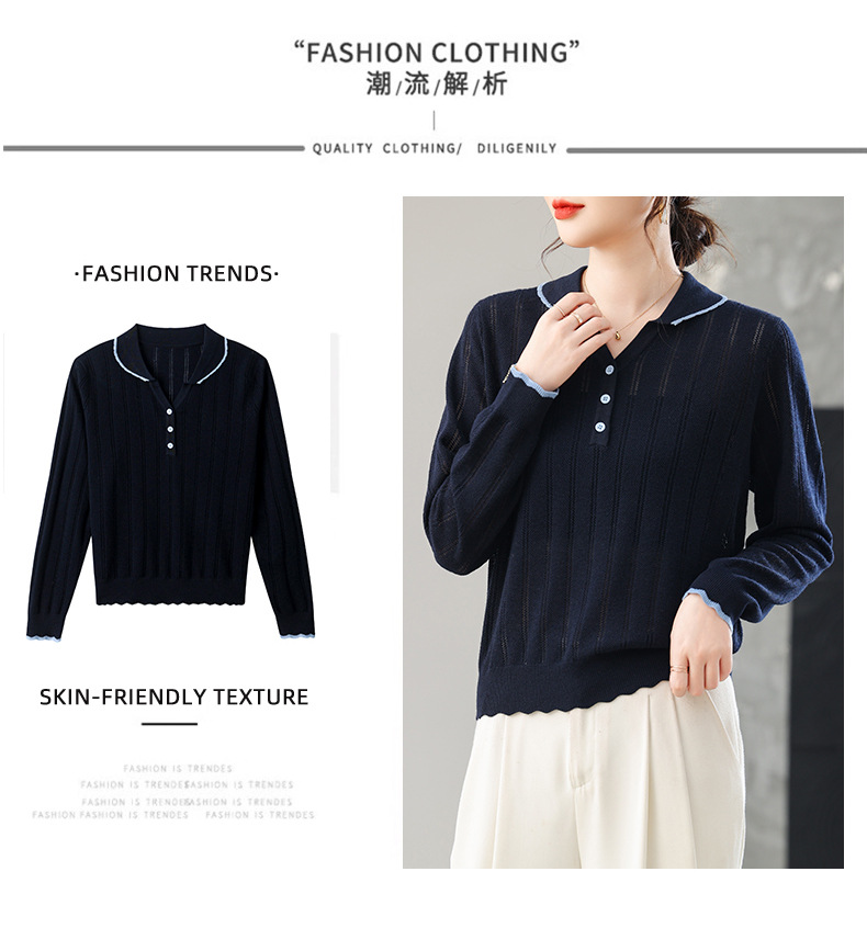 CC早秋薄款镂空针织衫polo领上衣秋装2025新款女装洋气打底毛衣